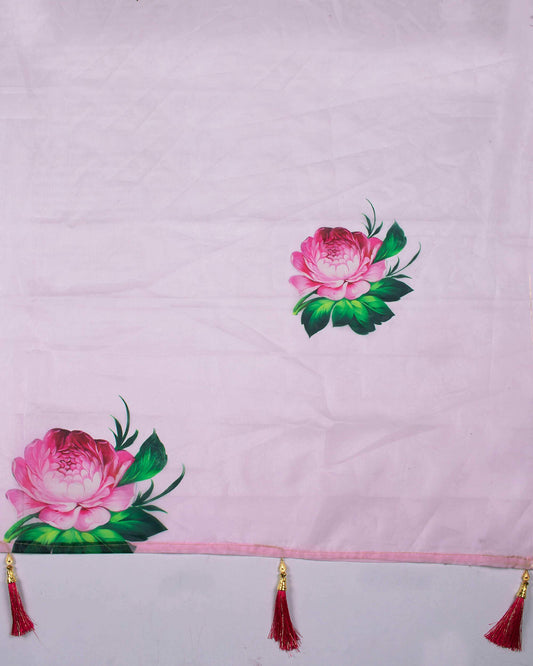 Off White And Pink Floral Pattern Digital Print Premium Organza Dupatta With Tassels Off White And Pink Floral Pattern Digital Print Premium Organza Dupatta With Tassels