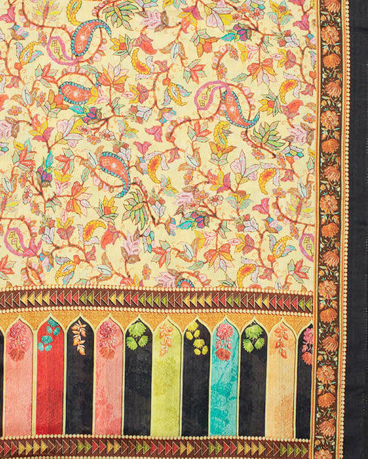 Mellow Yellow And Black Paisley Pattern Digital Print Gadwal Silk Dupatta With Tassels Mellow Yellow And Black Paisley Pattern Digital Print Gadwal Silk Dupatta With Tassels