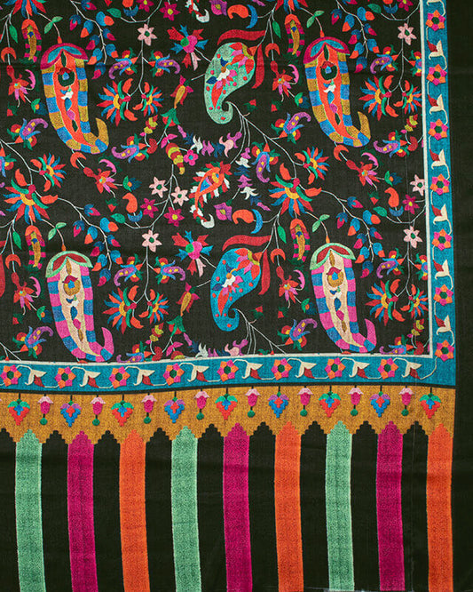 Peacock Green And Orange Paisley Pattern Digital Print Gadwal Silk Dupatta With Tassels Peacock Green And Orange Paisley Pattern Digital Print Gadwal Silk Dupatta With Tassels