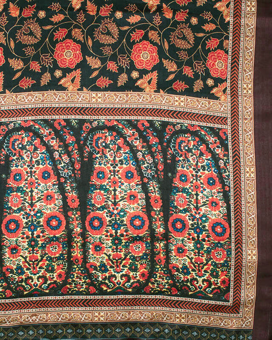 Dark Green And Orange Floral Pattern Digital Print Gadwal Silk Dupatta With Tassels Dark Green And Orange Floral Pattern Digital Print Gadwal Silk Dupatta With Tassels