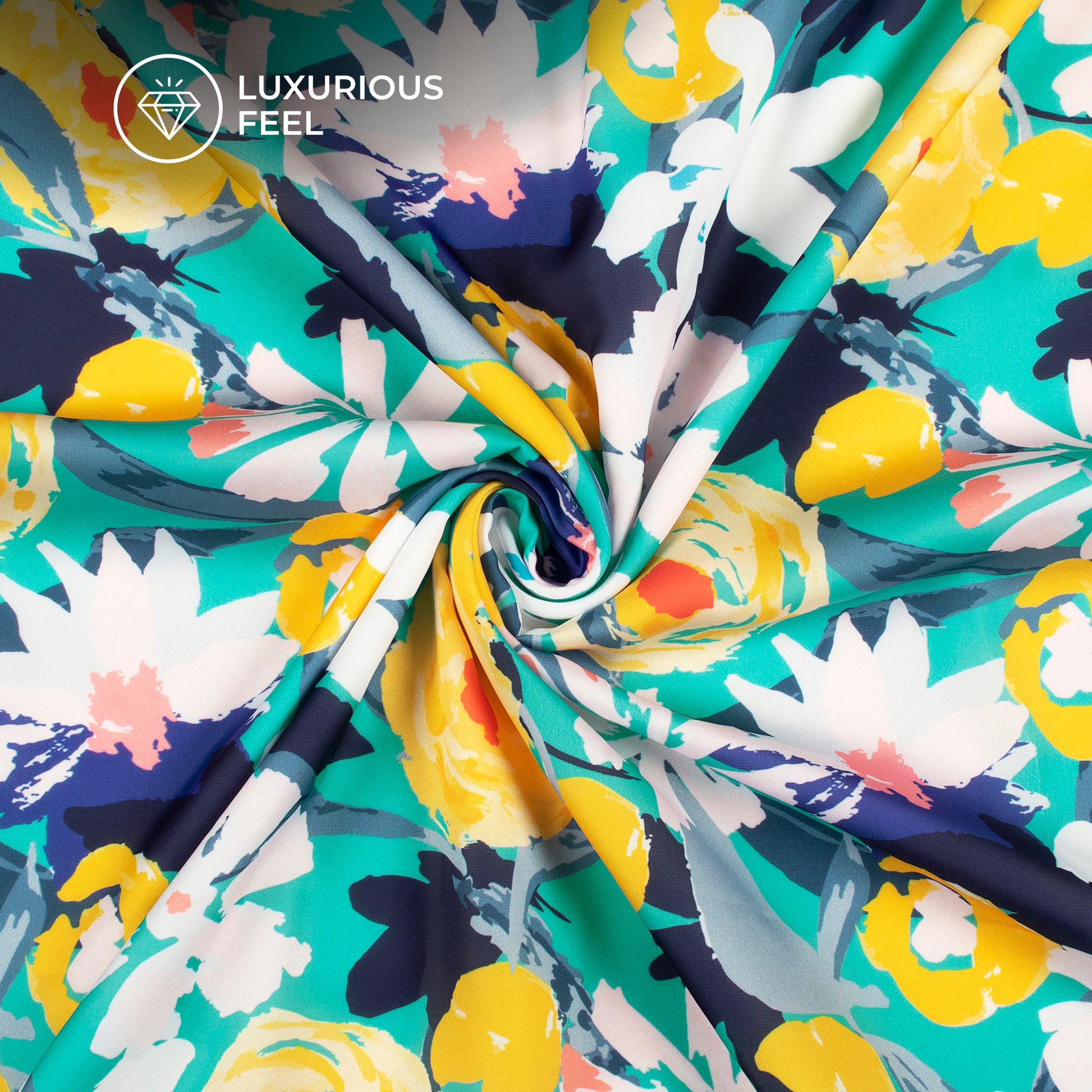 Abstract Floral Digital Print Imported Satin Fabric