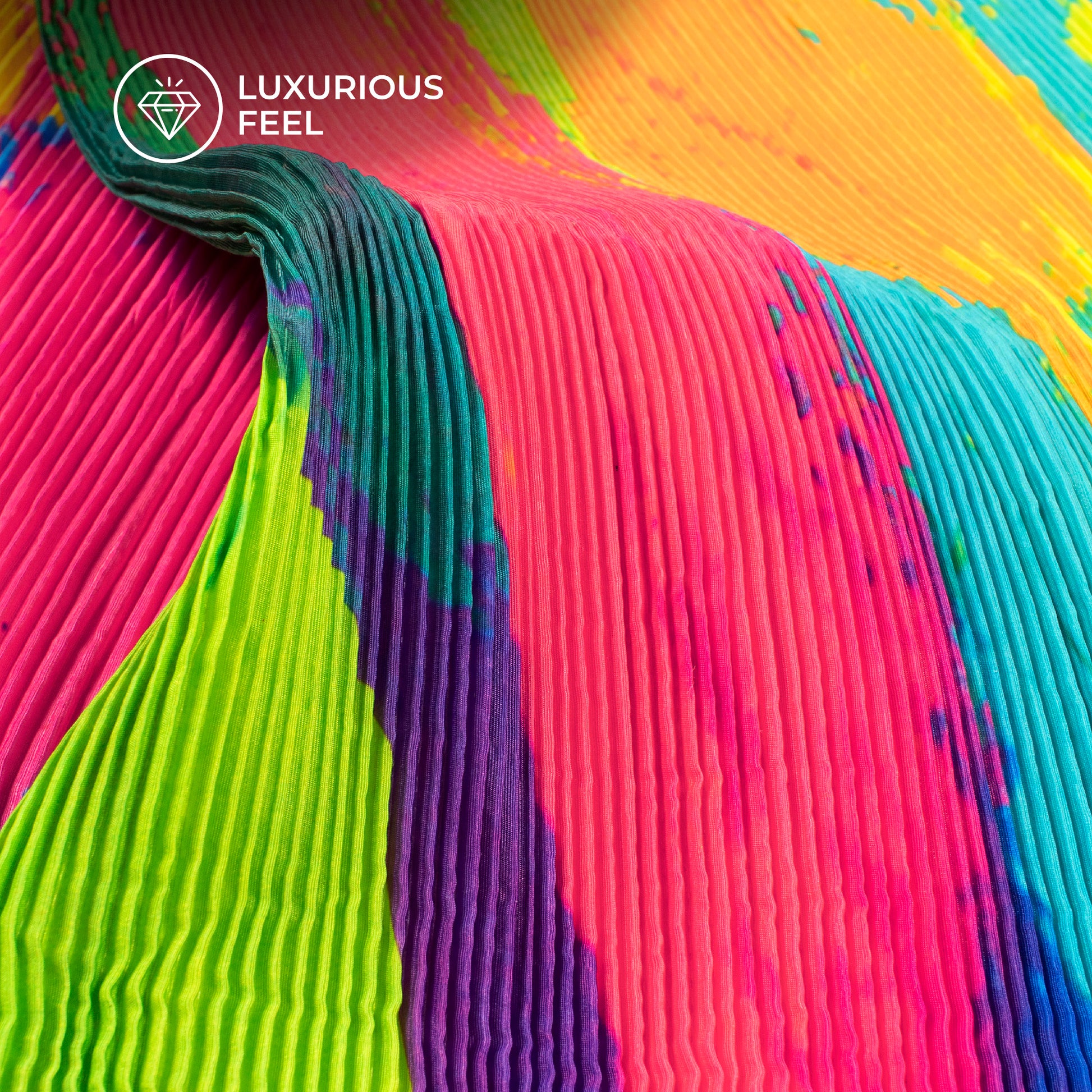 Abstract Painting Art Pleated Digital Print Crepe Satin Fabric