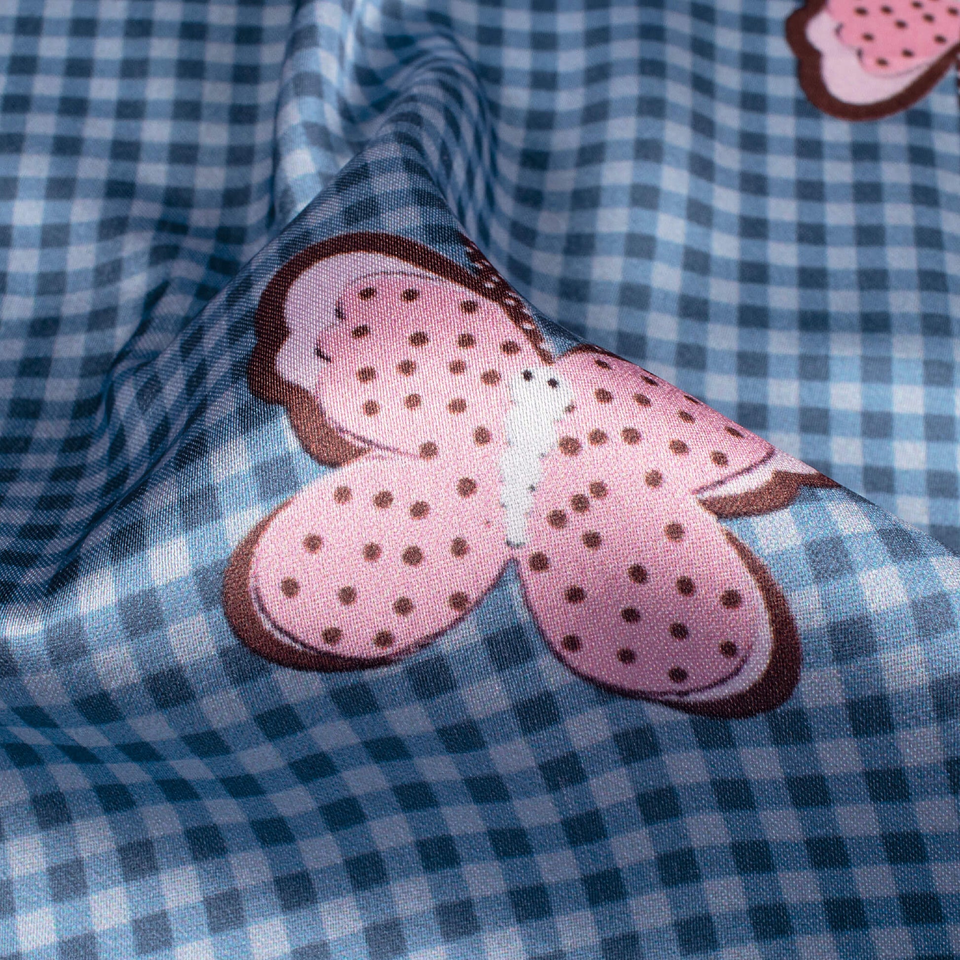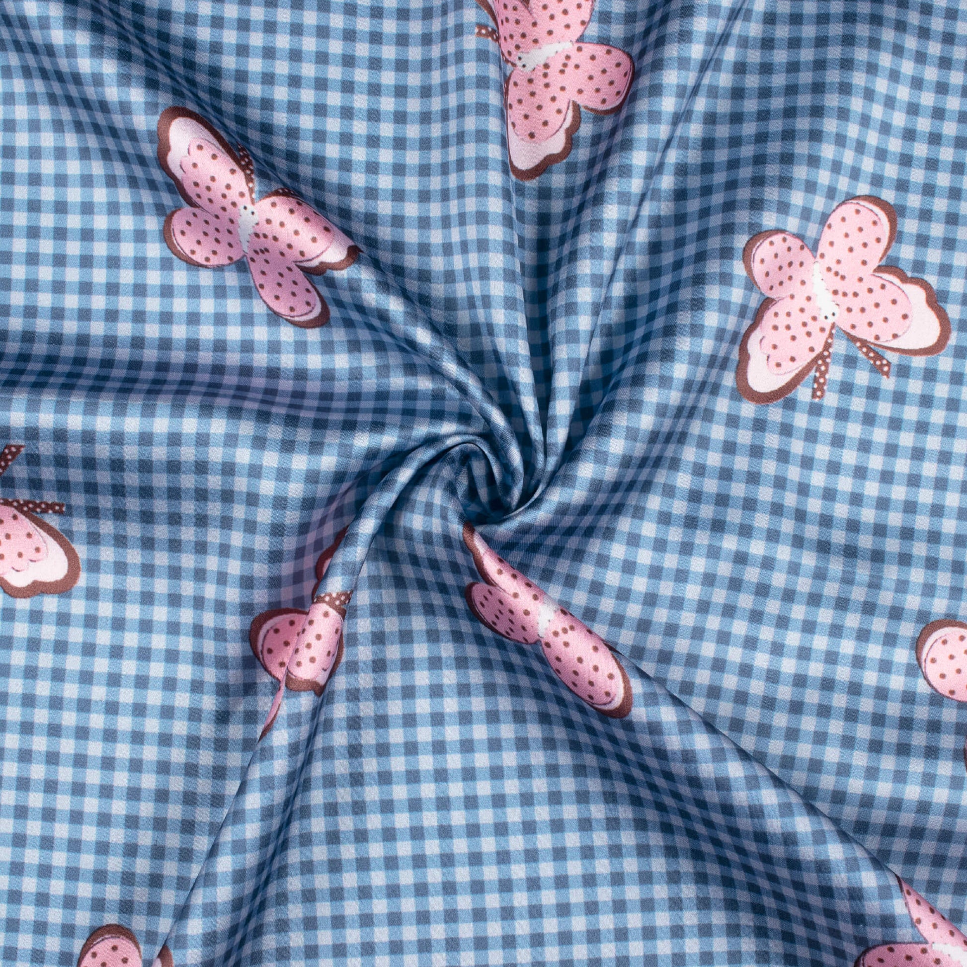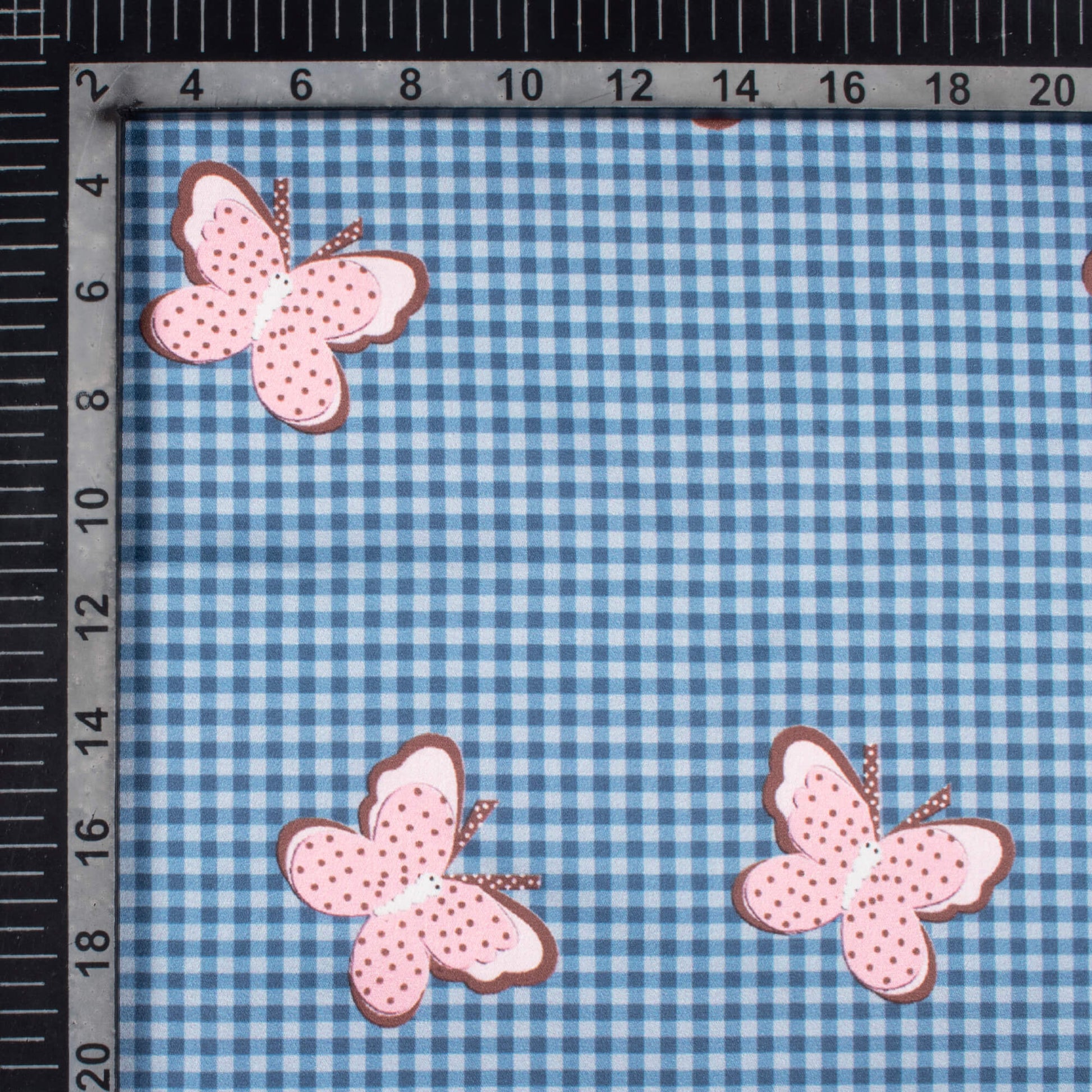 Aegean Blue And Baby Pink Butterfly Pattern Digital Print Japan Satin Fabric