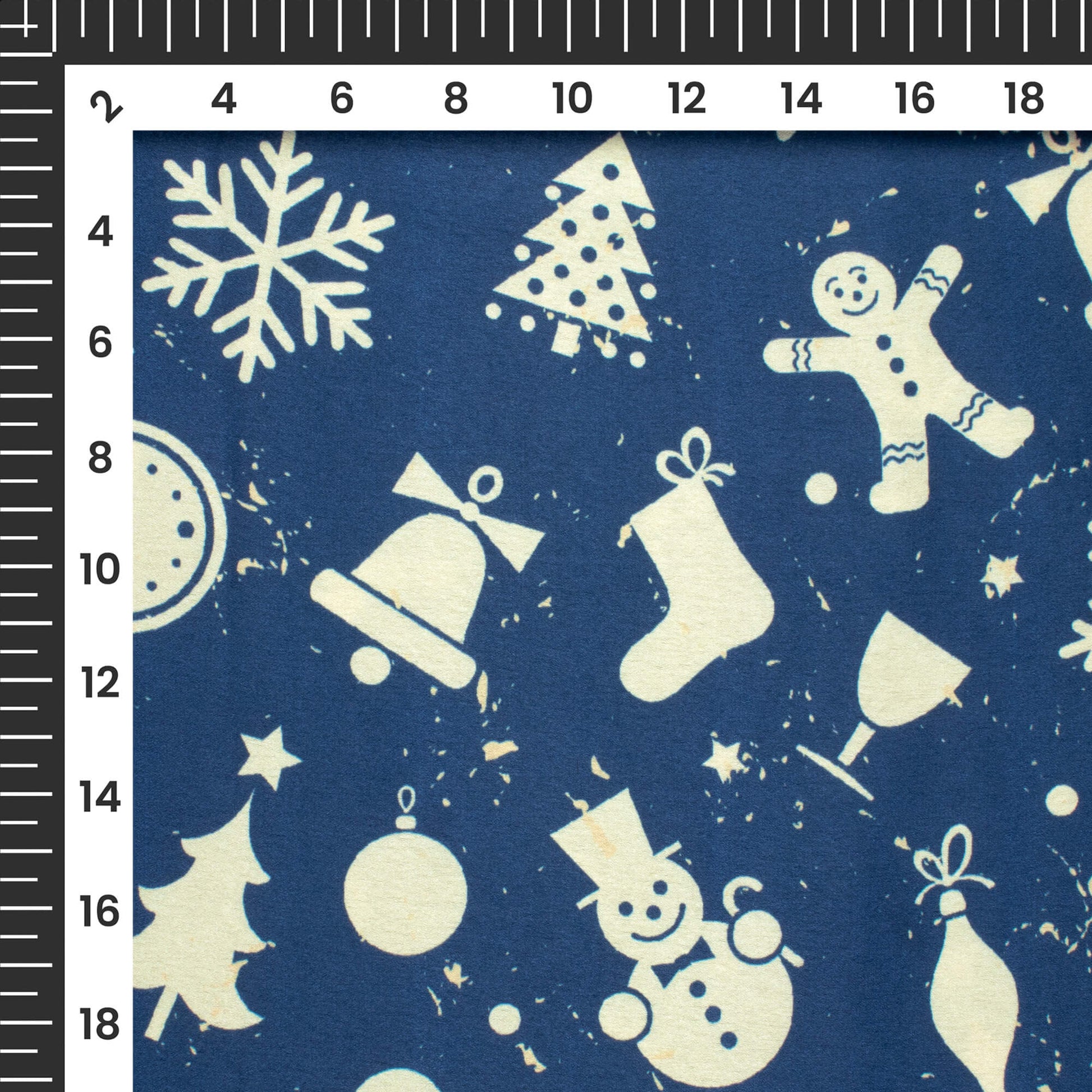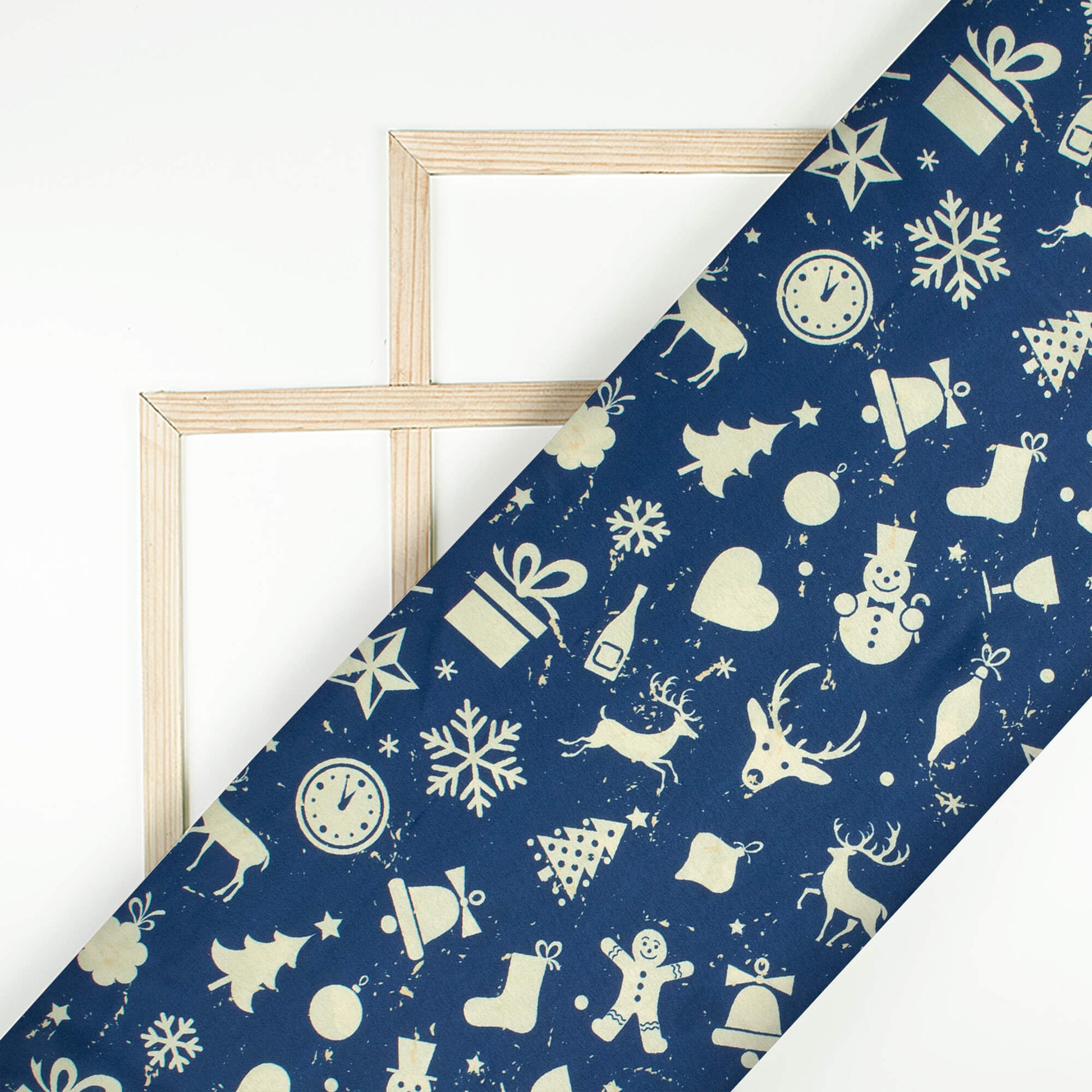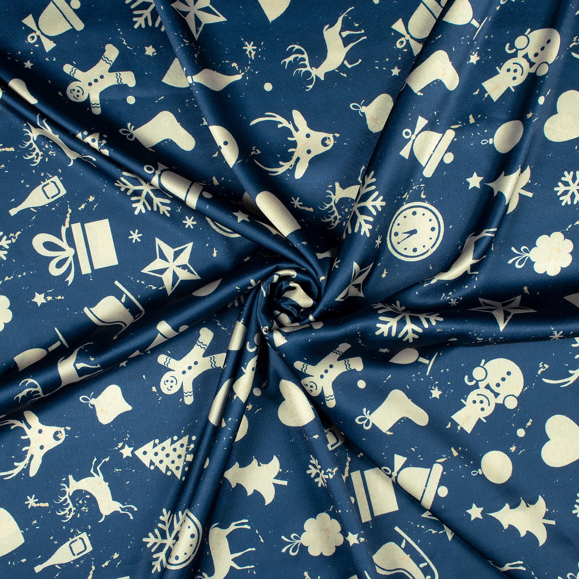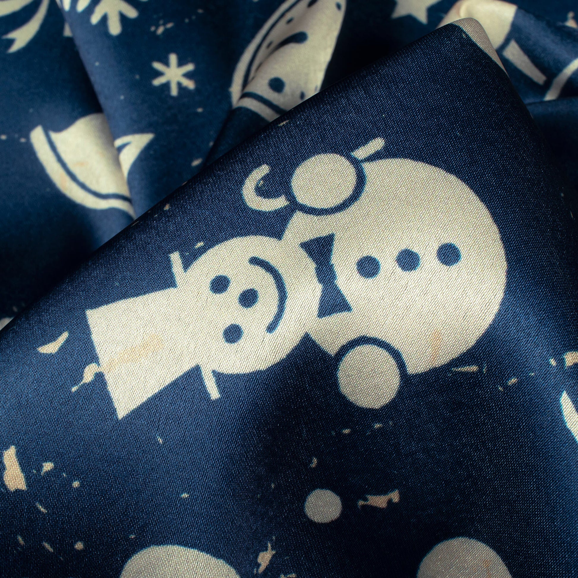 Aegean Blue And Cream Christmas Pattern Digital Print Japan Satin Fabric