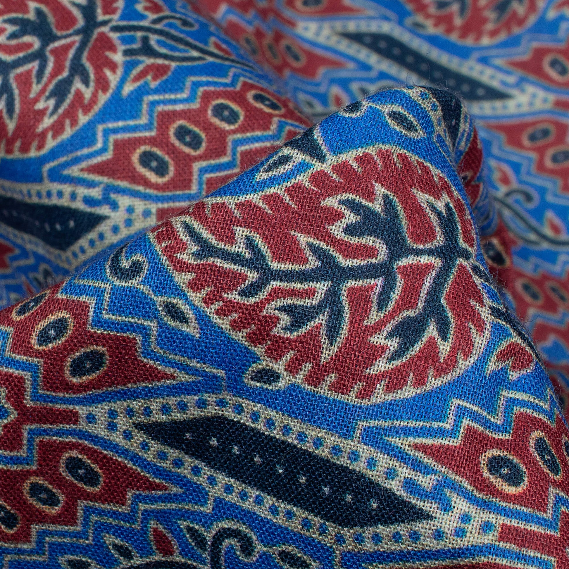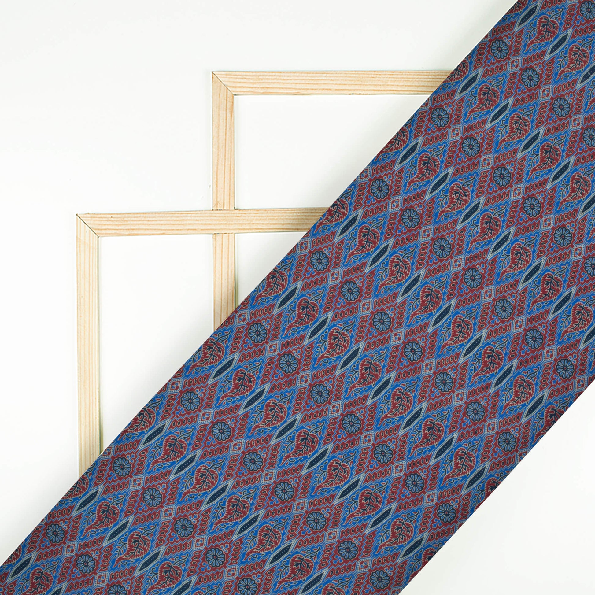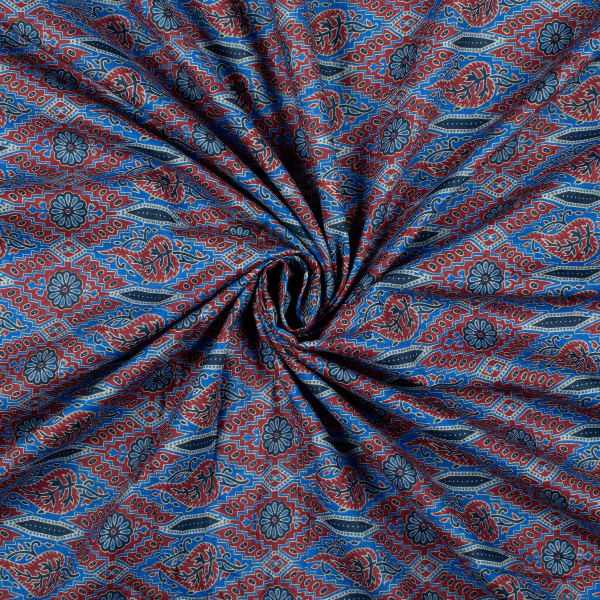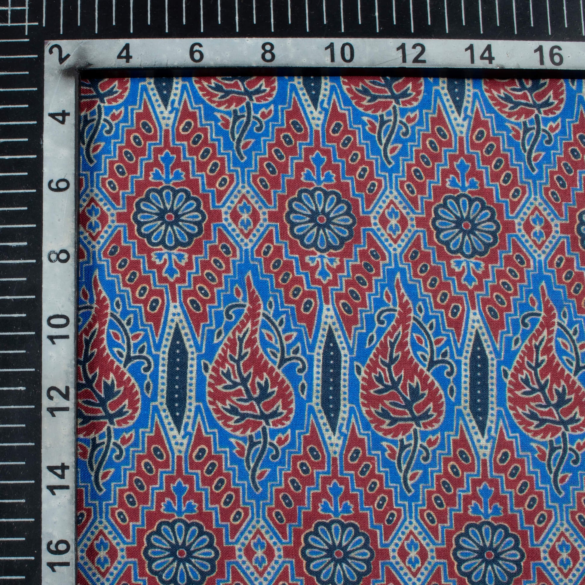 Aegean Blue And Maroon Traditional Pattern Digital Print Cotton Cambric Fabric