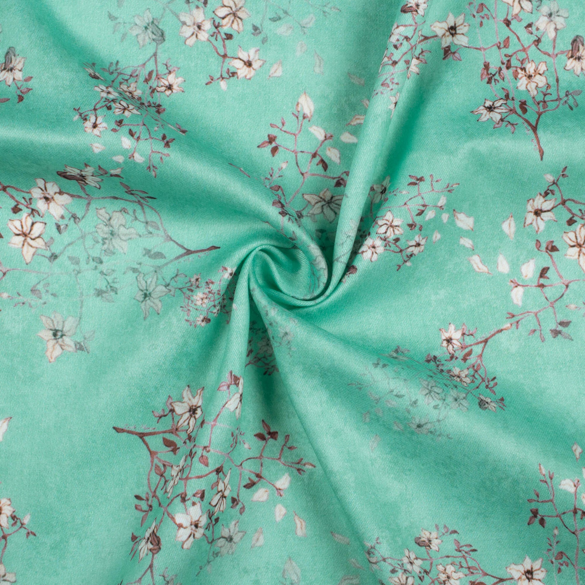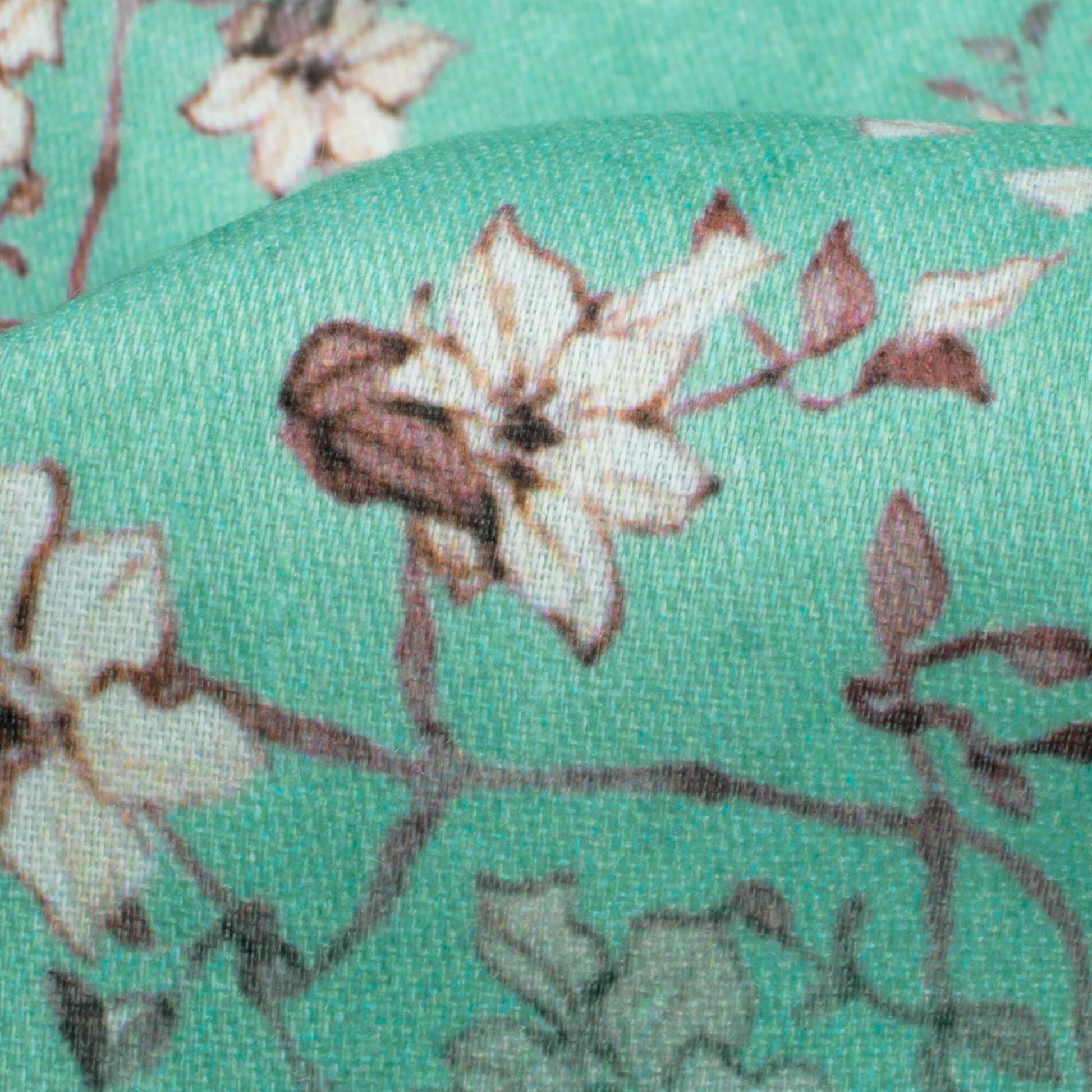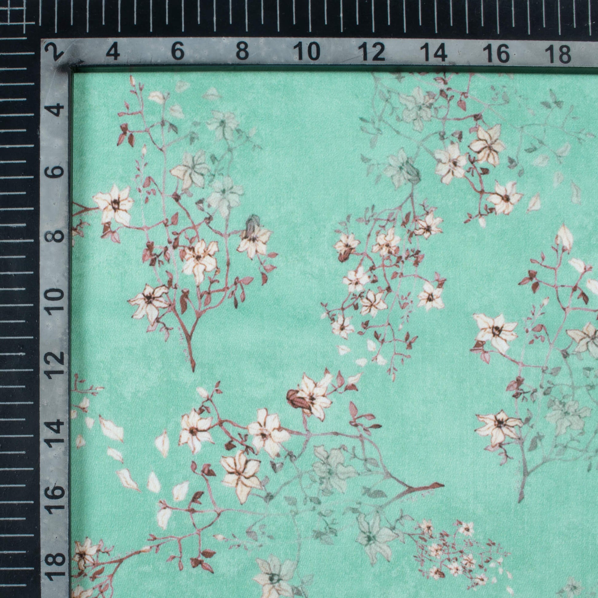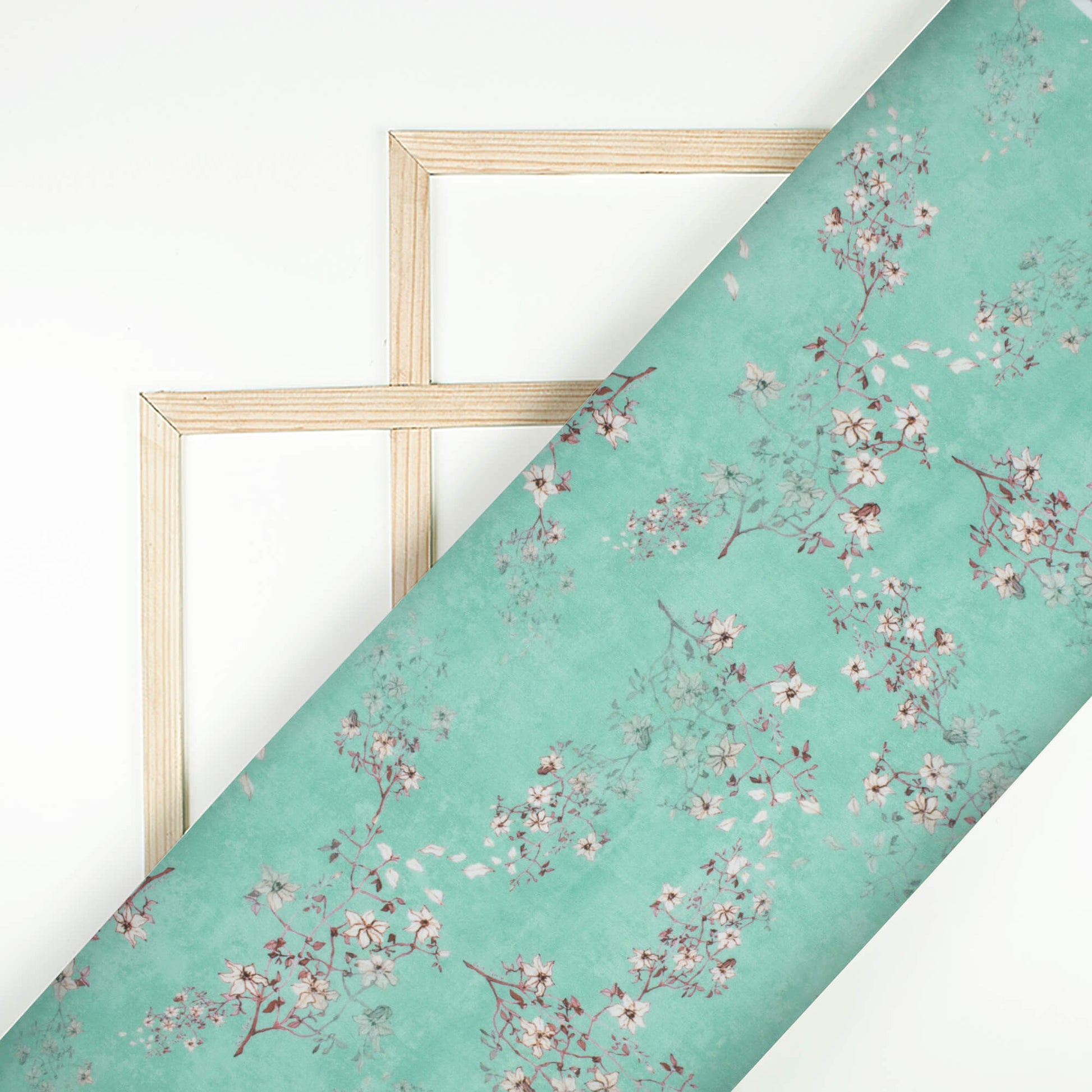 Alice Blue And Brown Floral Pattern Digital Print Poly Glazed Cotton Fabric