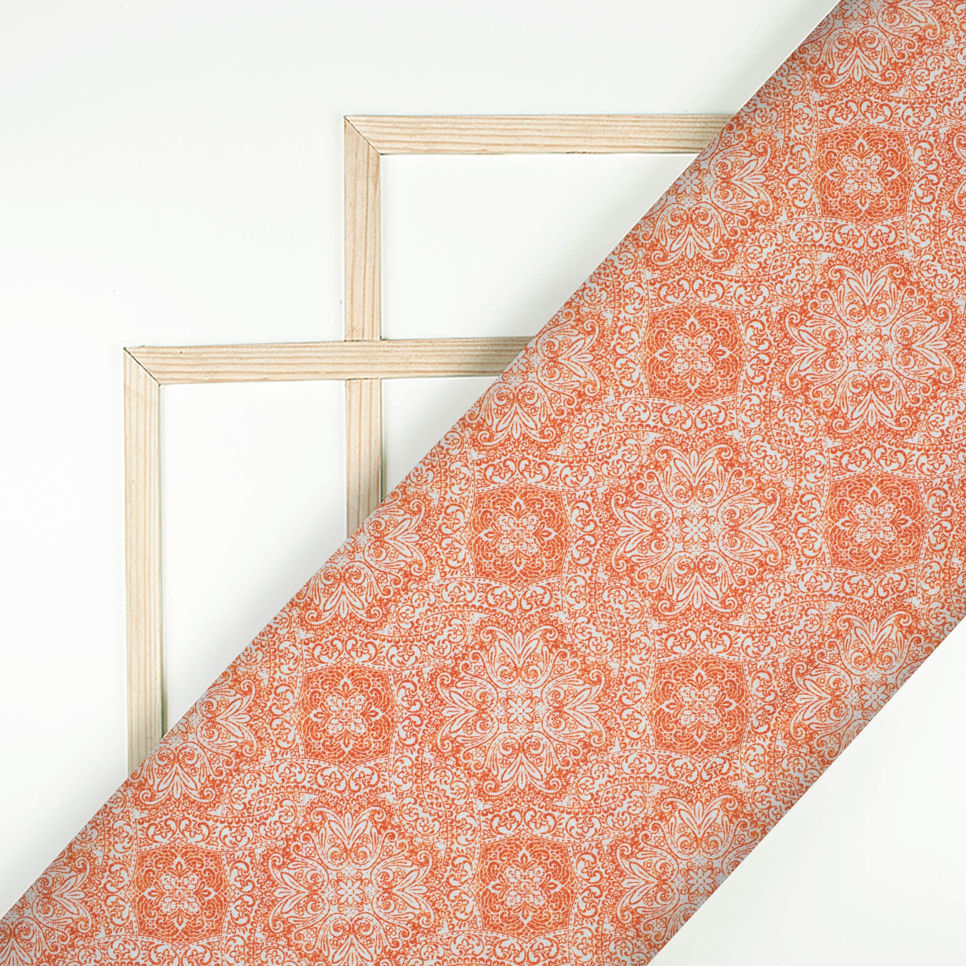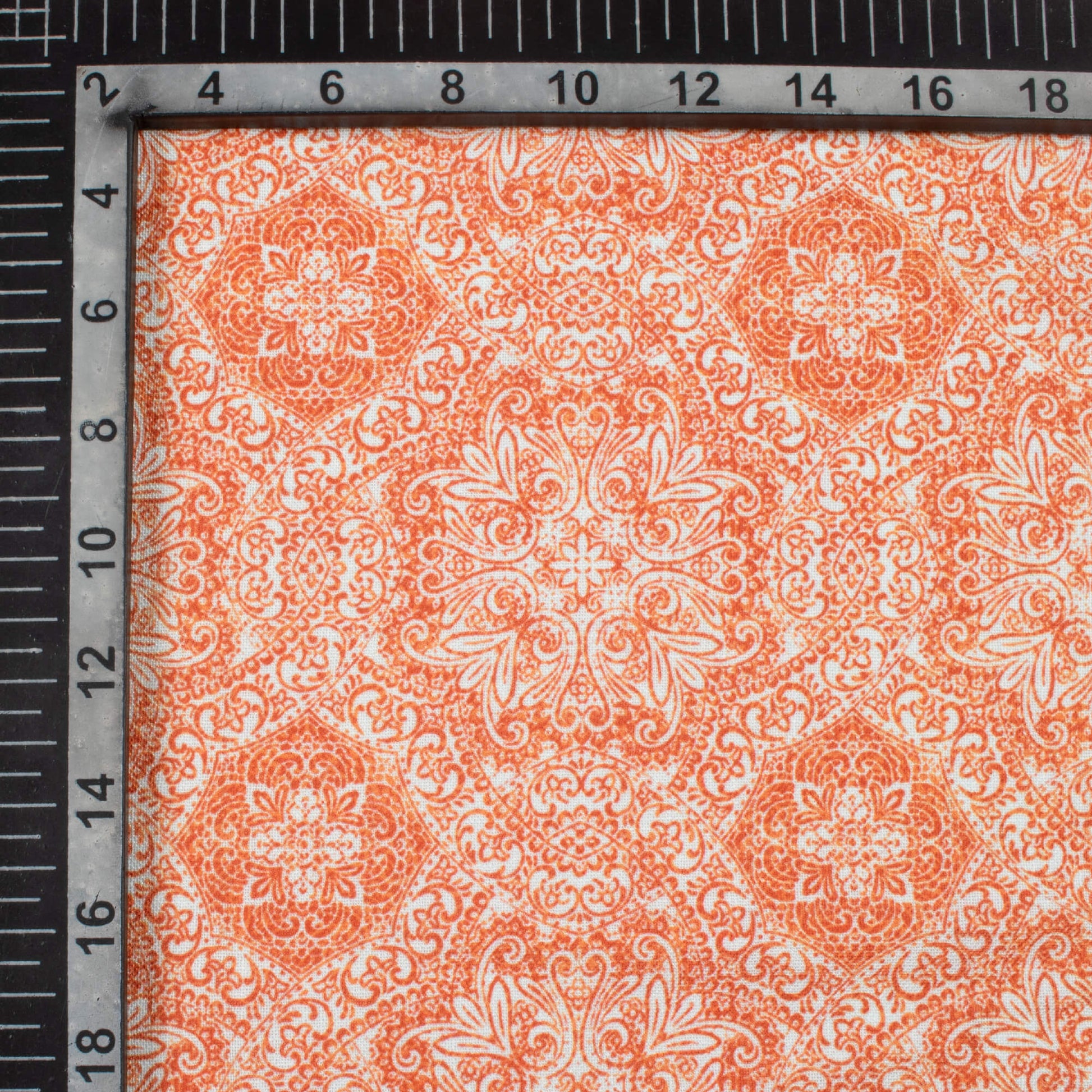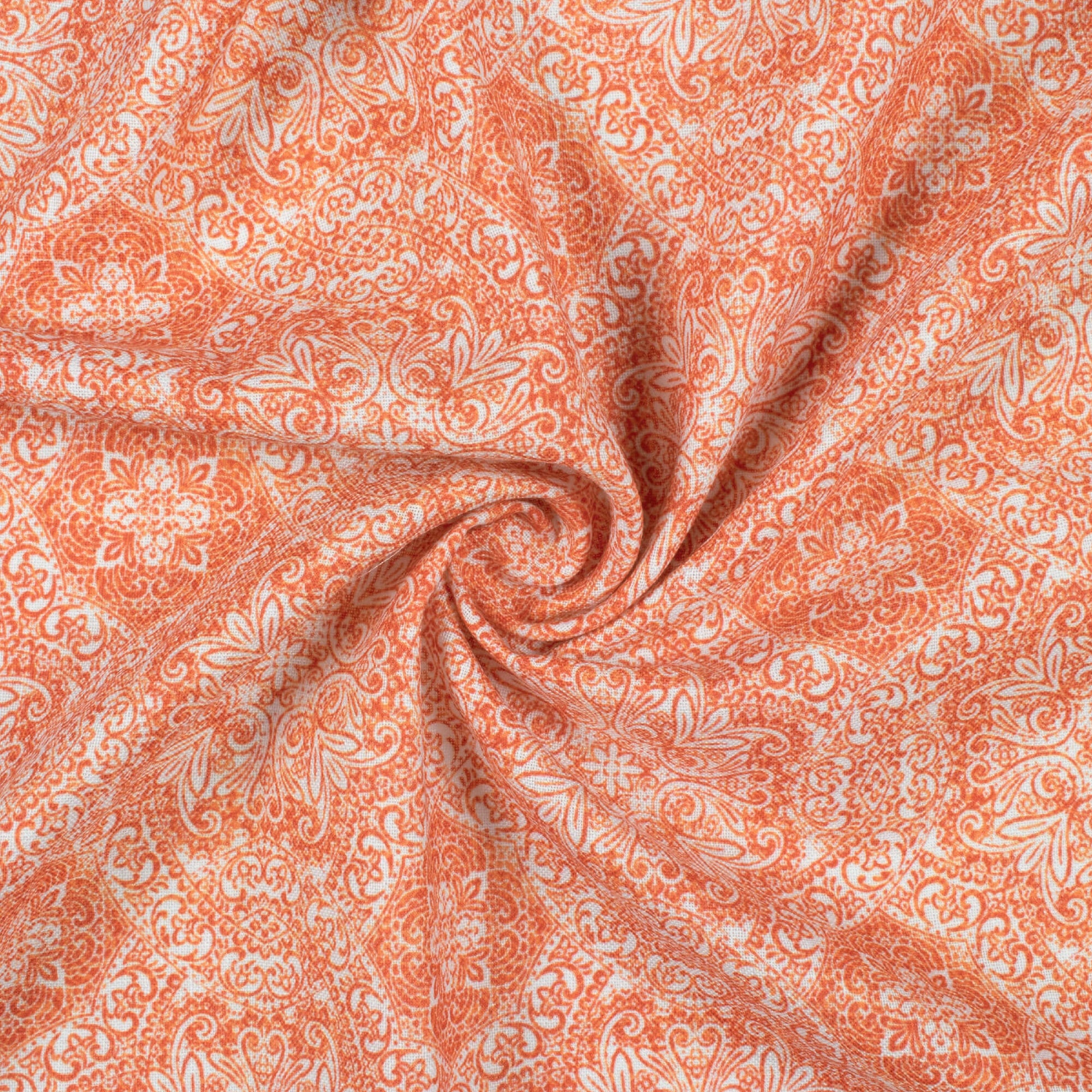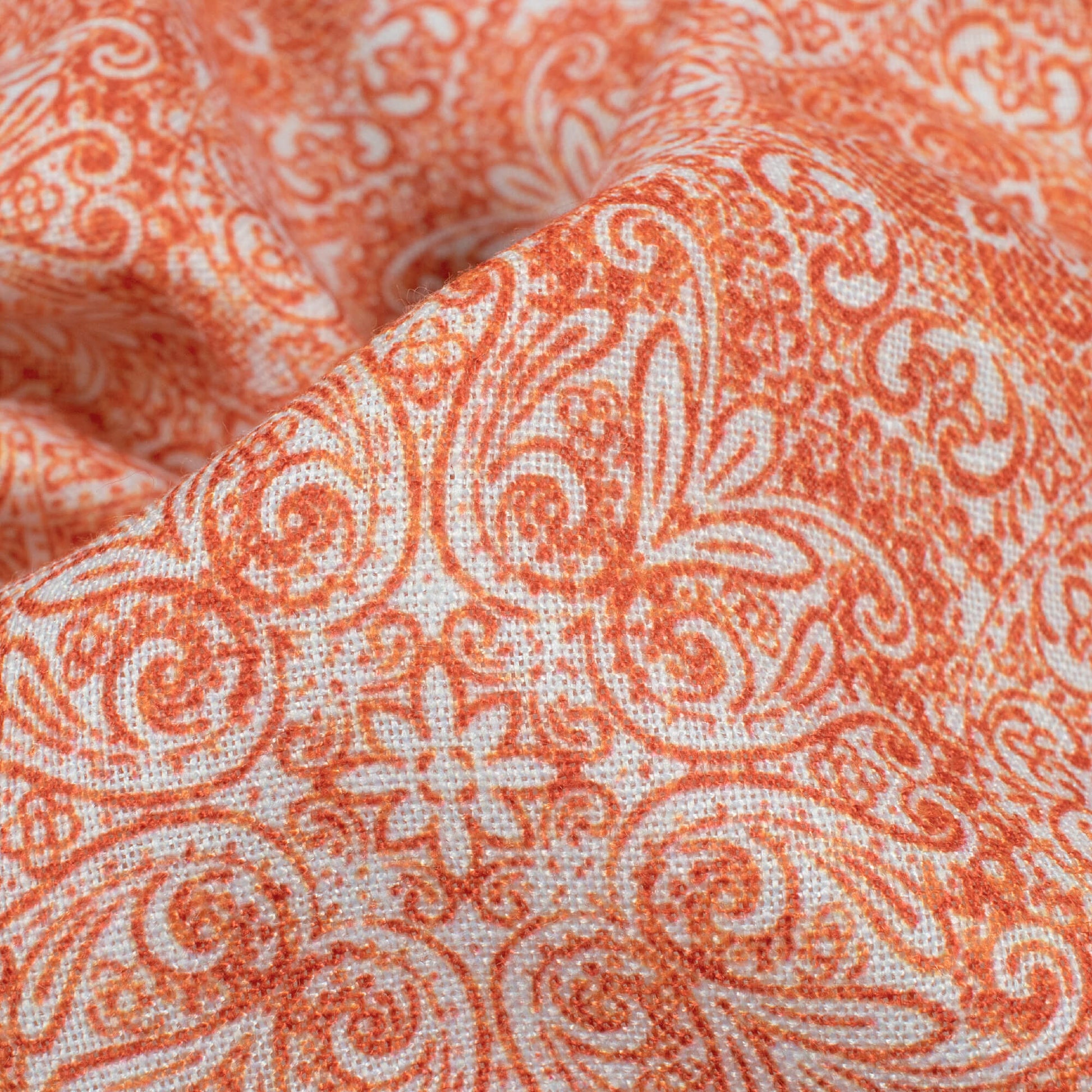 Amber Orange And White Traditional Pattern Digital Print Linen Textured Fabric (Width 56 Inches)