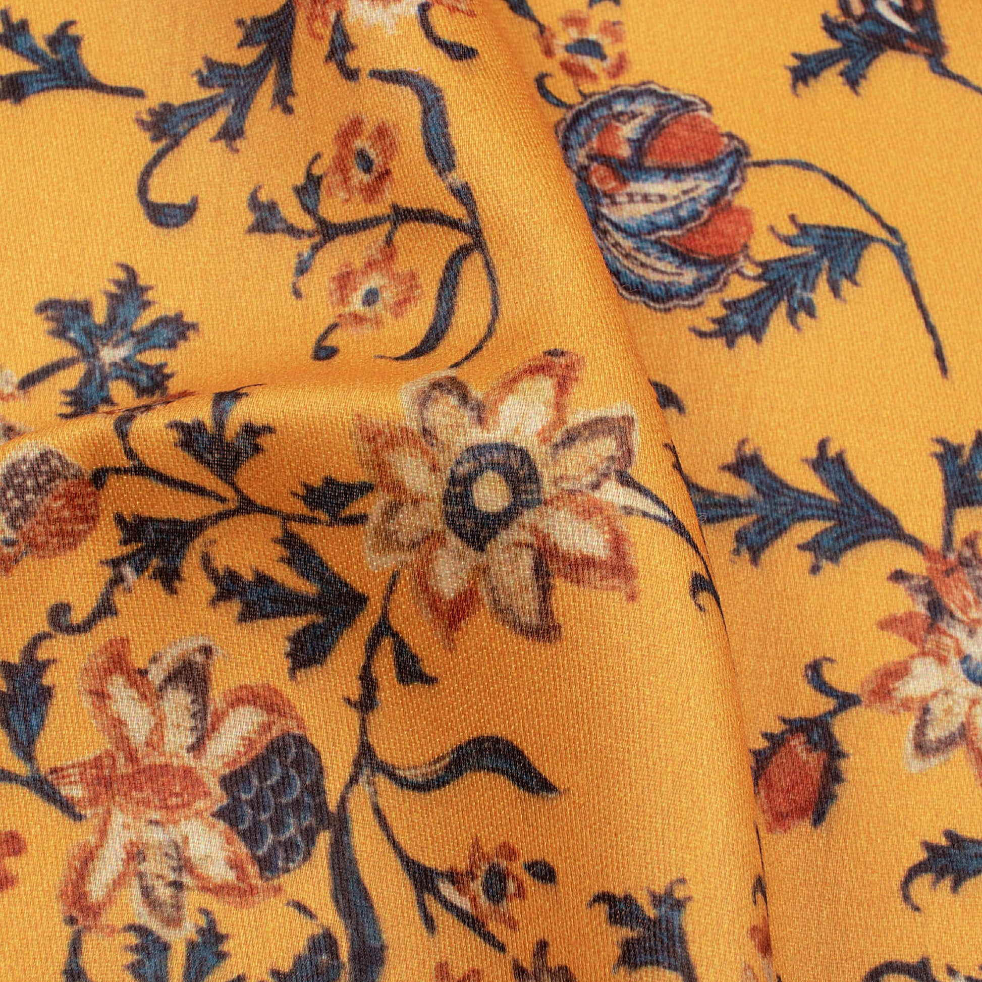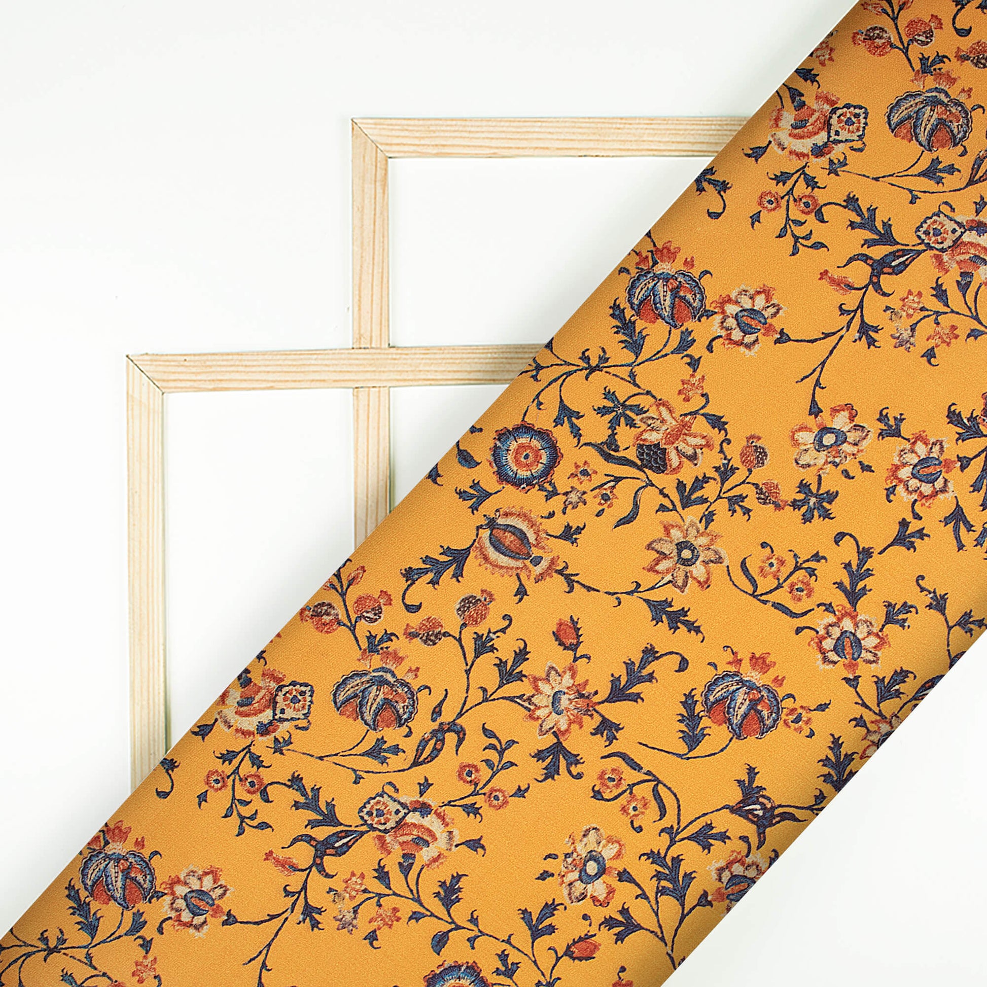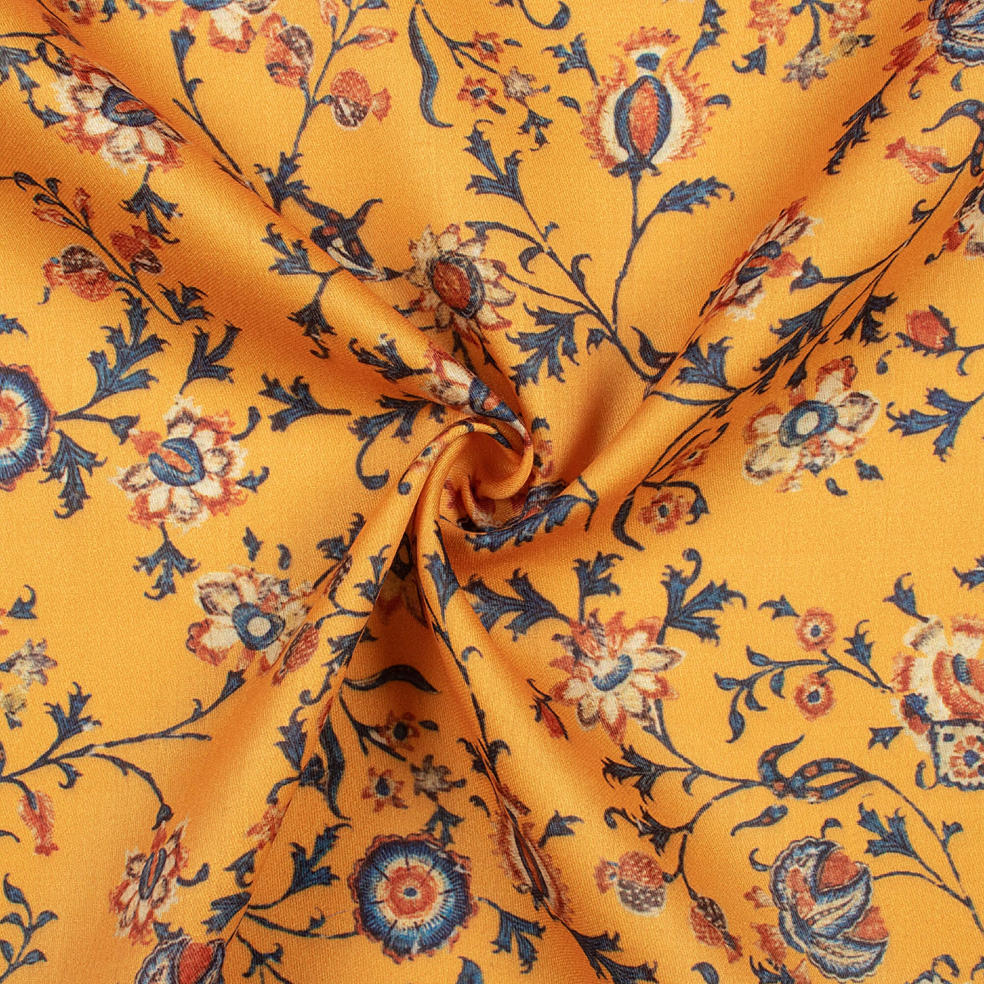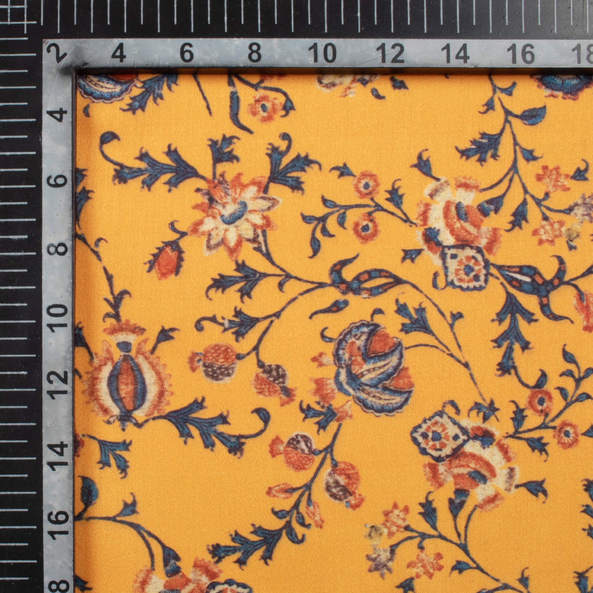 Amber Yellow And Blue Floral Pattern Digital Print Poly Glazed Cotton Fabric