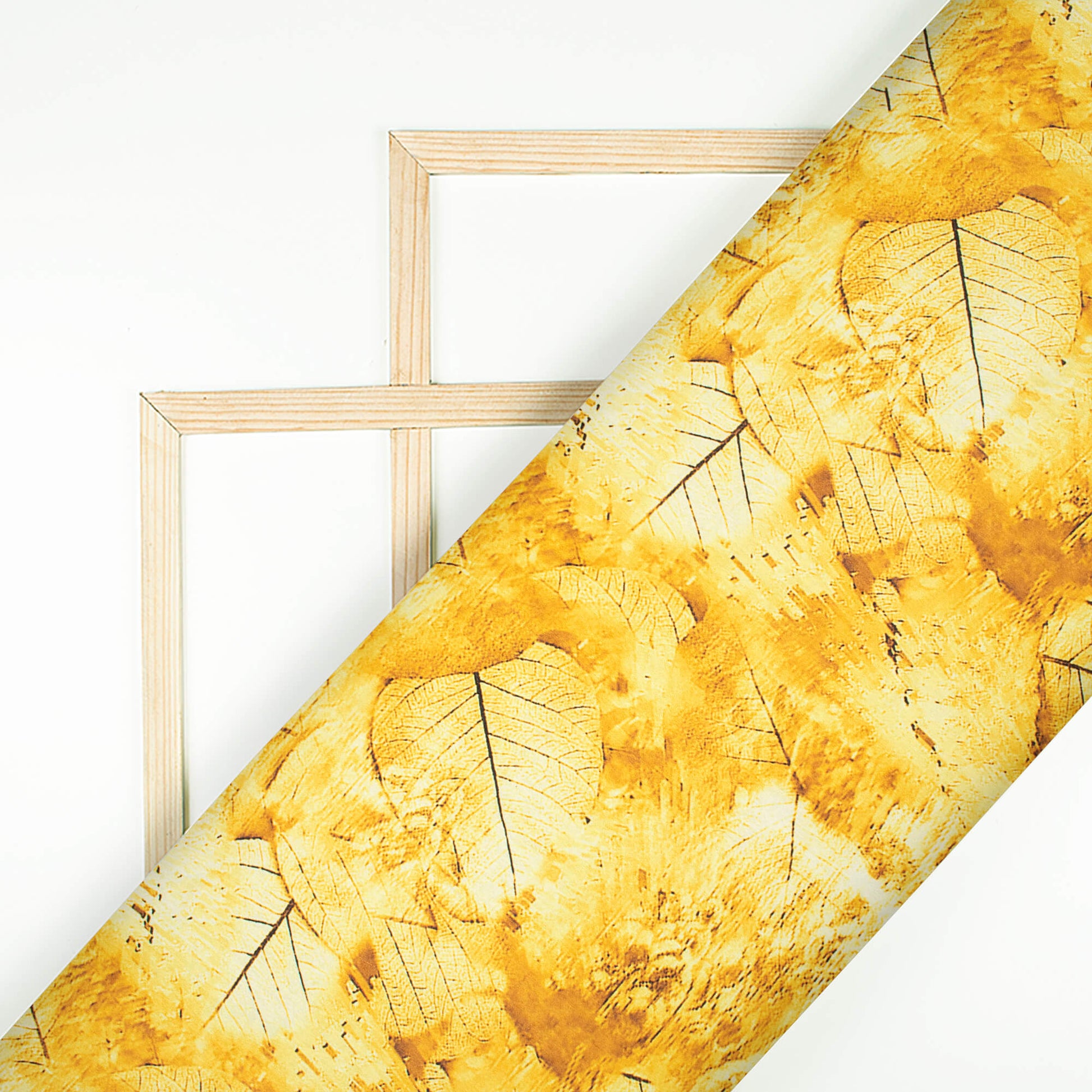 Amber Yellow Leaf Pattern Digital Print Lush Satin Fabric