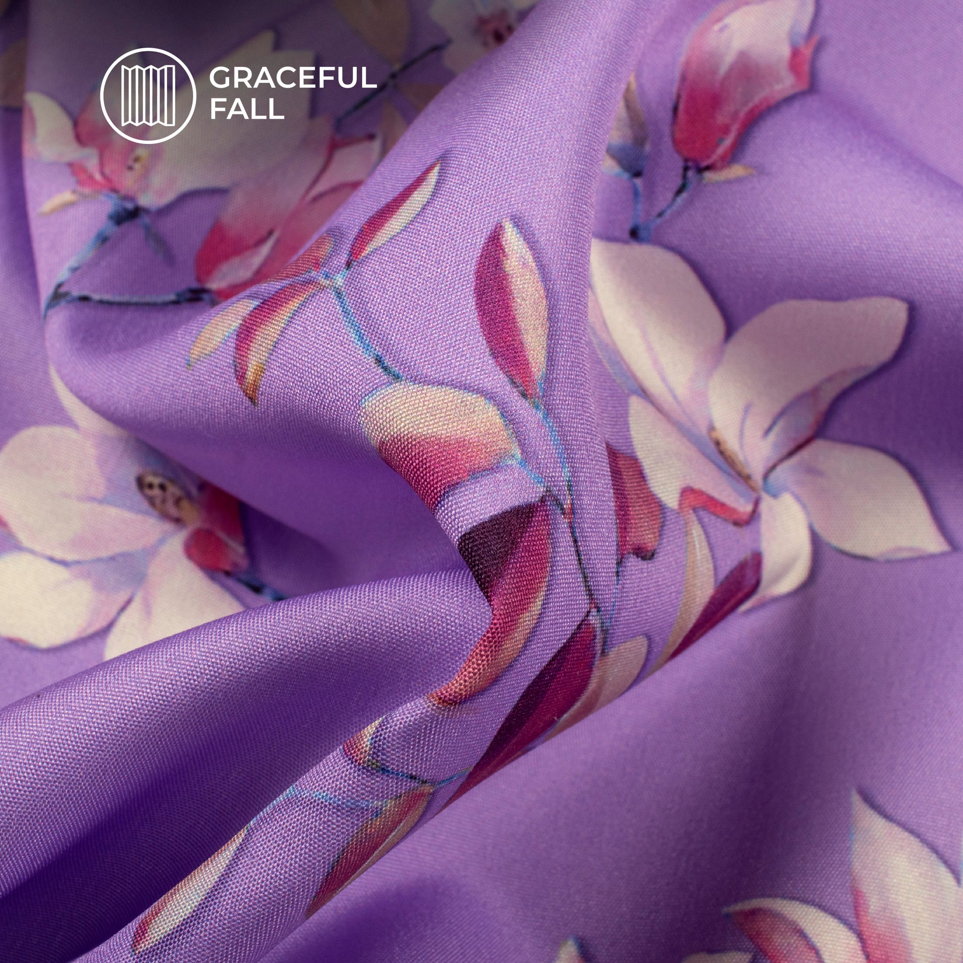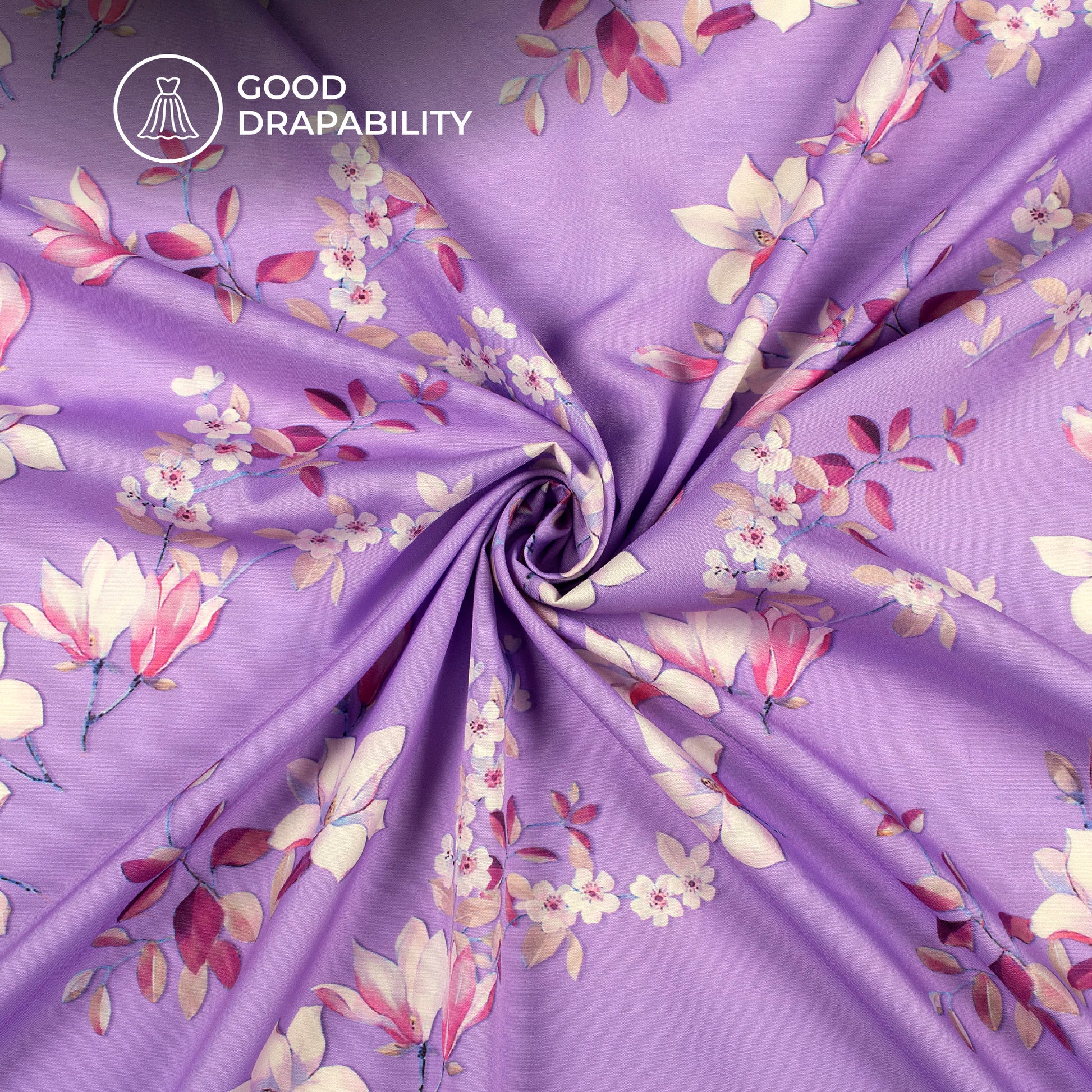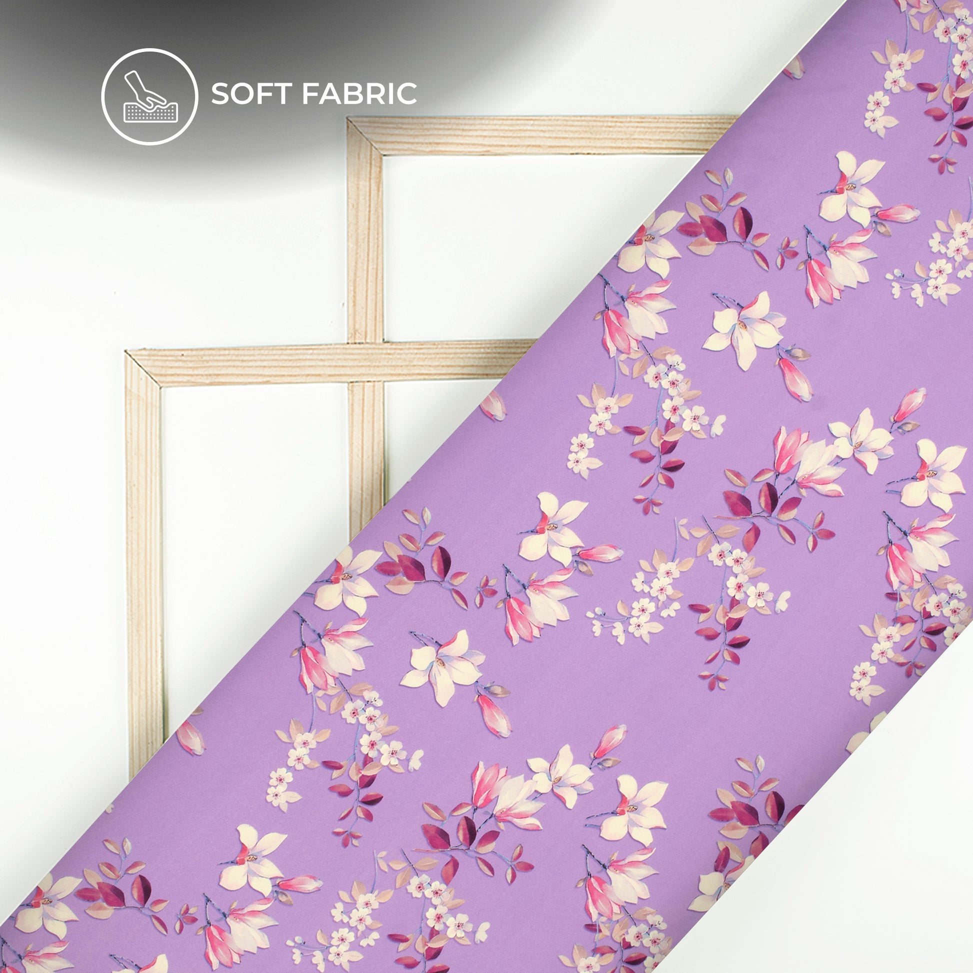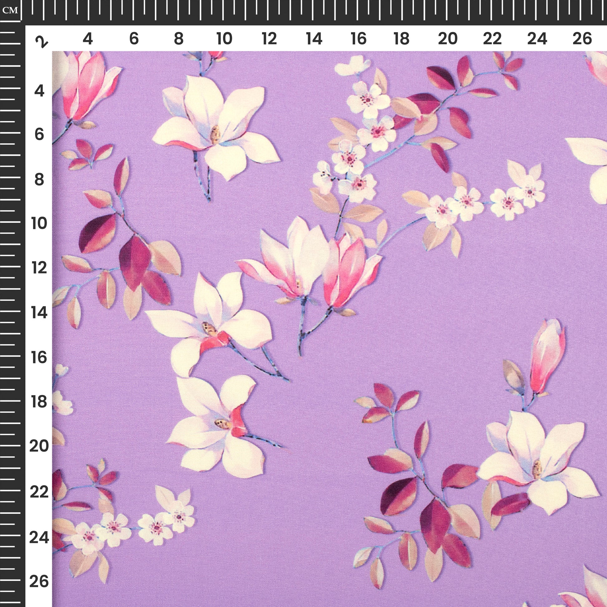 Amethyst Purple And Off White Floral Digital Print Butter Crepe Fabric