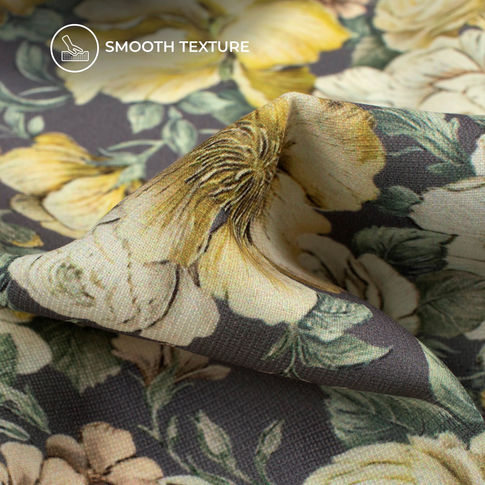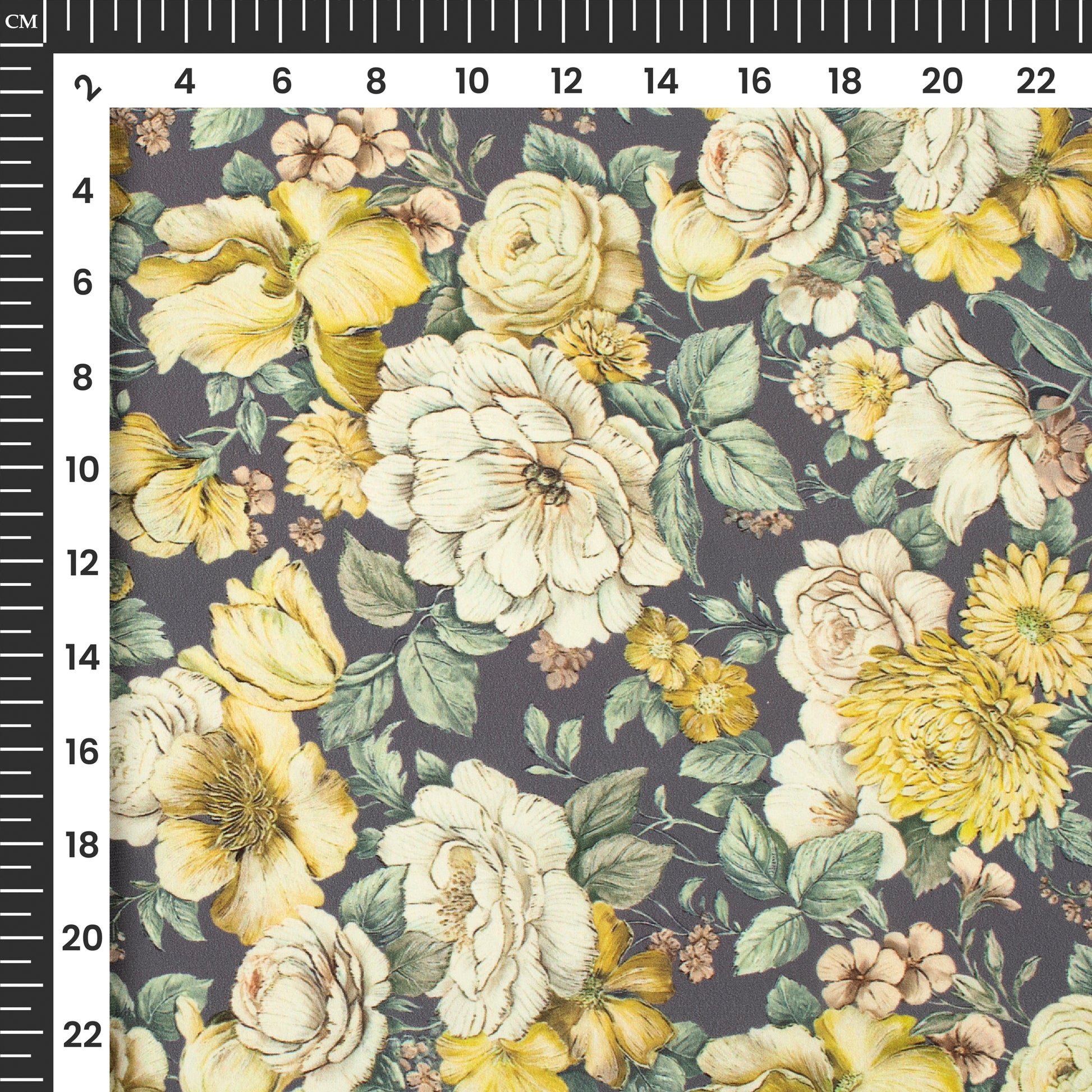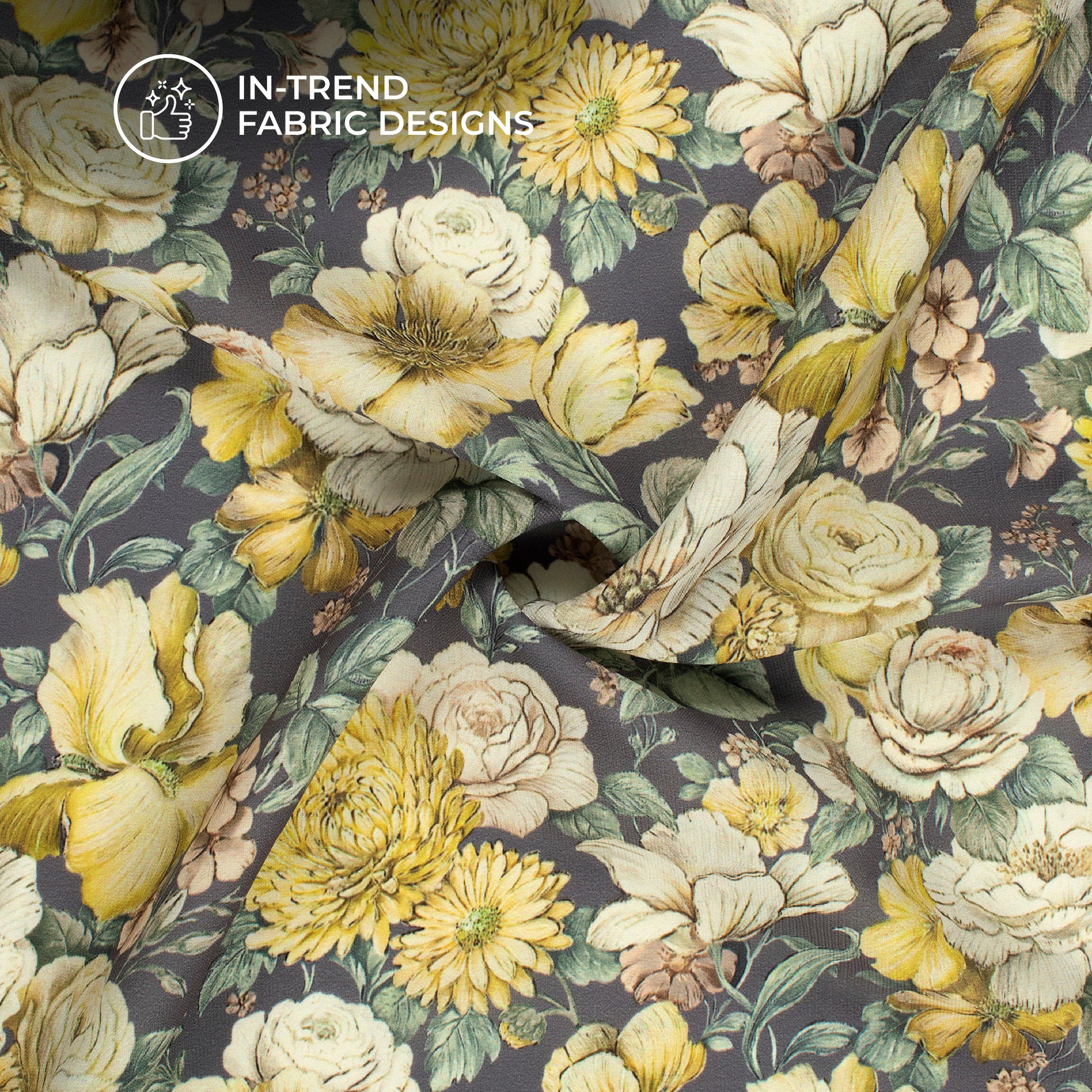 Anchor Grey And Beige Floral Digital Print BSY Crepe Fabric