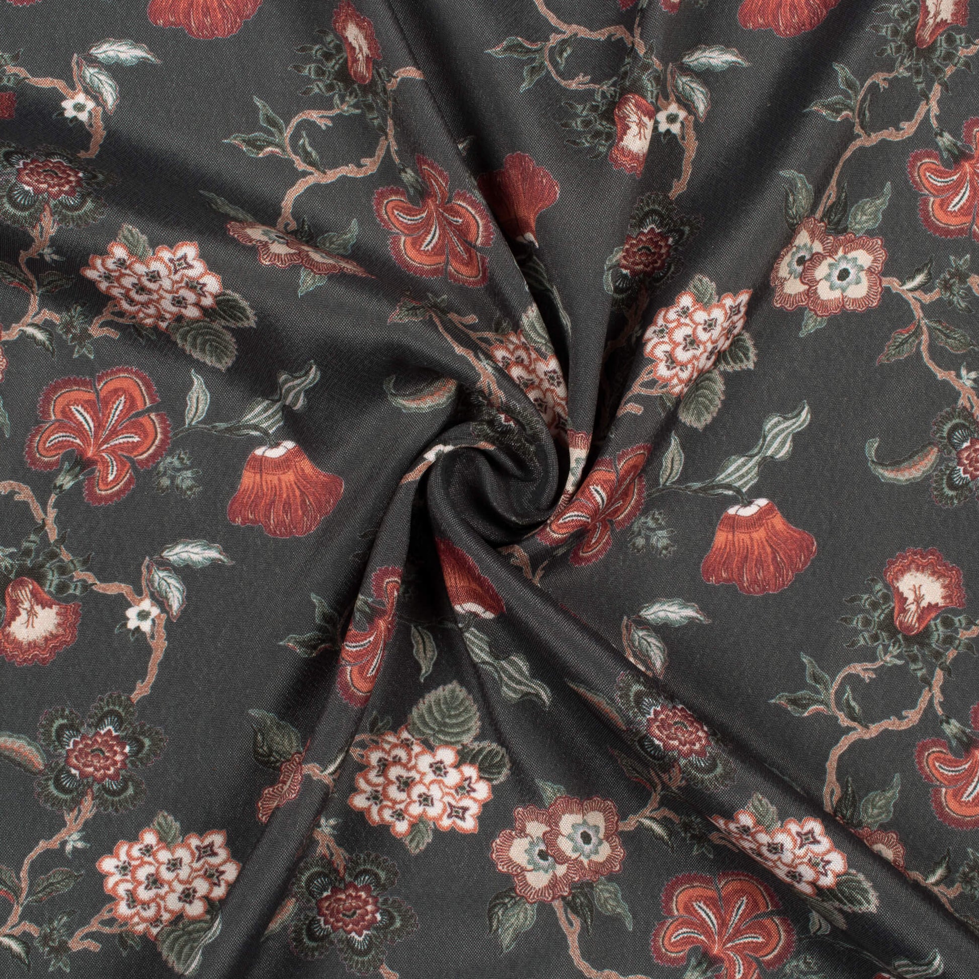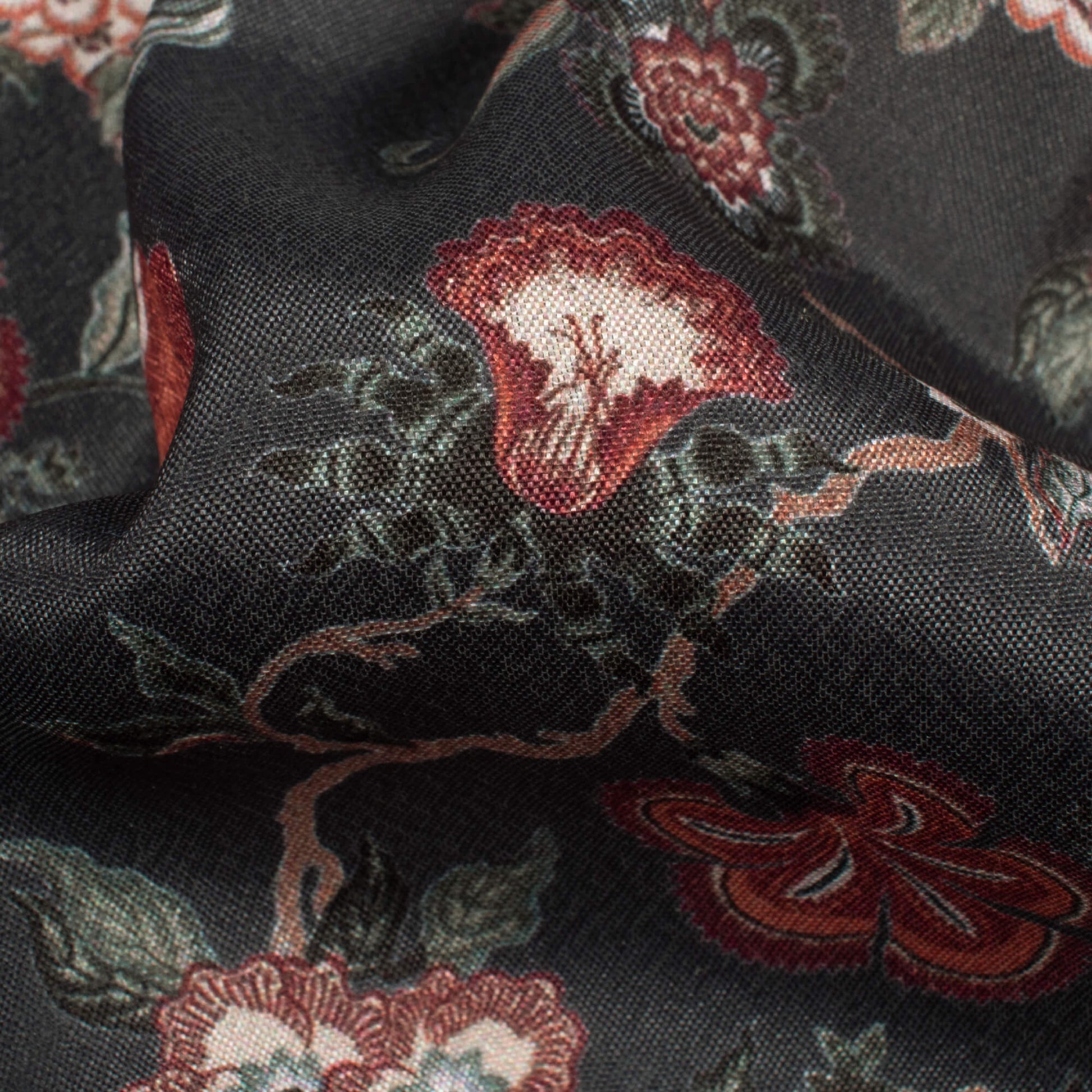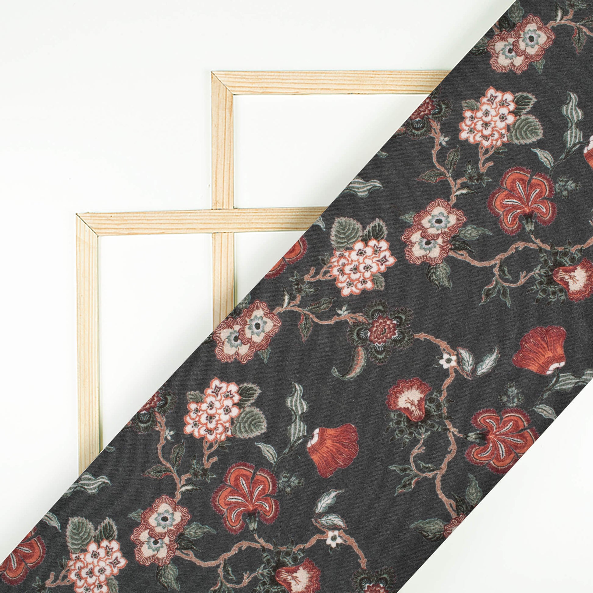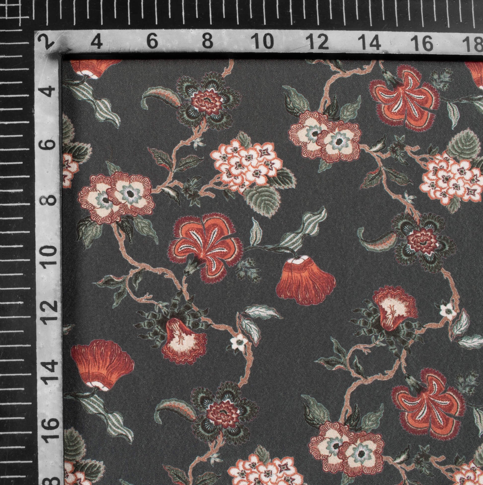 Anchor Grey And Cream Floral Pattern Digital Print Crepe Silk Fabric