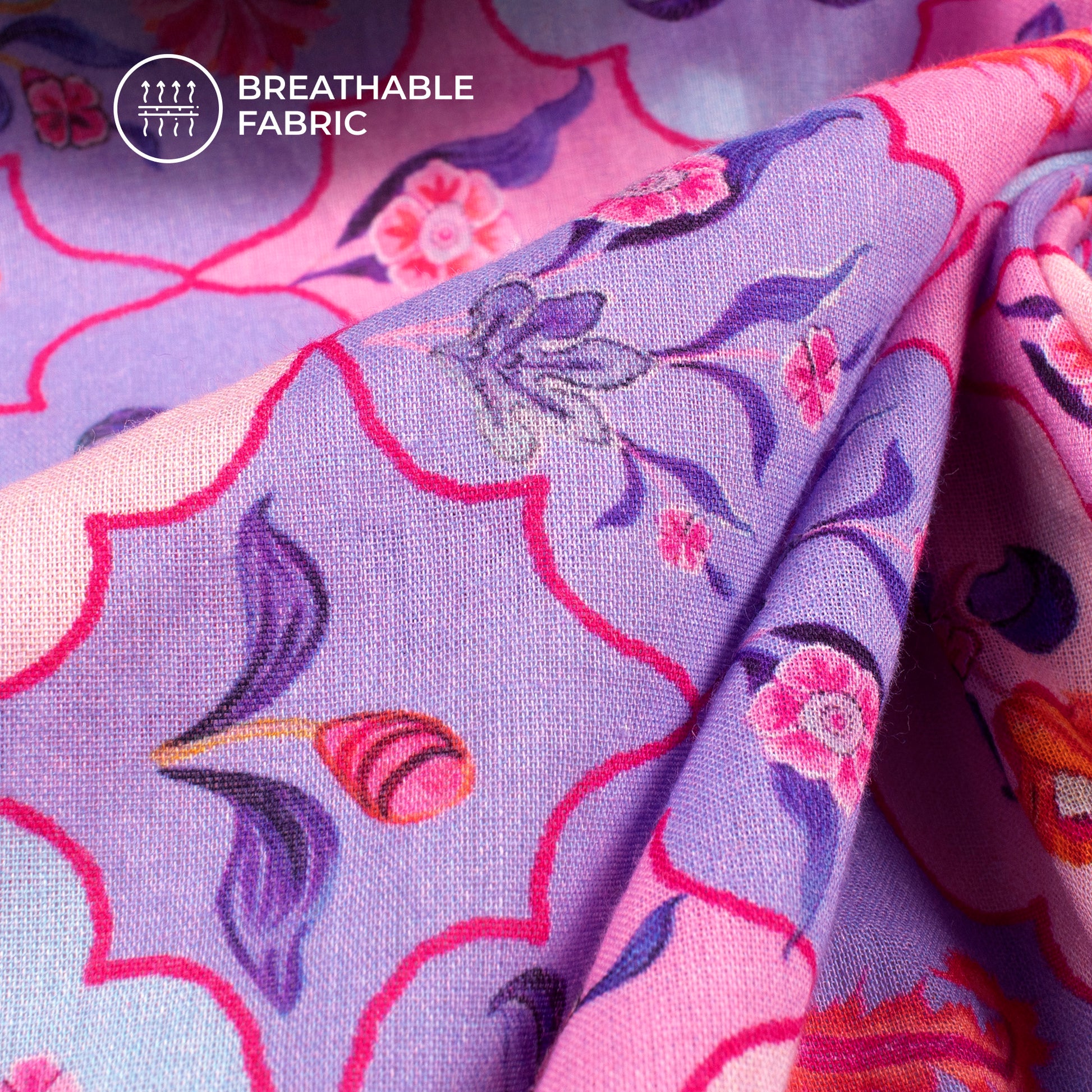 Cotton mulmul- often referred to as wonder gossamer, is a sheer, delicate, lightweight, fine and a soft cotton. Fabcurate’s digital print cotton mulmul fabric is a step ahead. Adding to the already existing beauty of mulmul are the beautiful digital prints, containing alluring colors. Add a touch of richness in your wardrobe by developing ensembles like saree, suit, dupatta, lehenga, kurta, shirts, cords and much more.