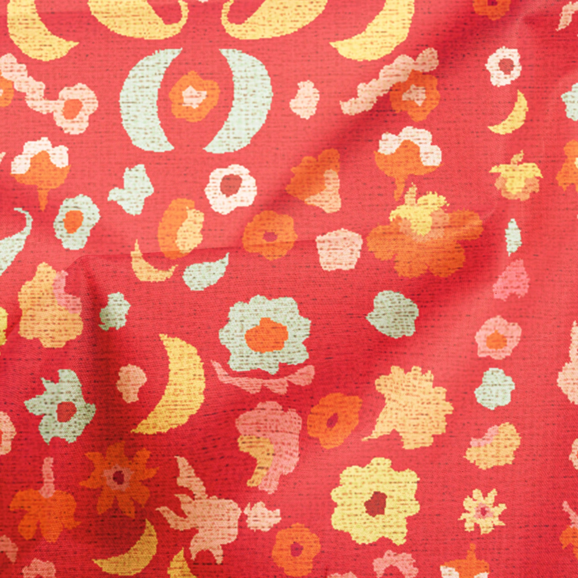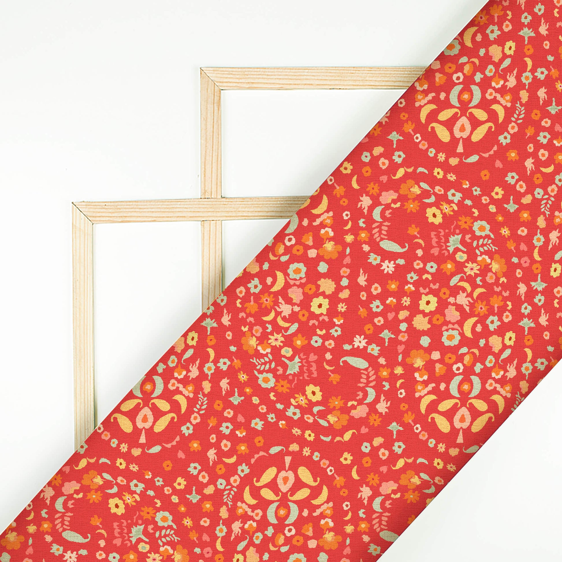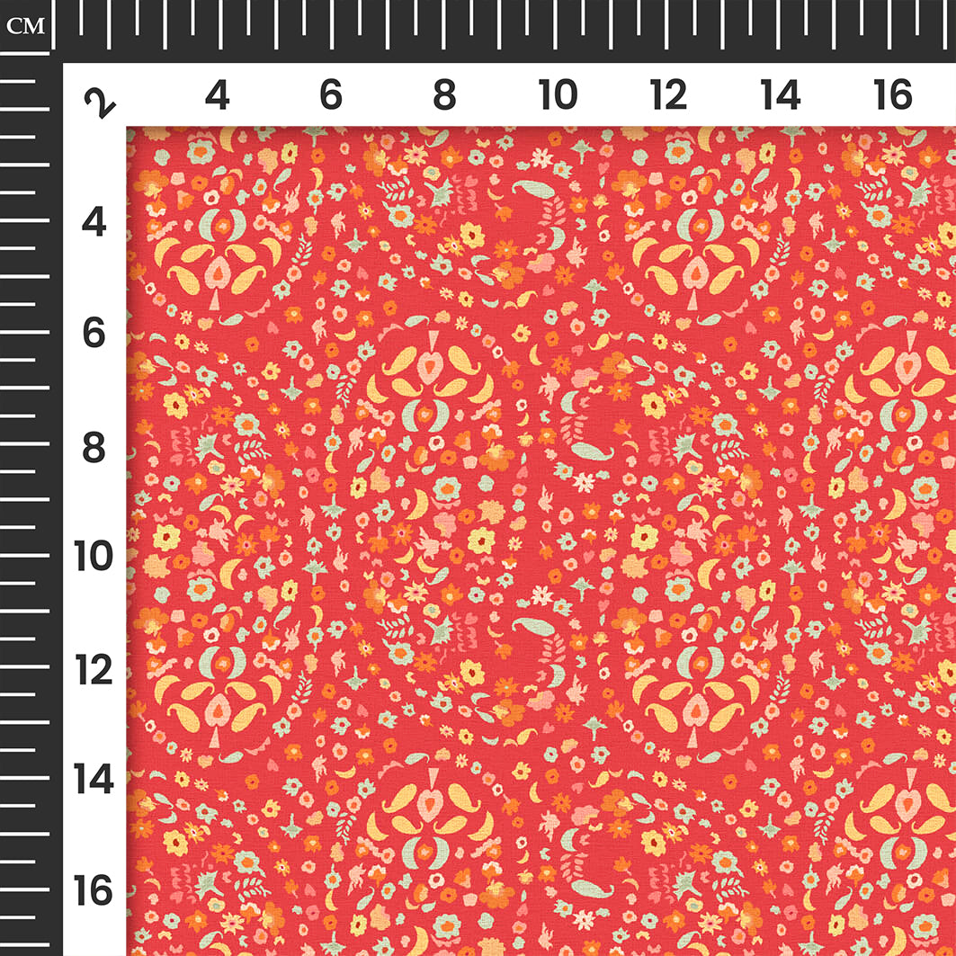 Apurva's Choice Red And Turquoise Paisley Pattern Digital Print Georgette Fabric