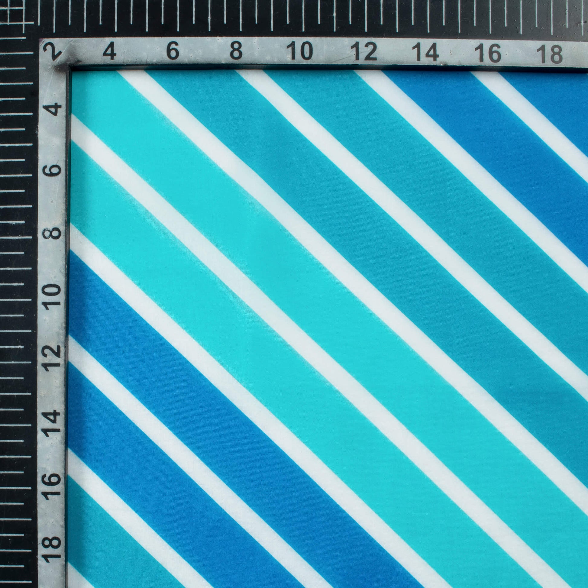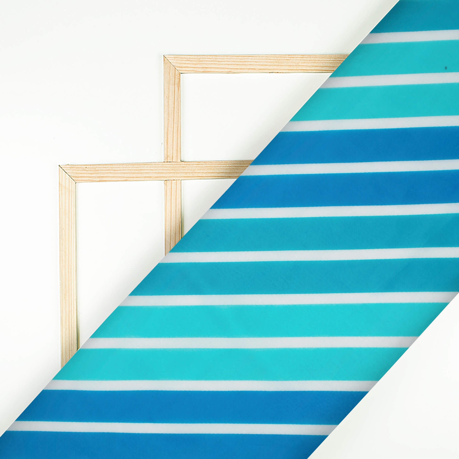 Aqua And Royal Blue Stripes Pattern Digital Print Organza Satin Fabric