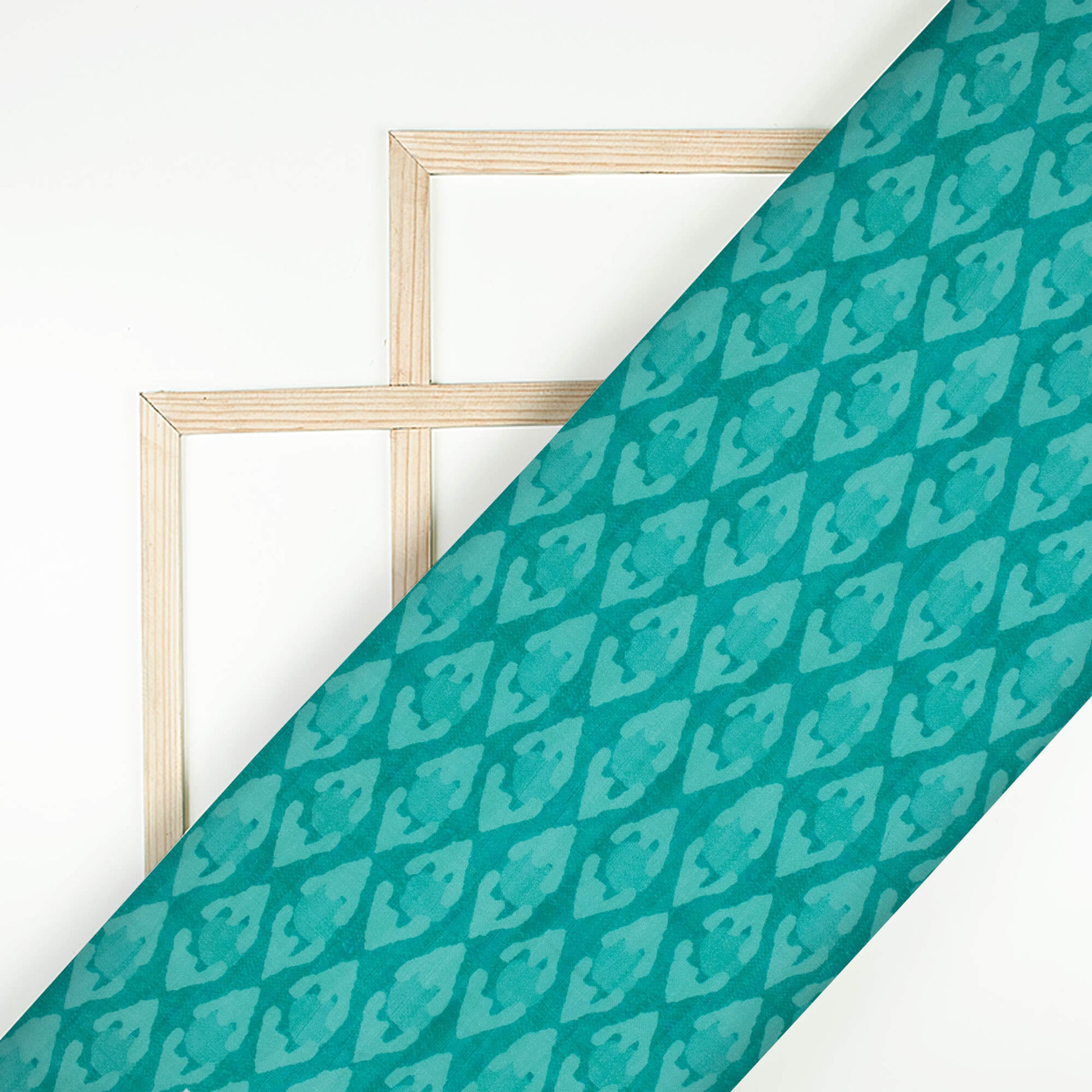 Aqua Blue Abstract Pattern Digital Print Poly Cambric Fabric
