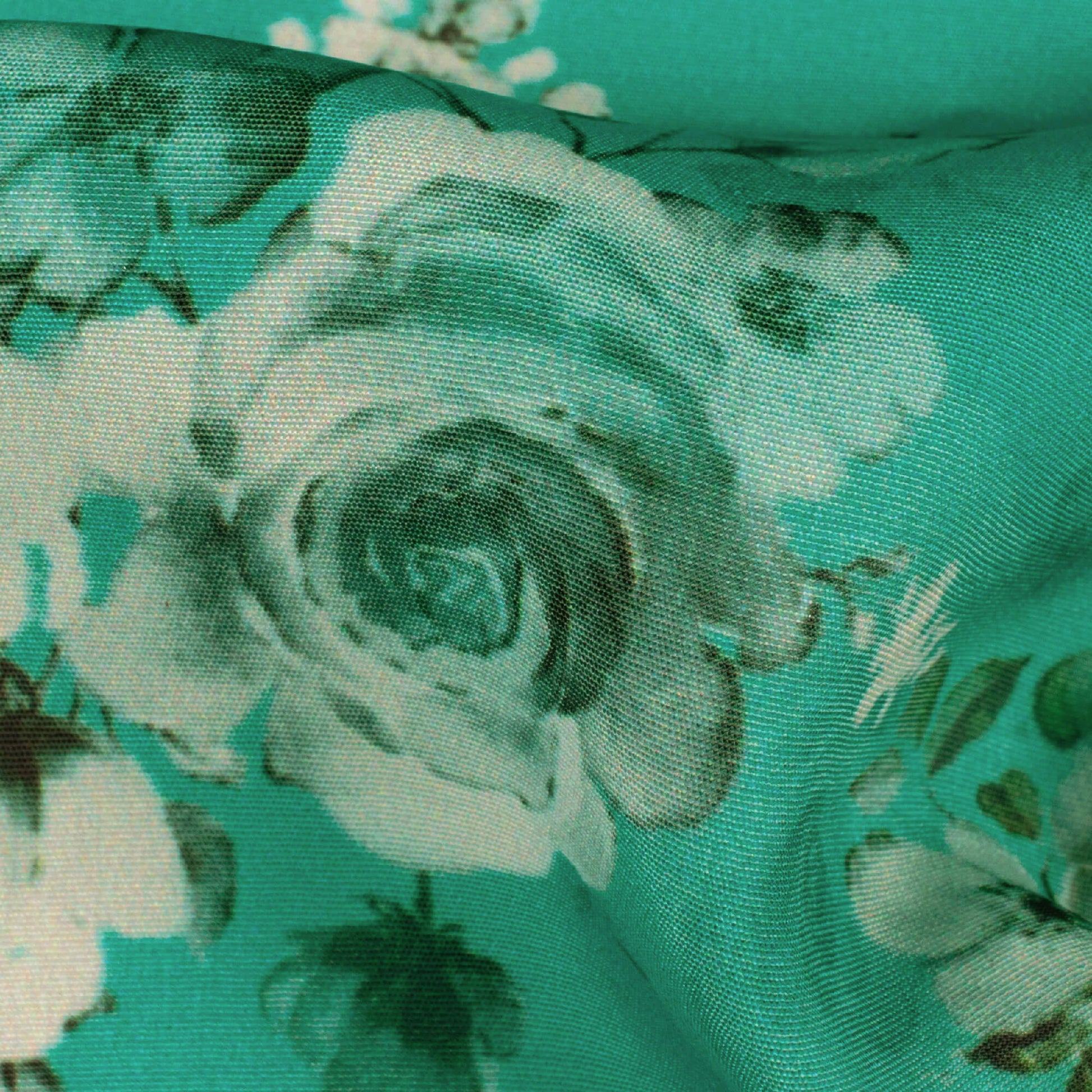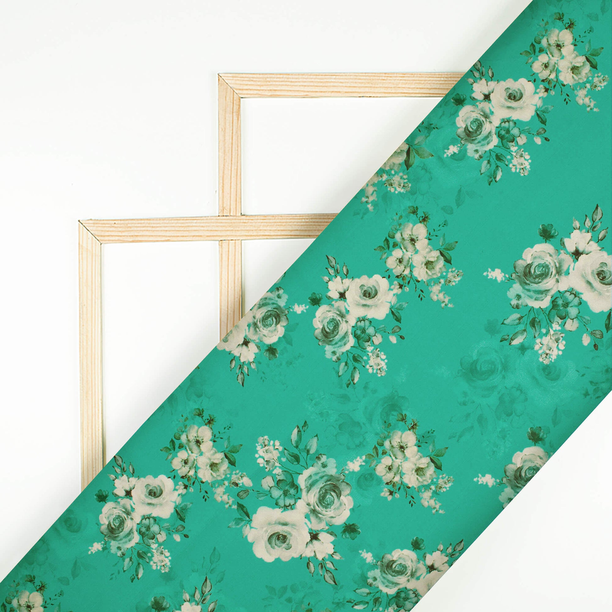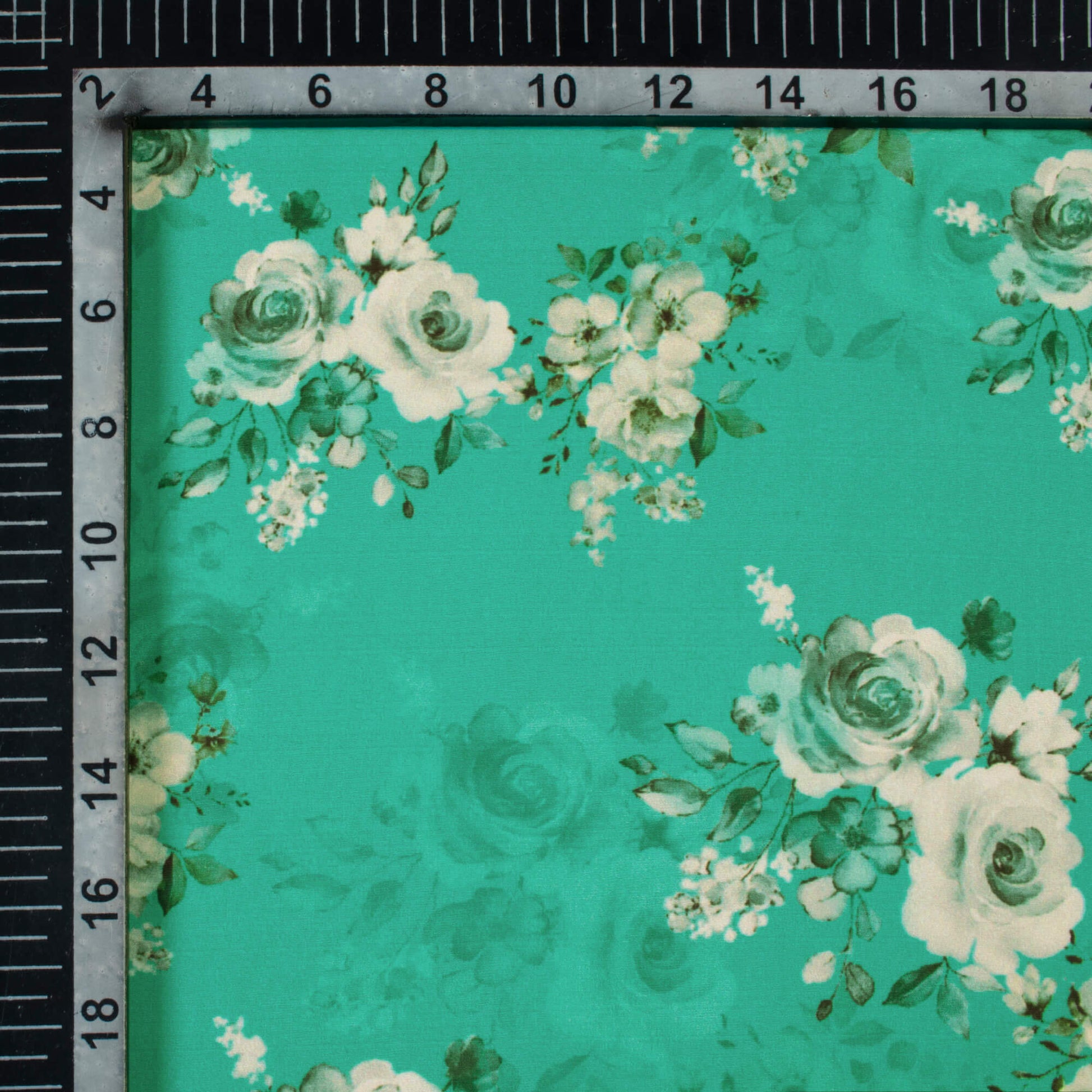 Aqua Blue And Snow White Floral Pattern Digital Print Royal BSY Crepe Fabric
