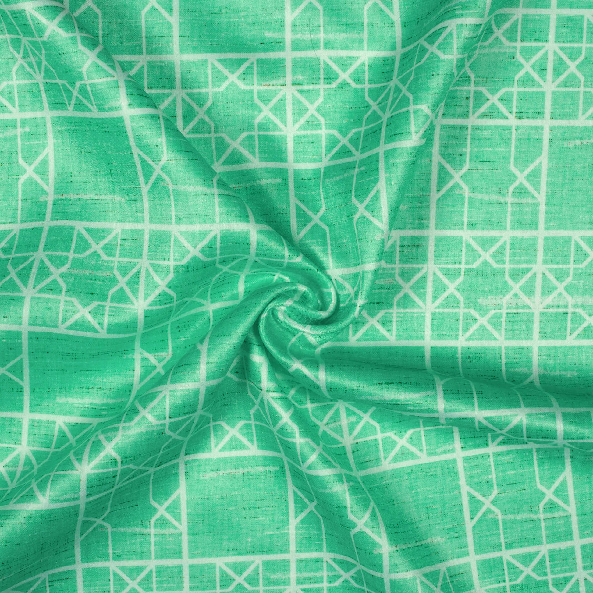 Aquamarine Geometric Pattern Digital Print Lush Satin Fabric
