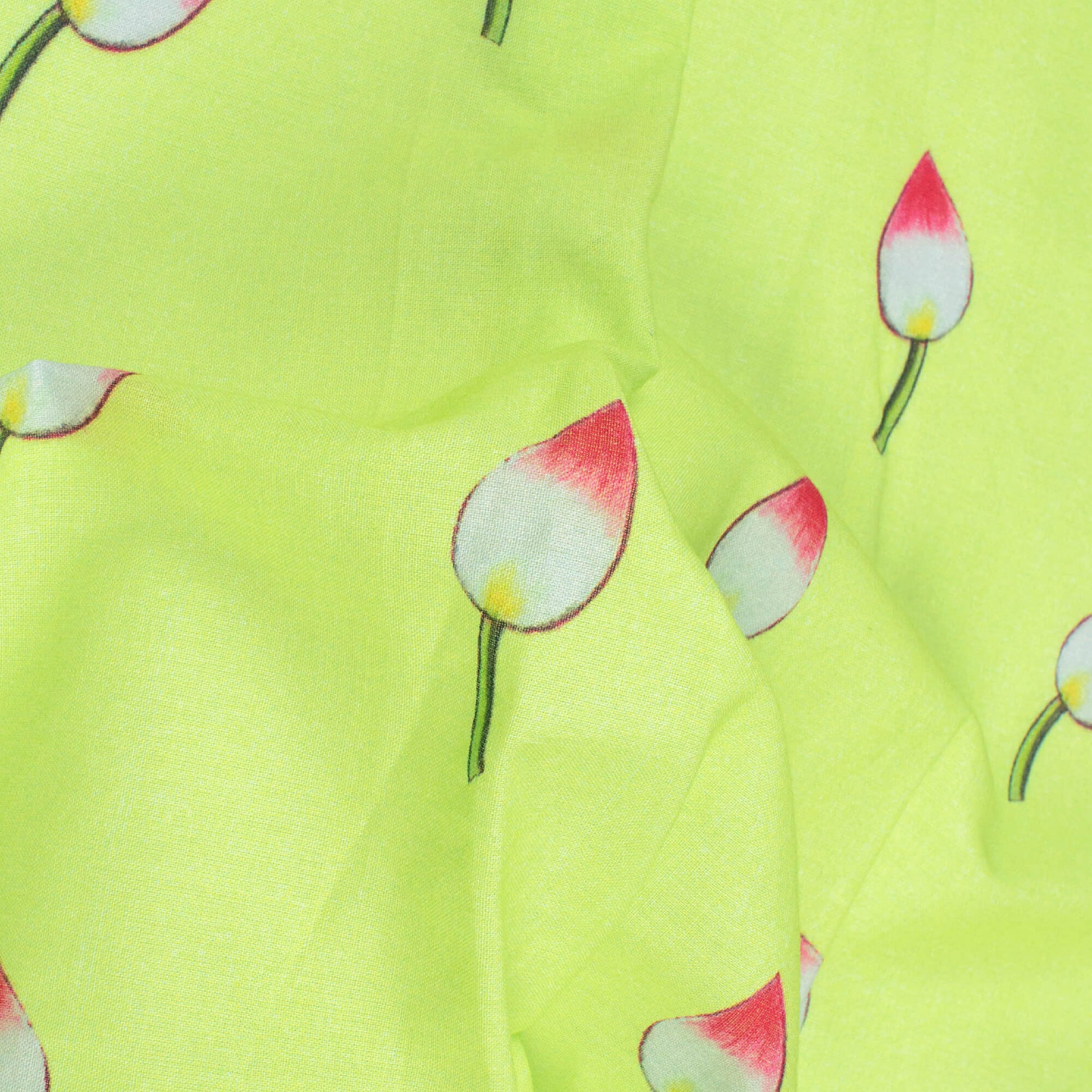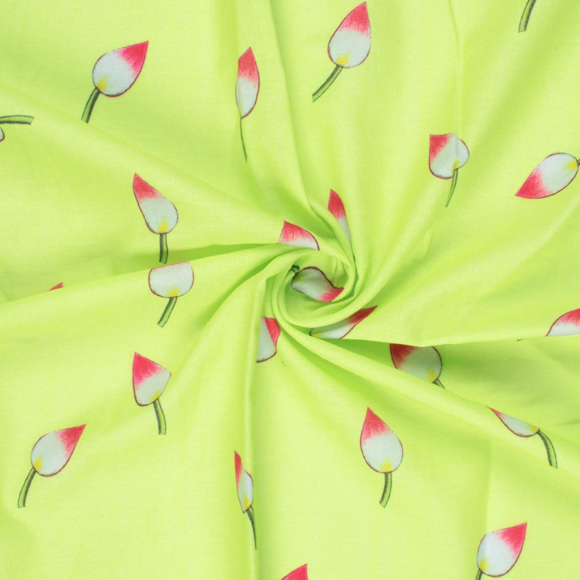 Aradhya's Choice Lamon Green And Pink Floral Pattern Digital Print Cotton Cambric Fabric