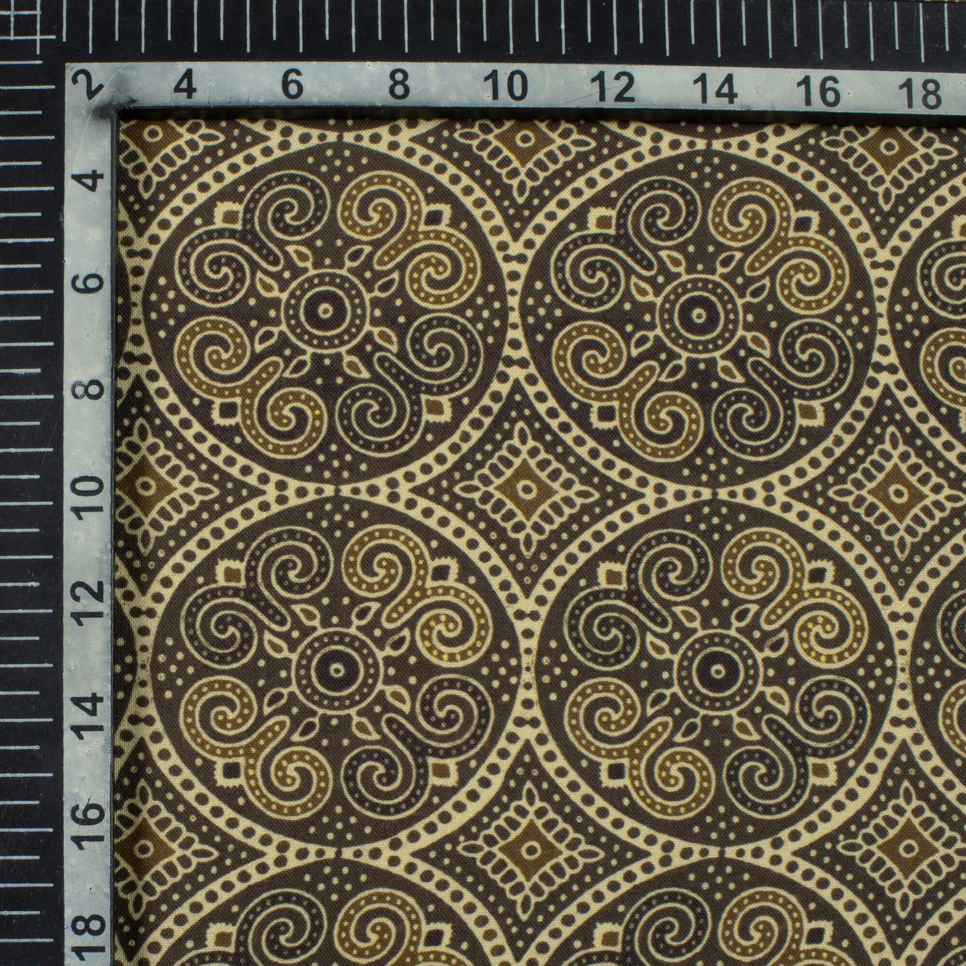 Army Green And Camel Brown Ajrakh Pattern Digital Print Rayon Fabric