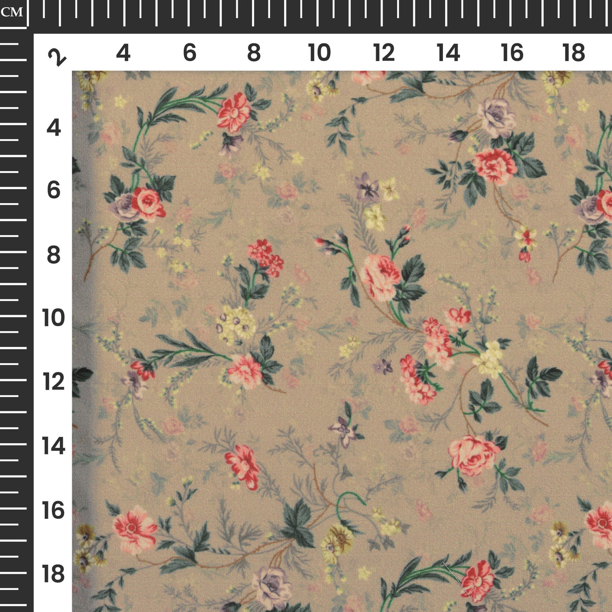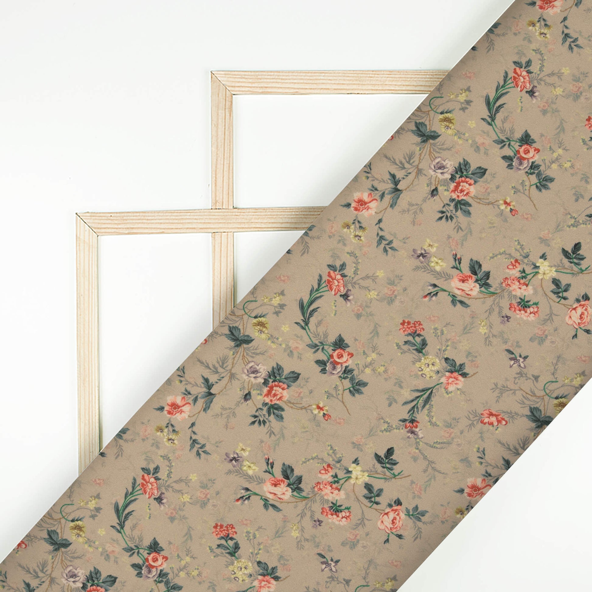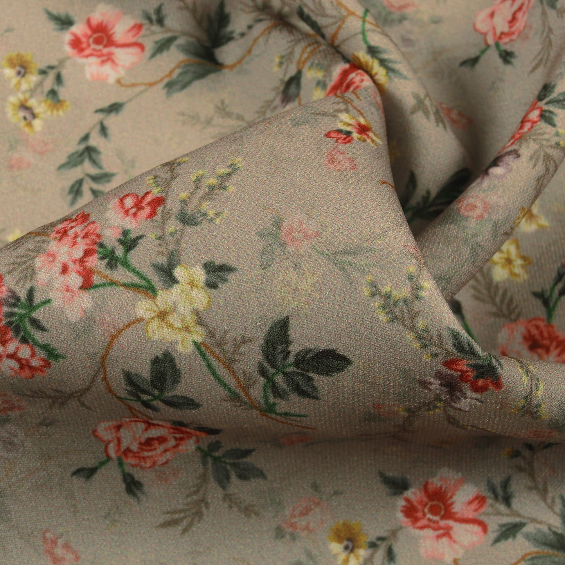 Artichoke Green And Pink Floral Pattern Digital Print BSY Crepe Fabric