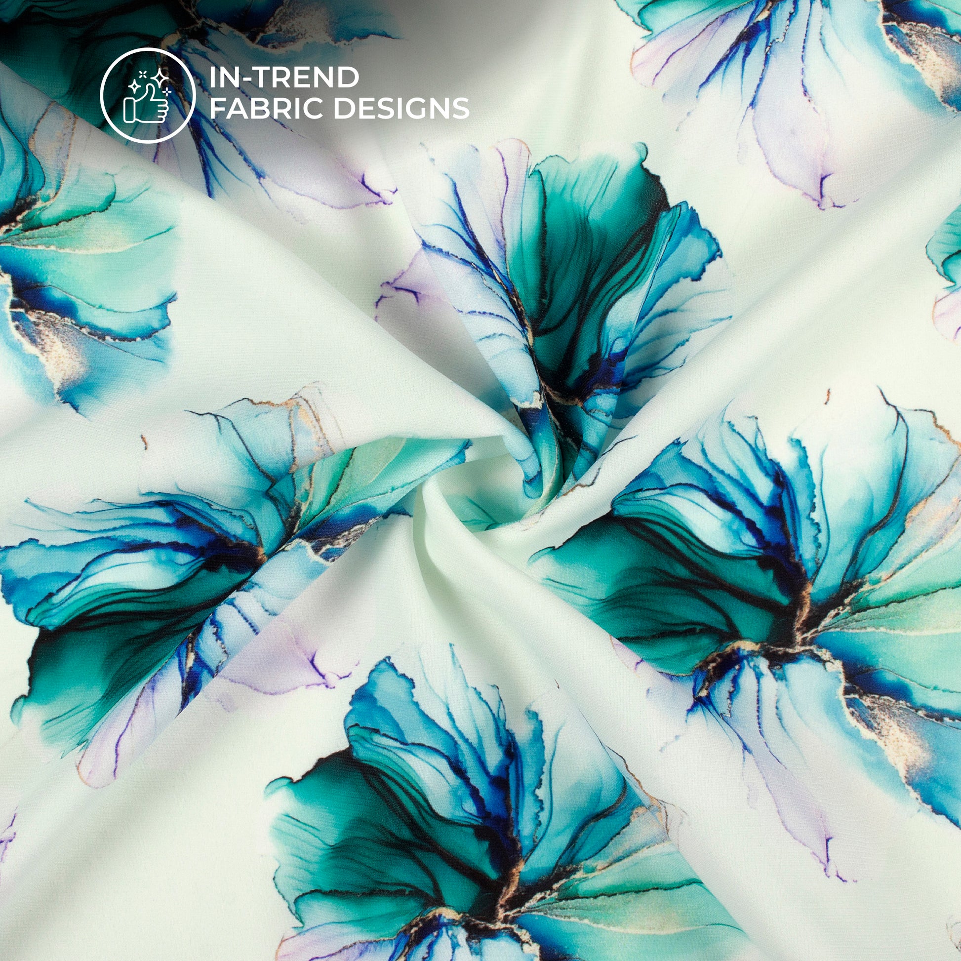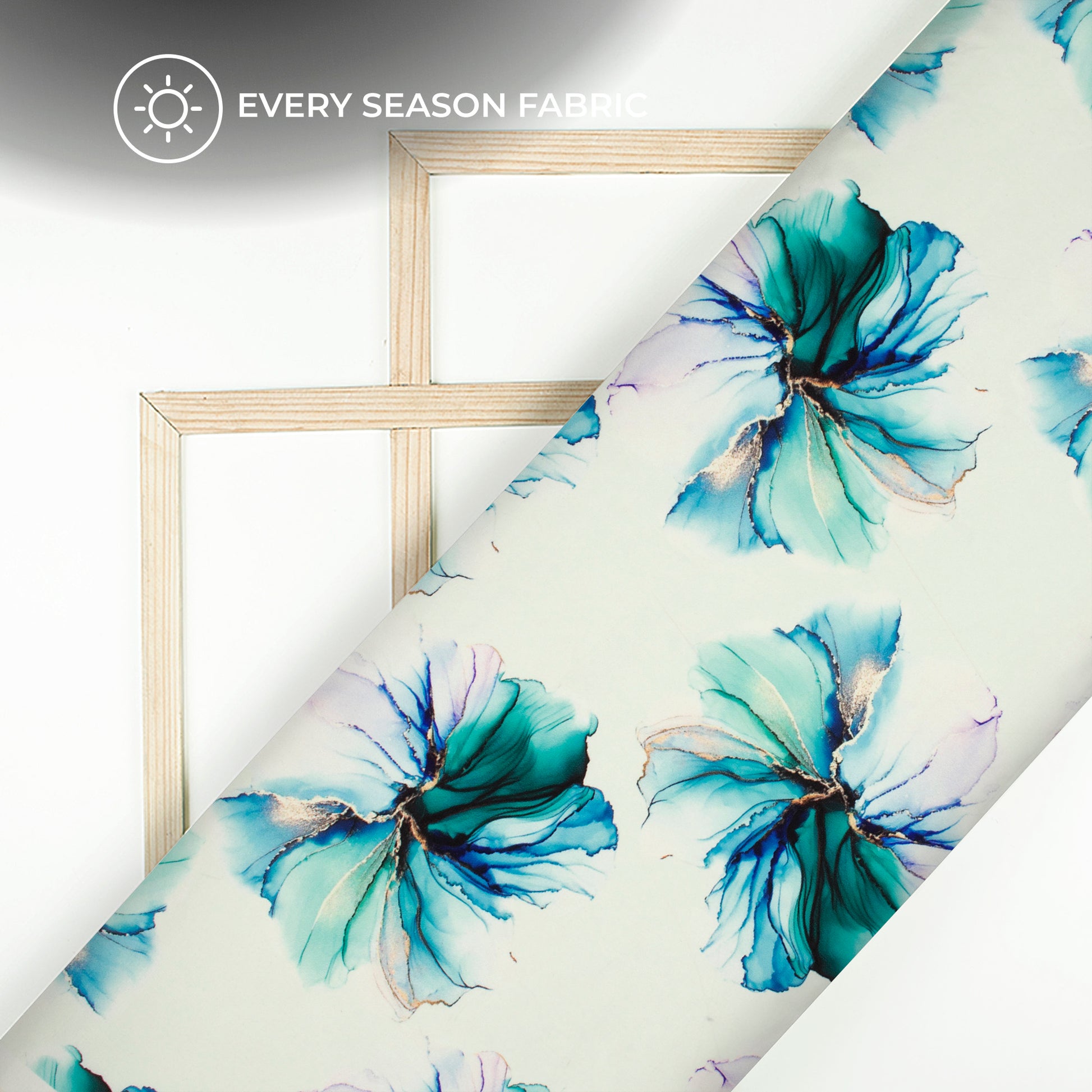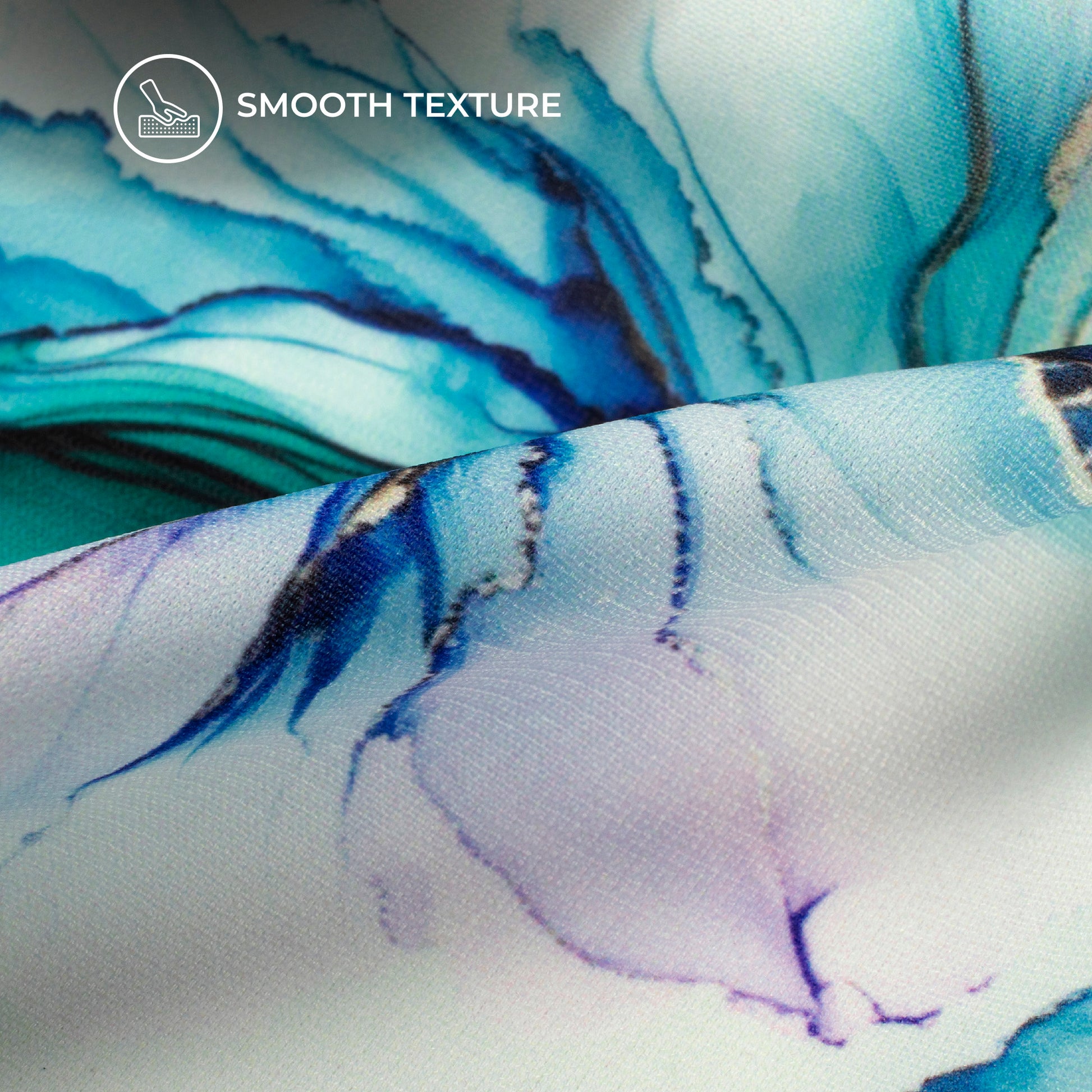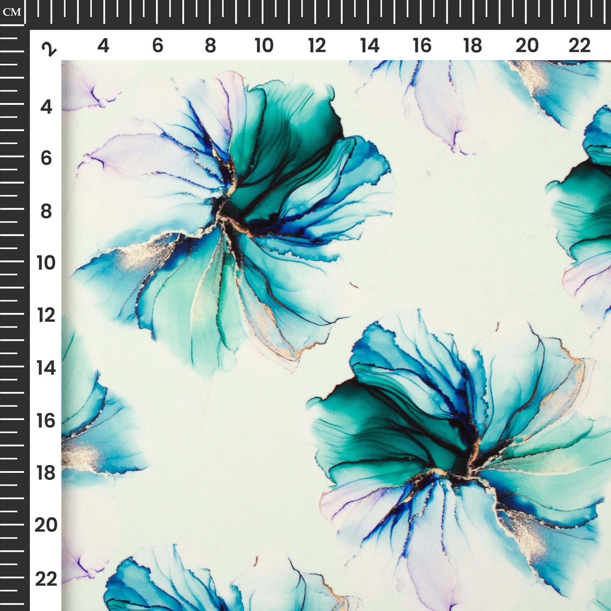 Attractive Ocean Blue Floral Digital Print BSY Crepe Fabric