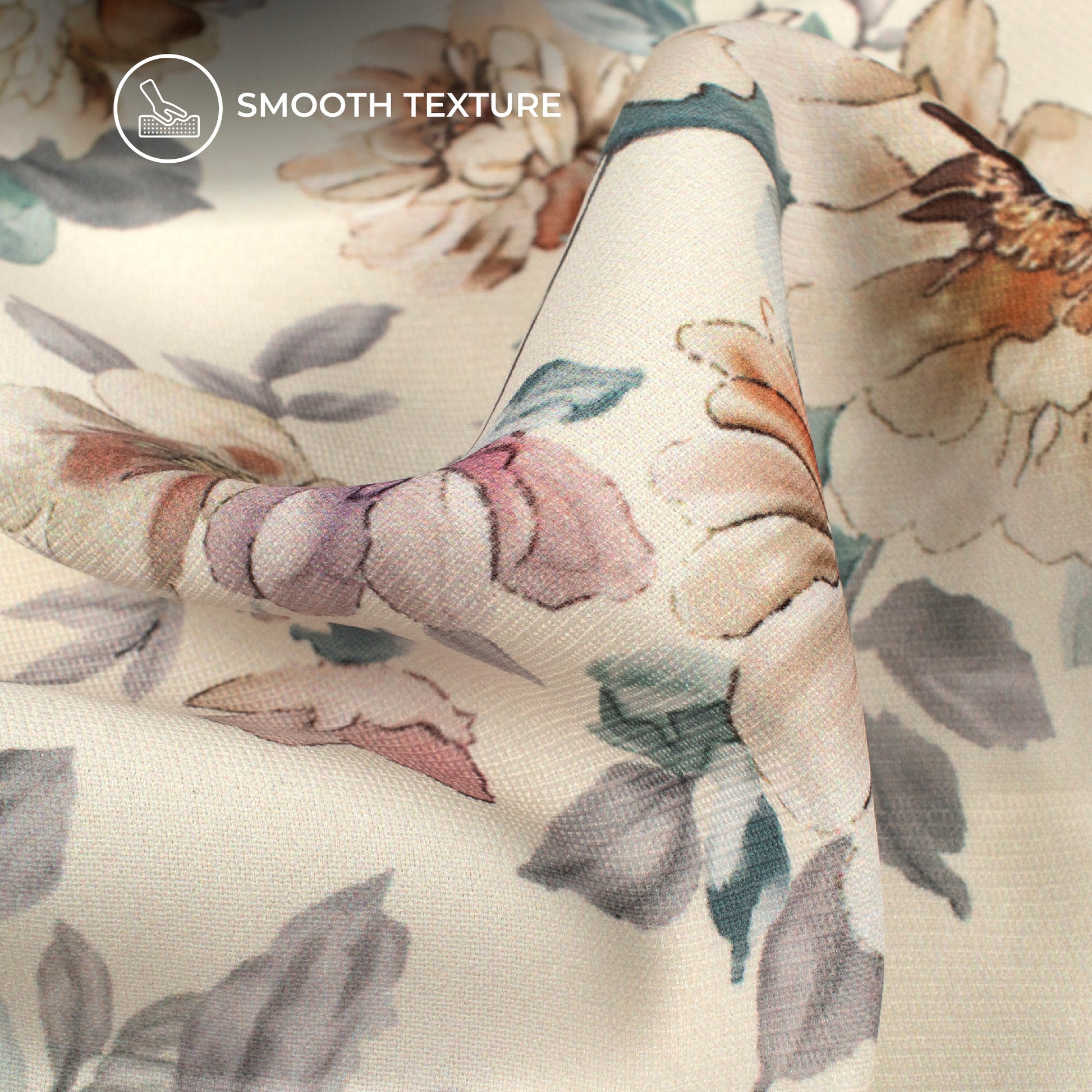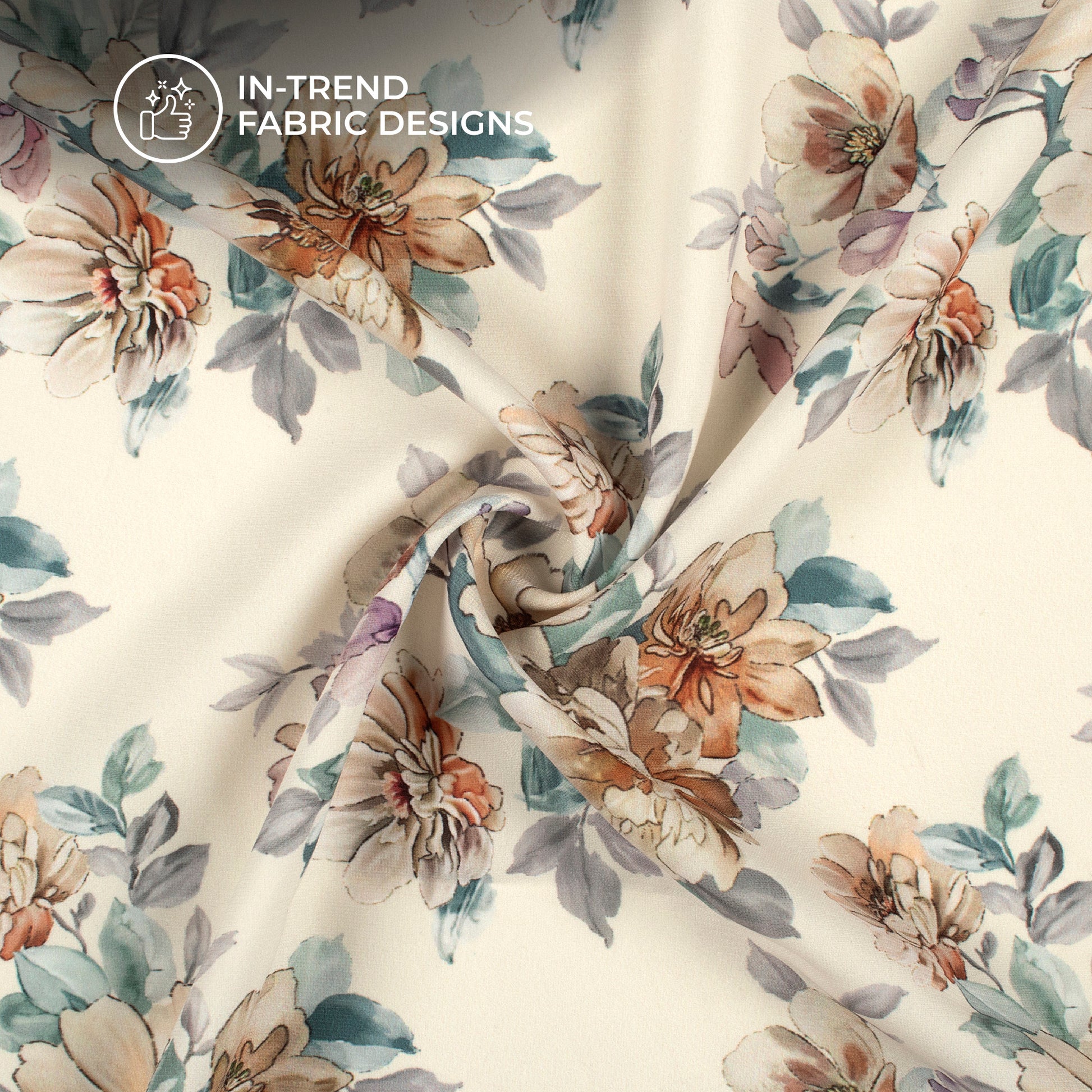 Attractive Off-White Floral Digital Print BSY Crepe Fabric