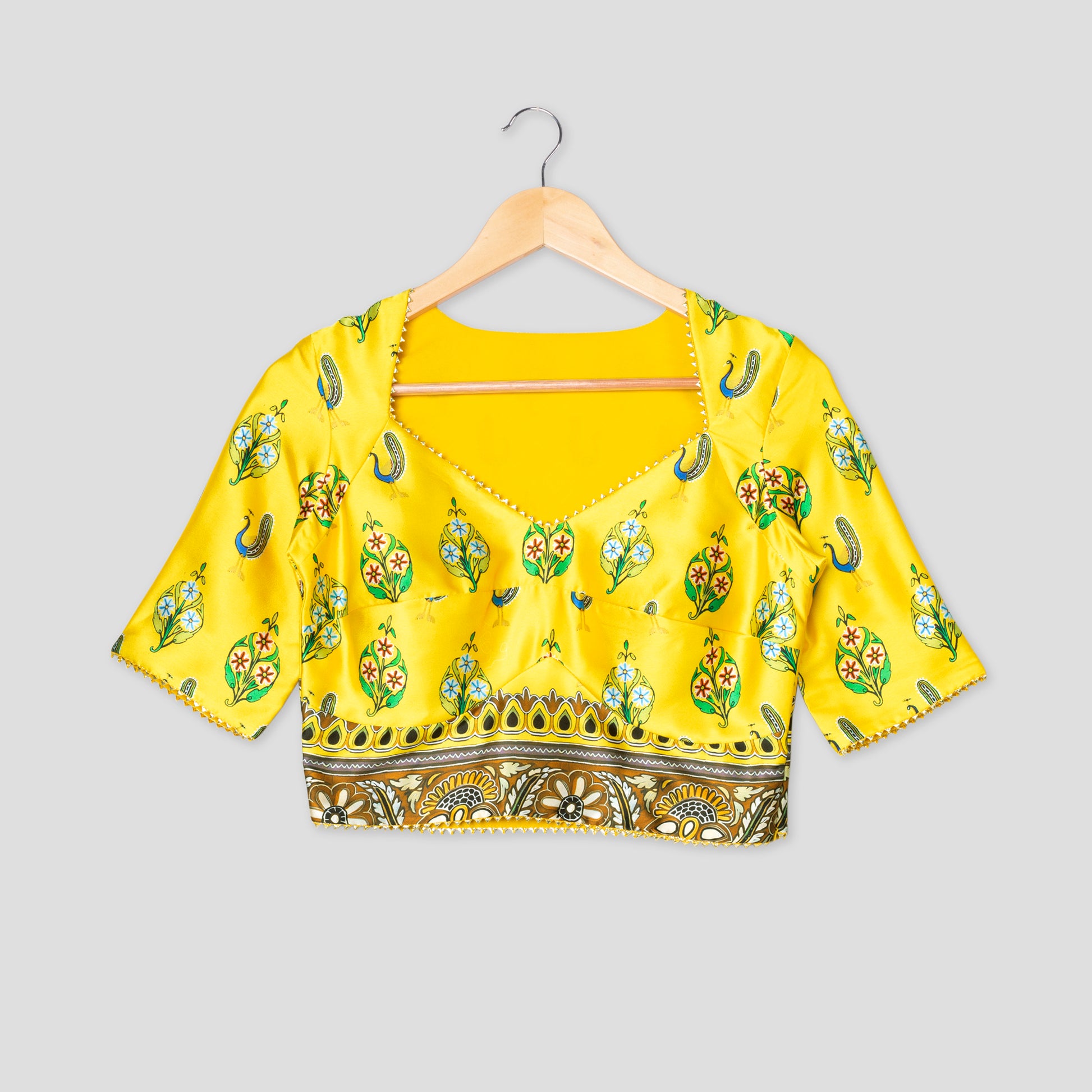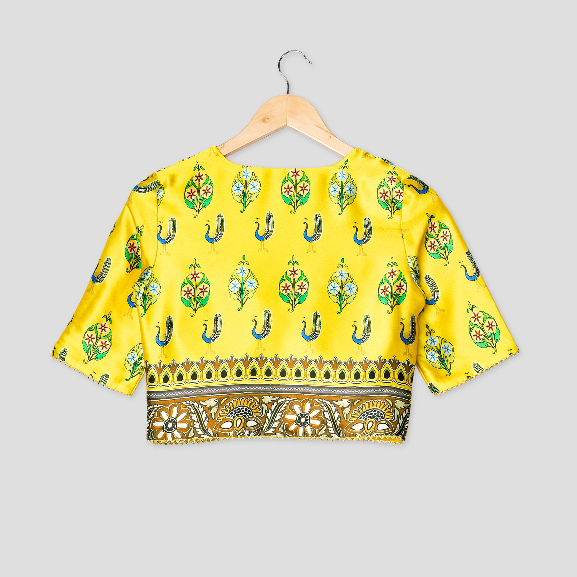 Authentic Indian Peacock Blouse With Triangle Lace Accents