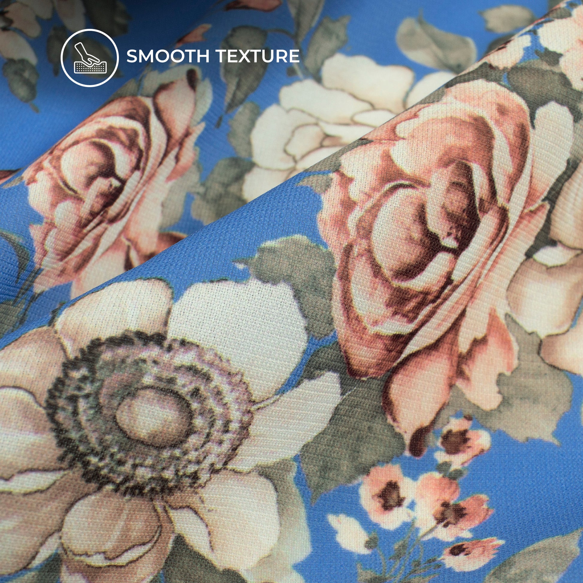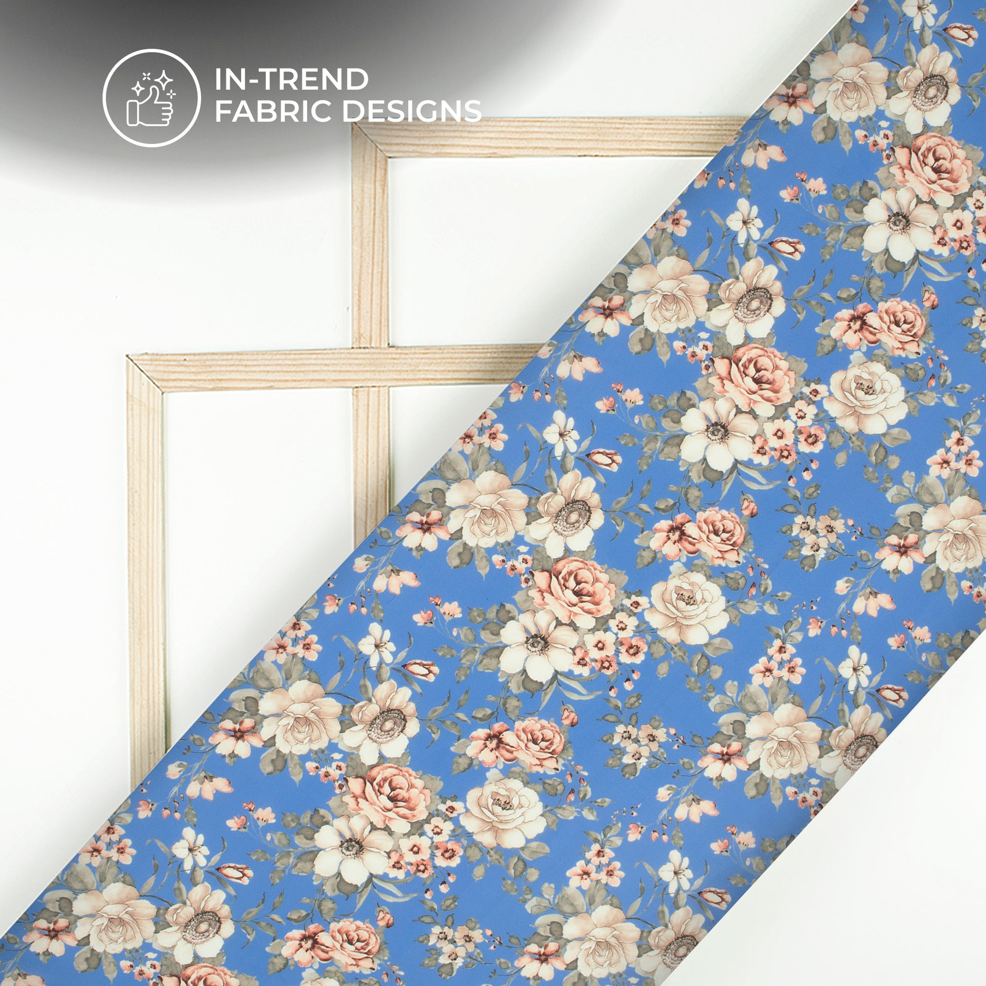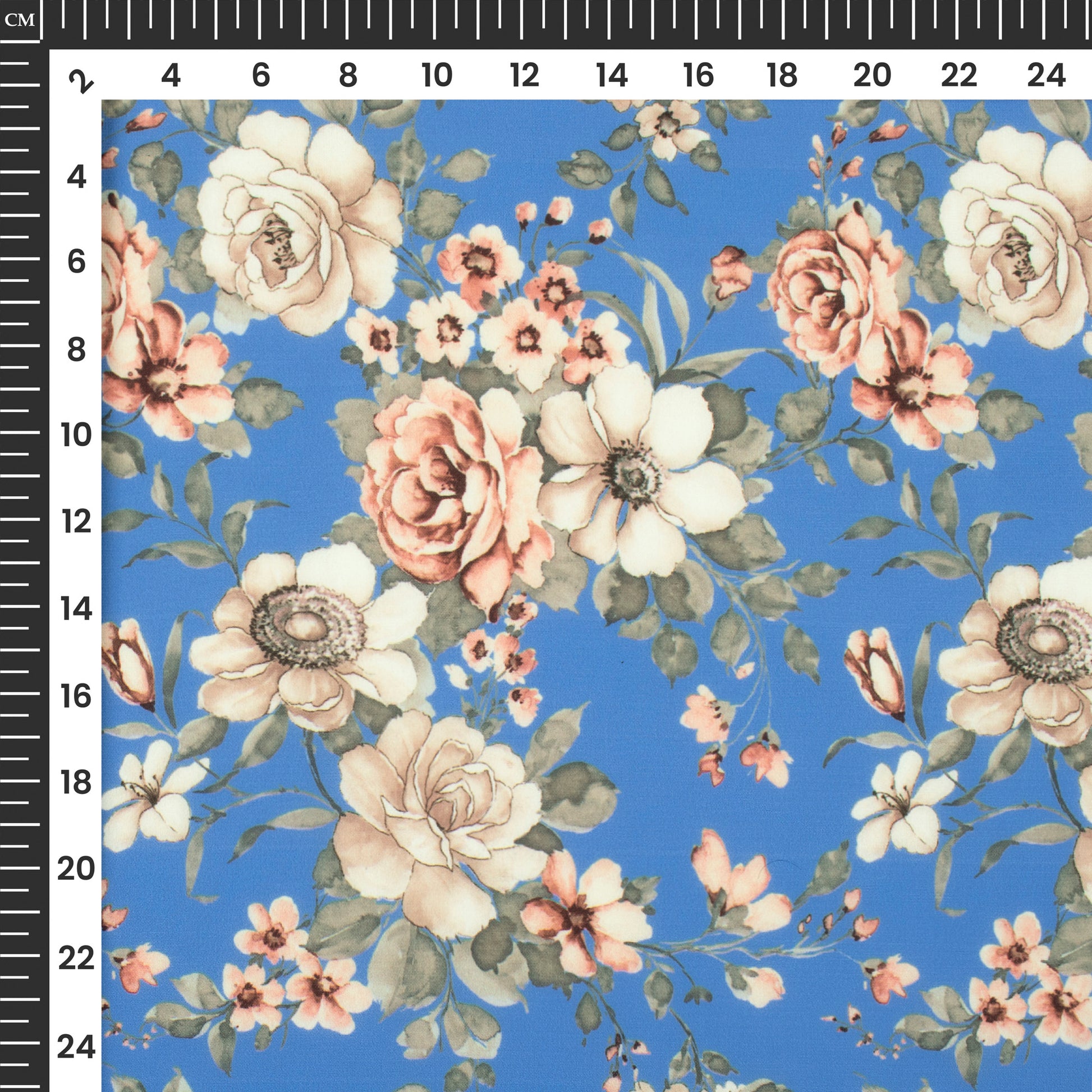 Azure Blue Floral Digital Print BSY Crepe Fabric