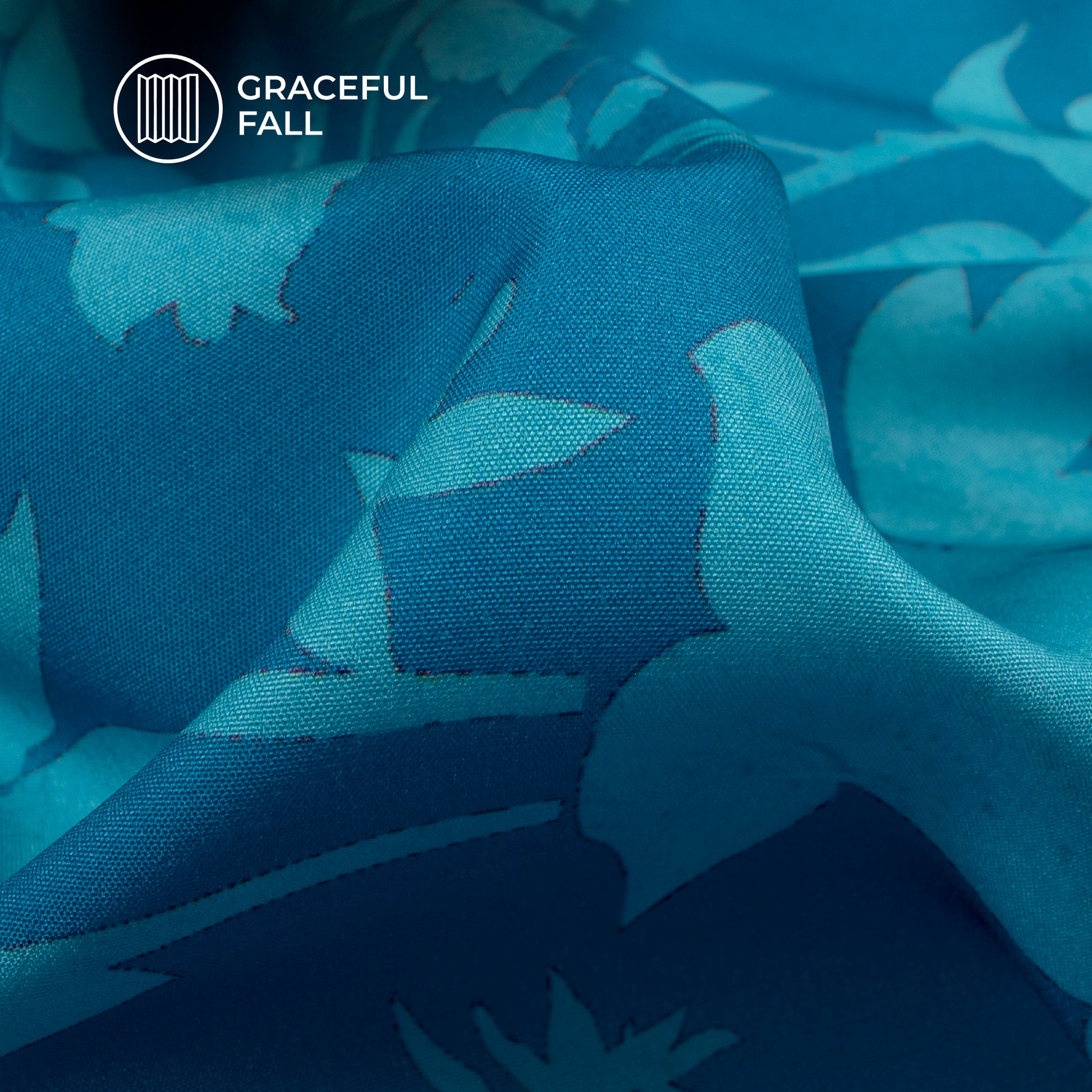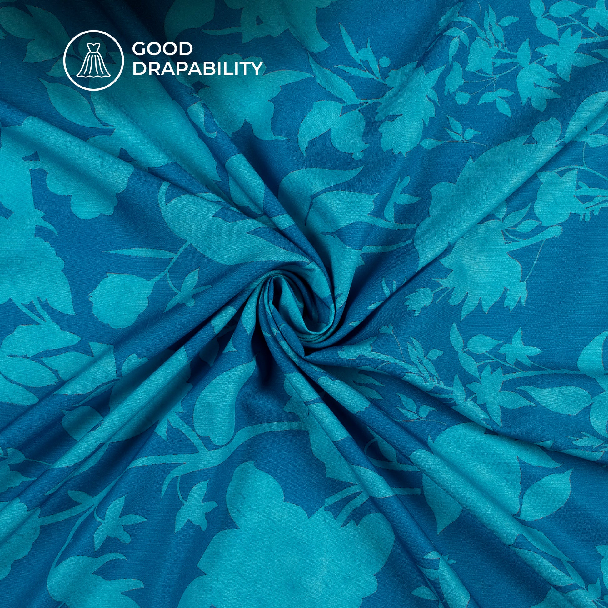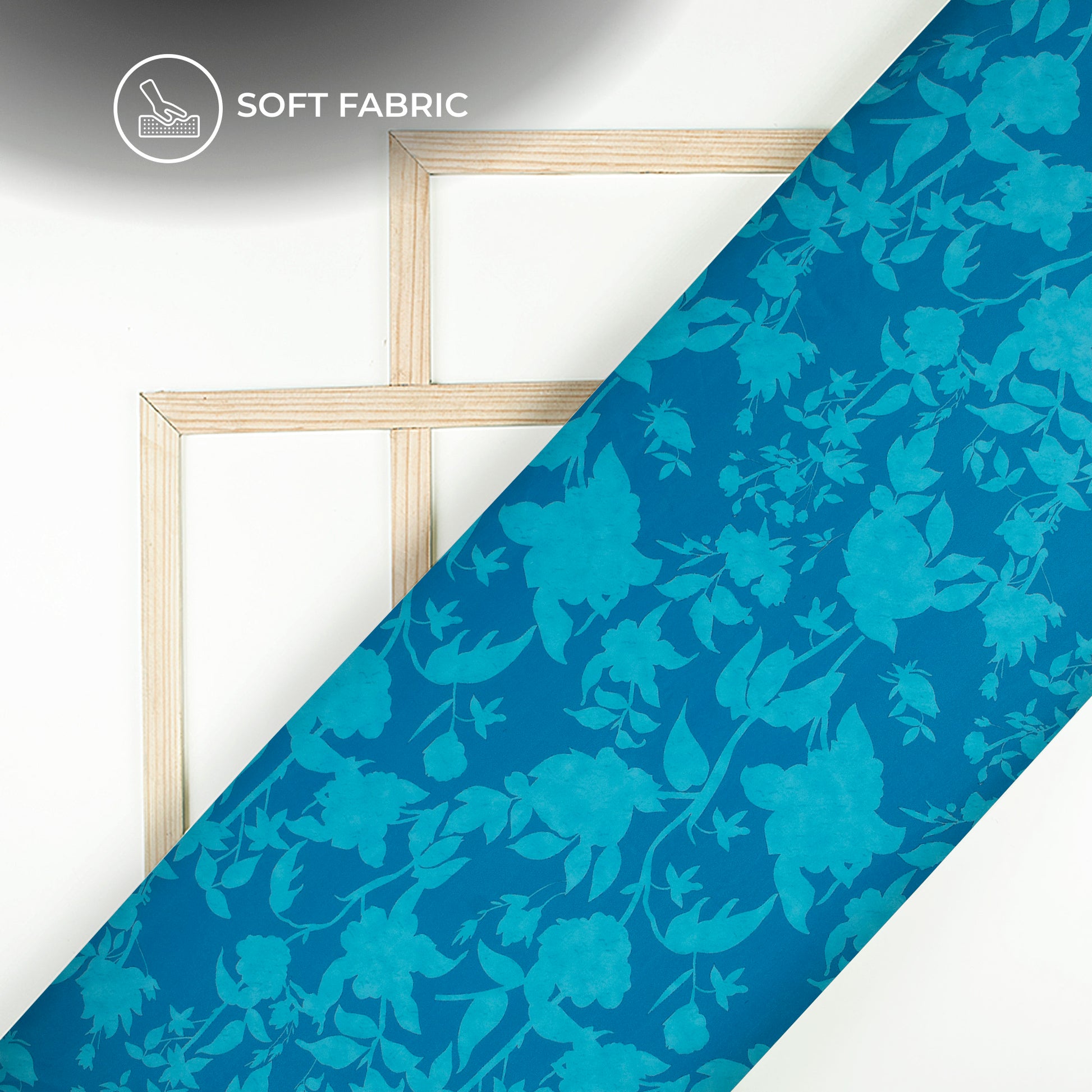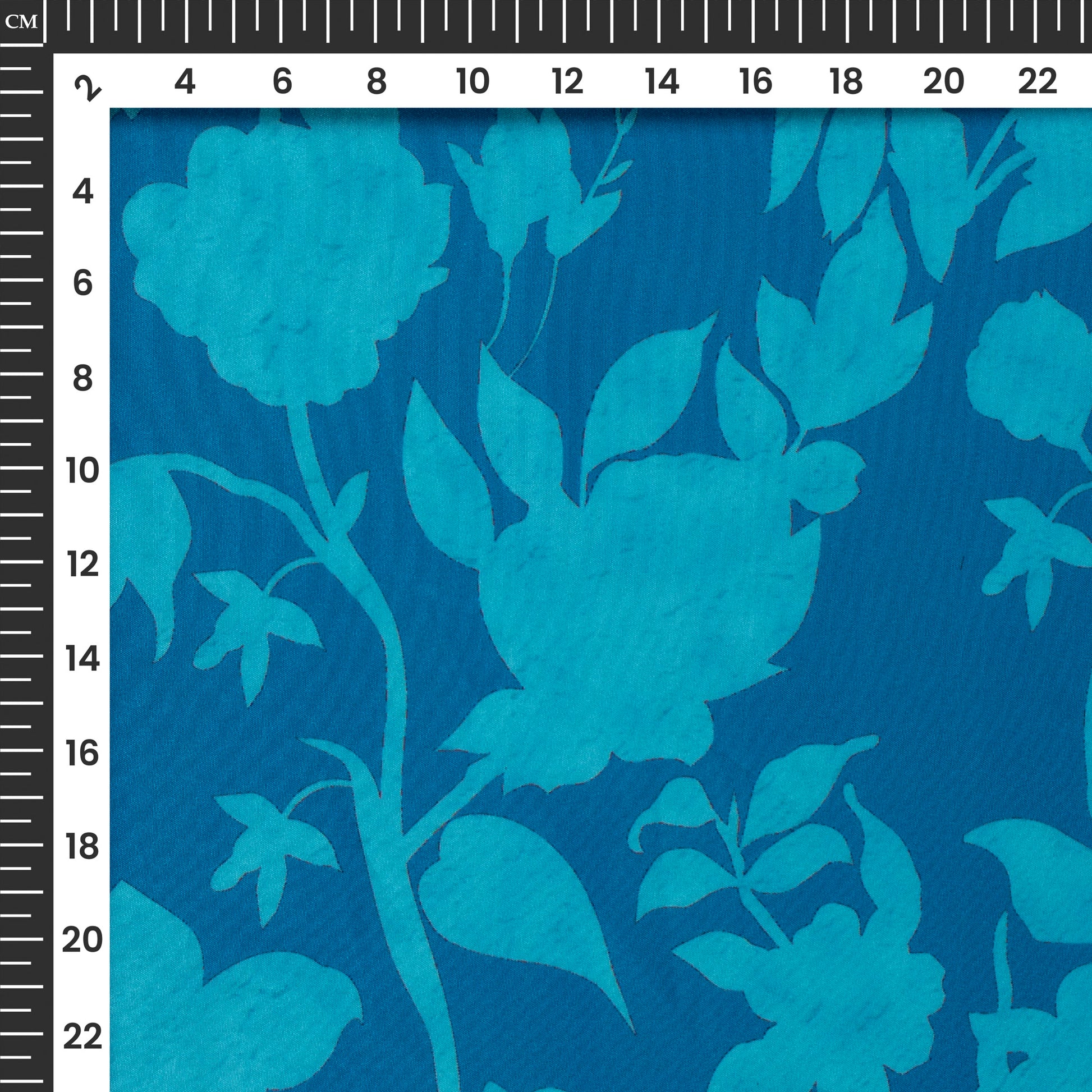 Azure Blue Floral Digital Print Butter Crepe Fabric