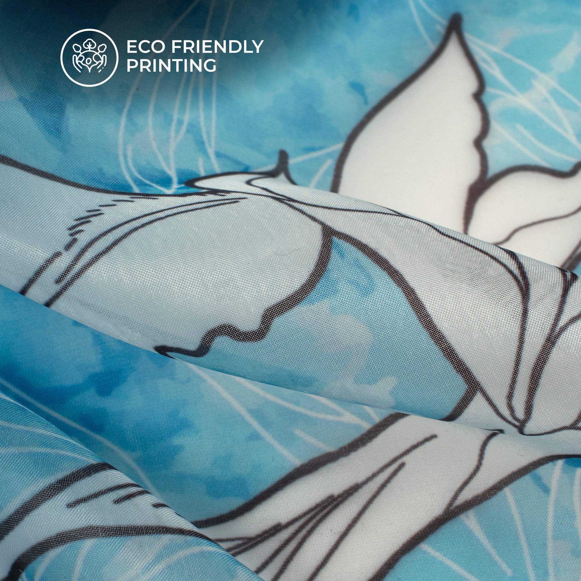 Azure Blue Floral Digital Print Organza Satin Fabric