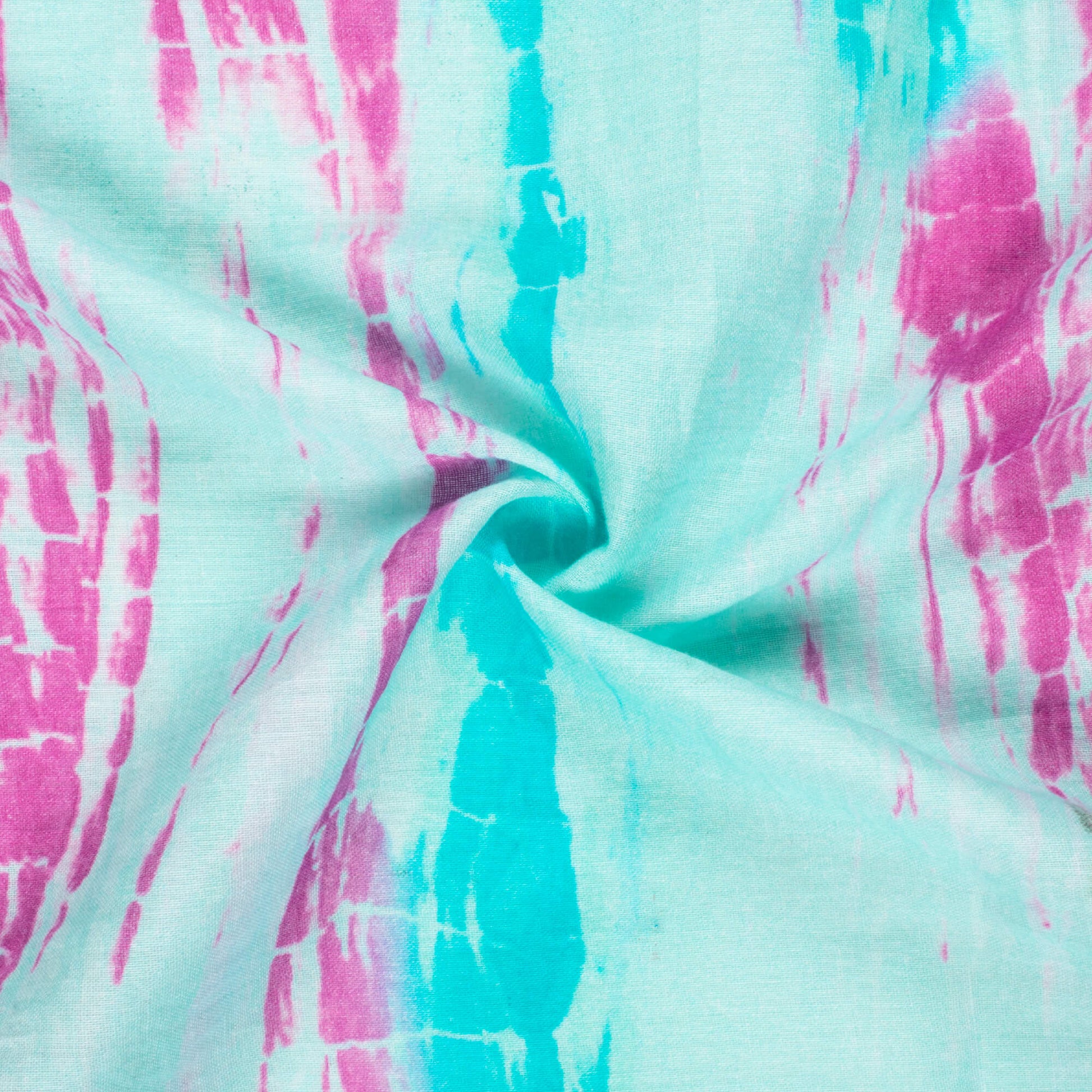 Baby Blue And Mulberry Purple Shiiborii Pattern Digital Print Pure Cotton Mulmul Fabric