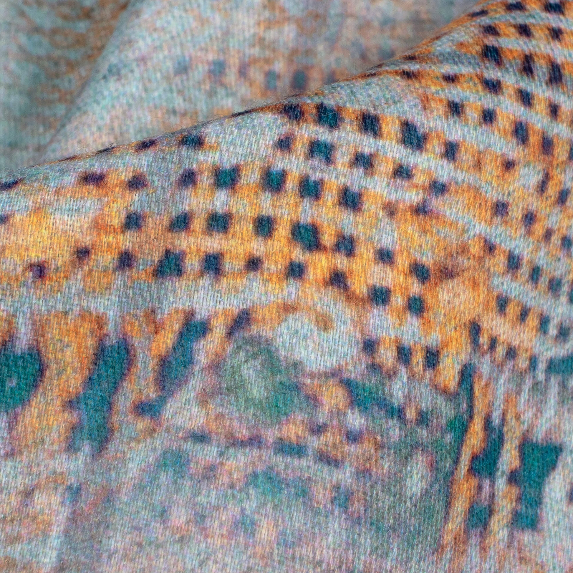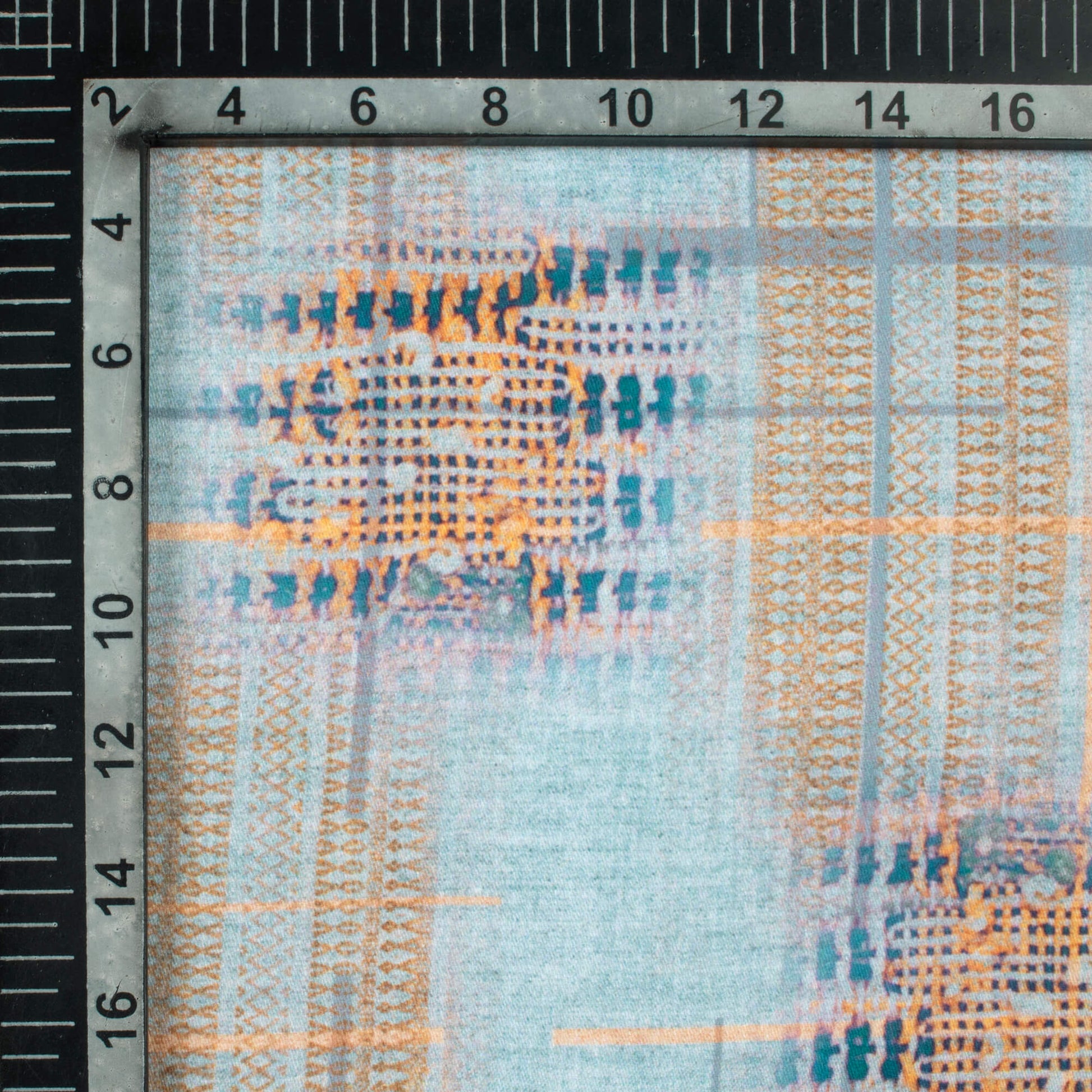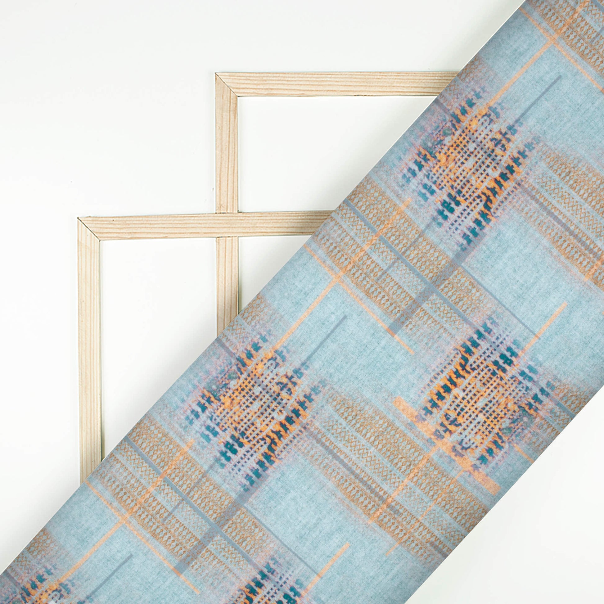 Baby Blue And Orange Abstract Pattern Digital Print Poly Glazed Cotton Fabric