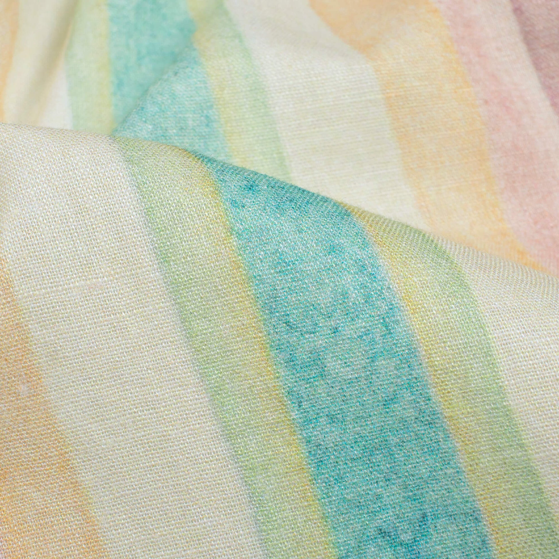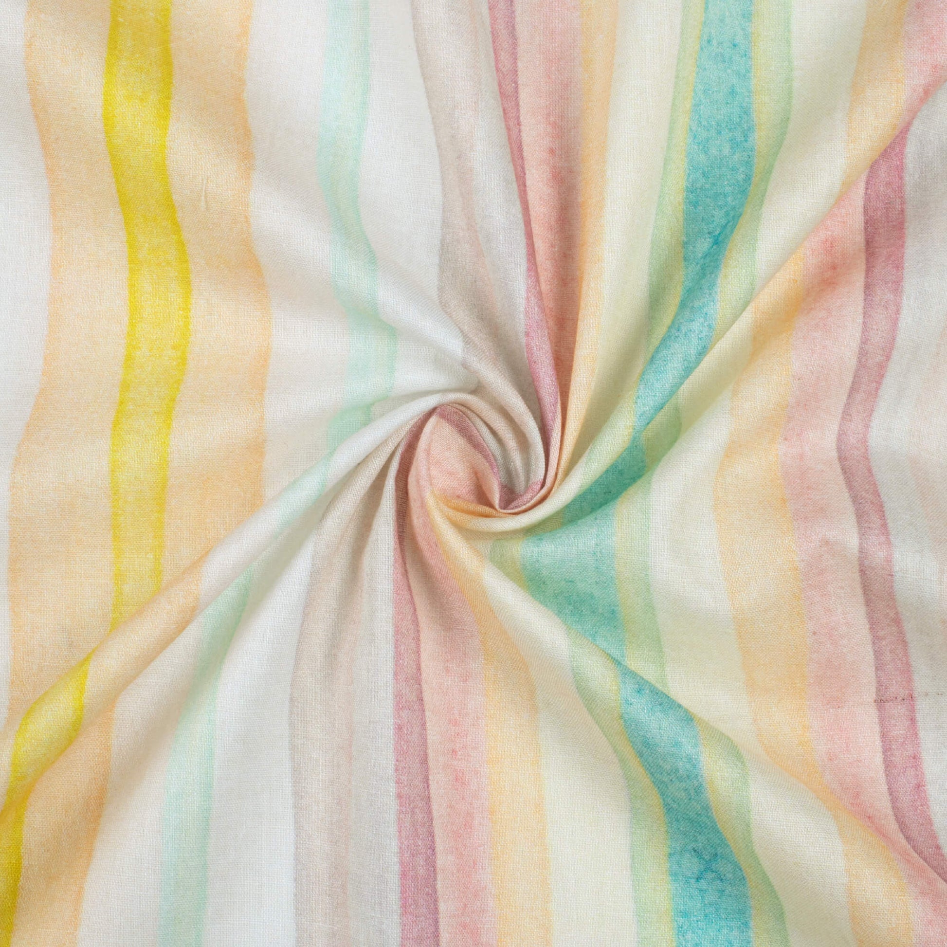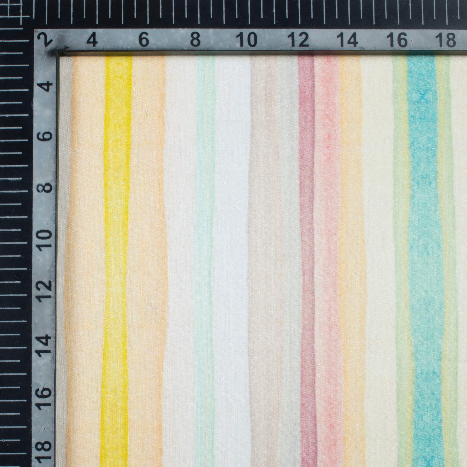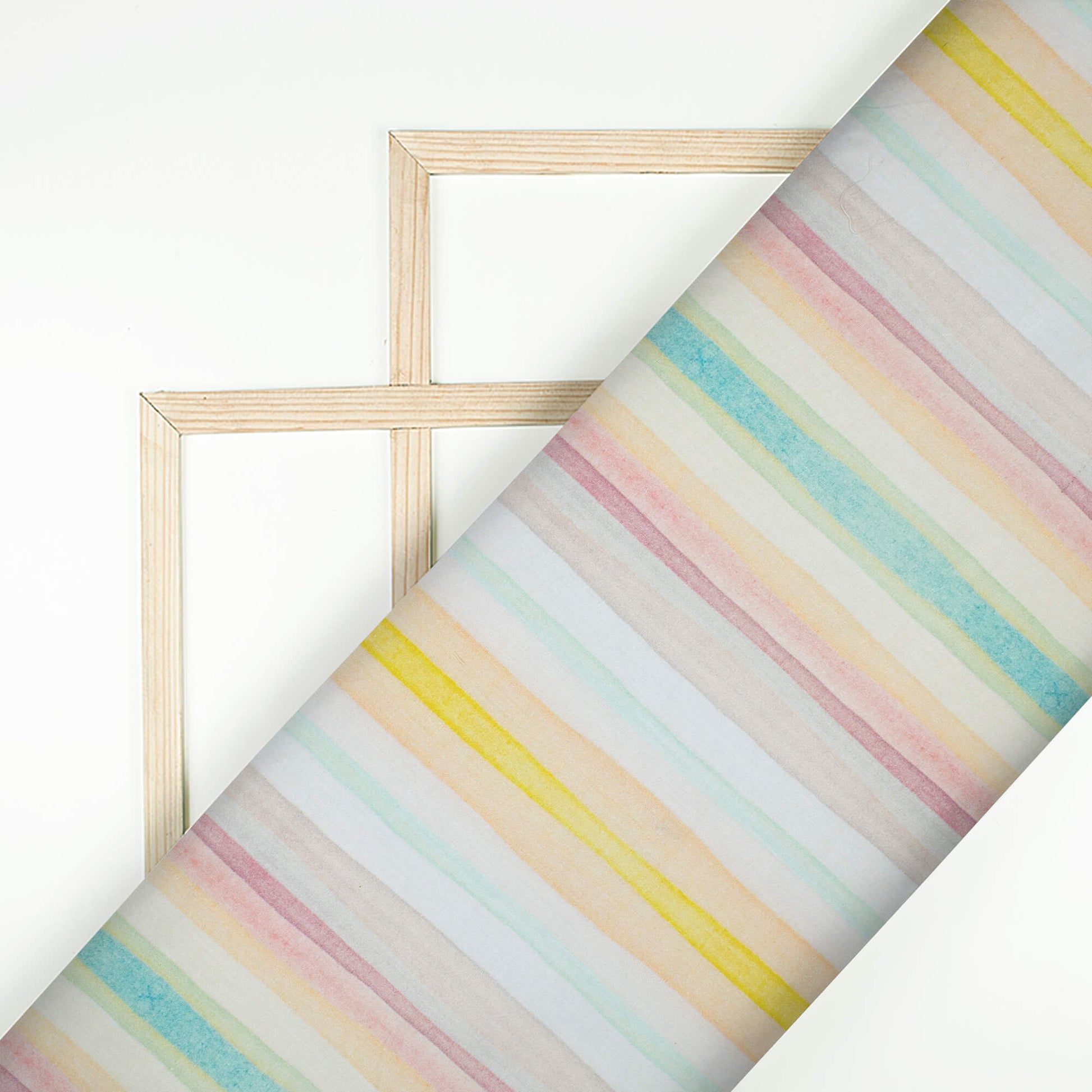 Baby Blue And Peach Stripes Pattern Digital Print Cotton Cambric Fabric