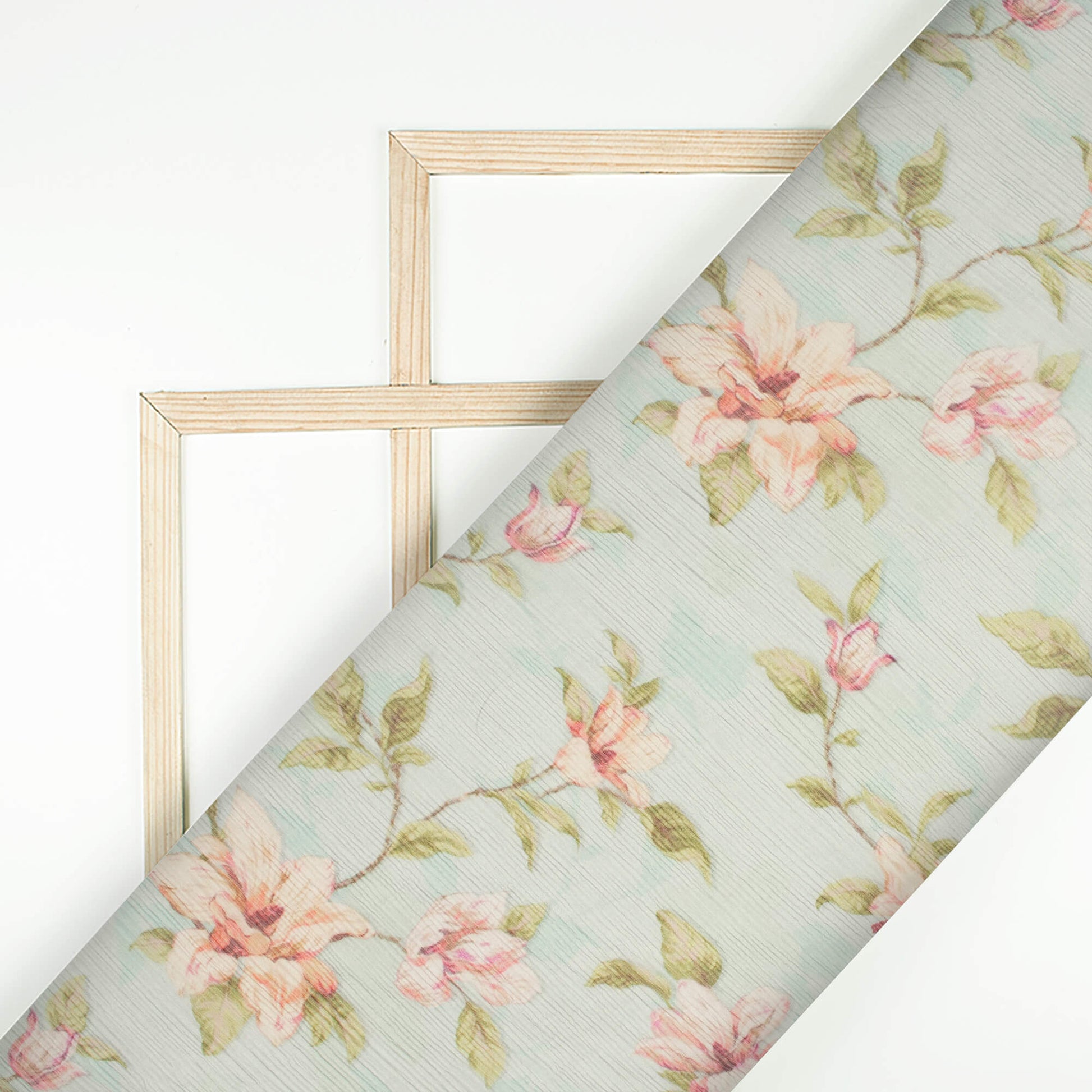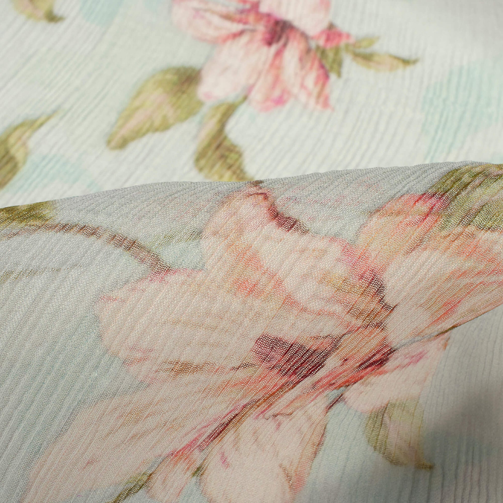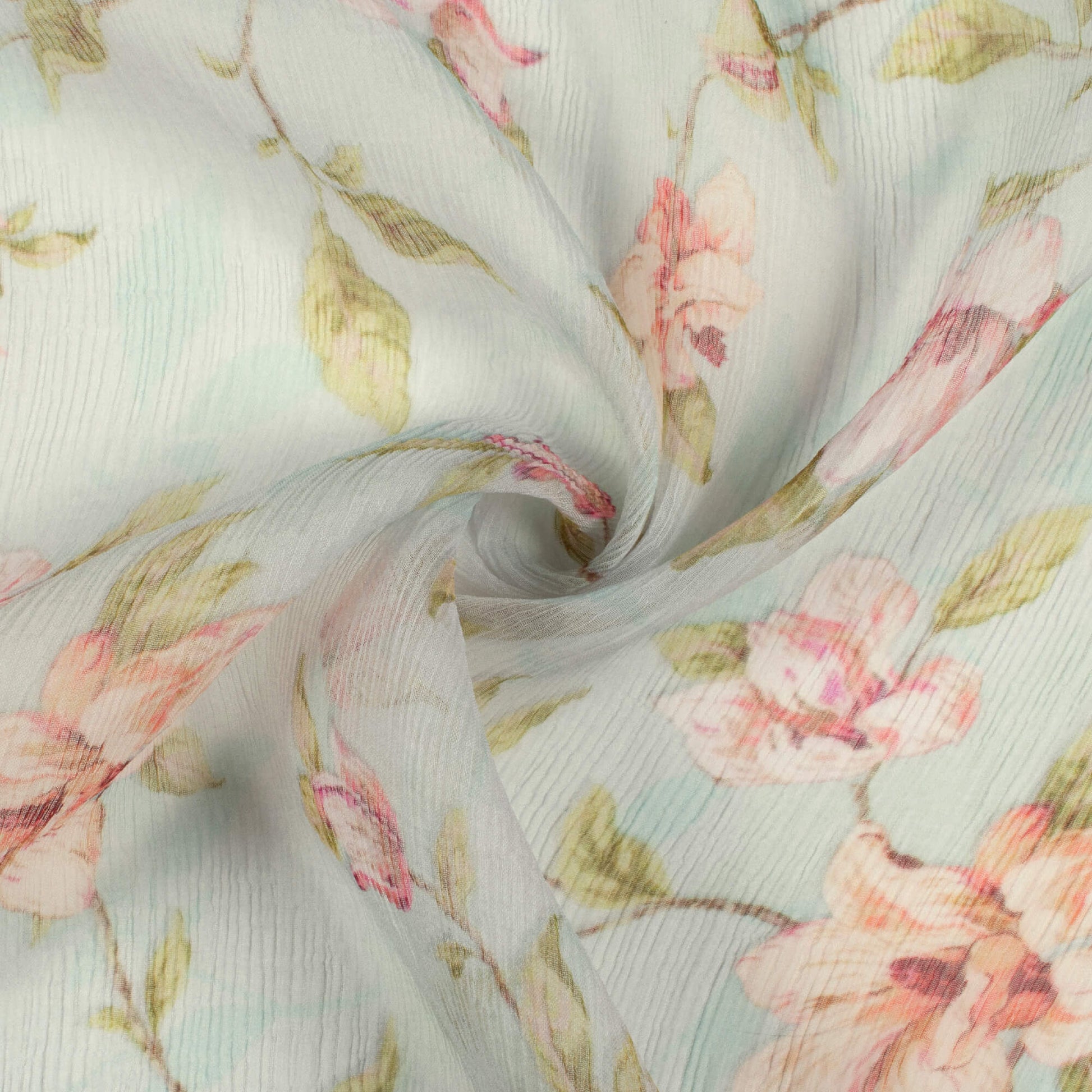 Baby Blue And Pink Floral Pattern Digital Print Bemberg Chiffon Fabric