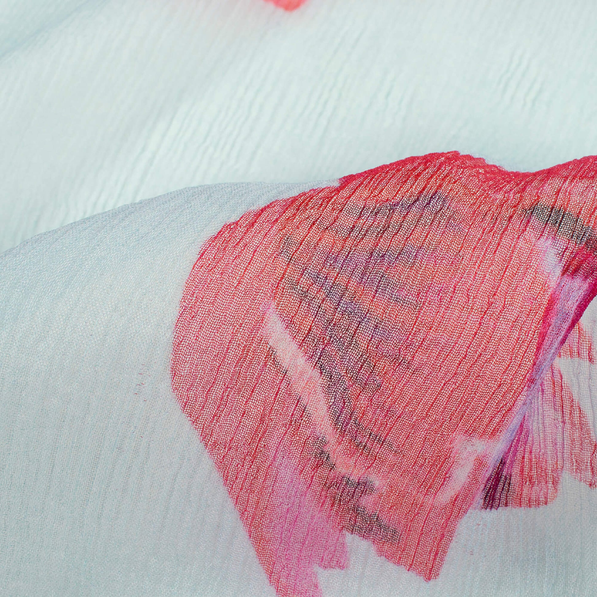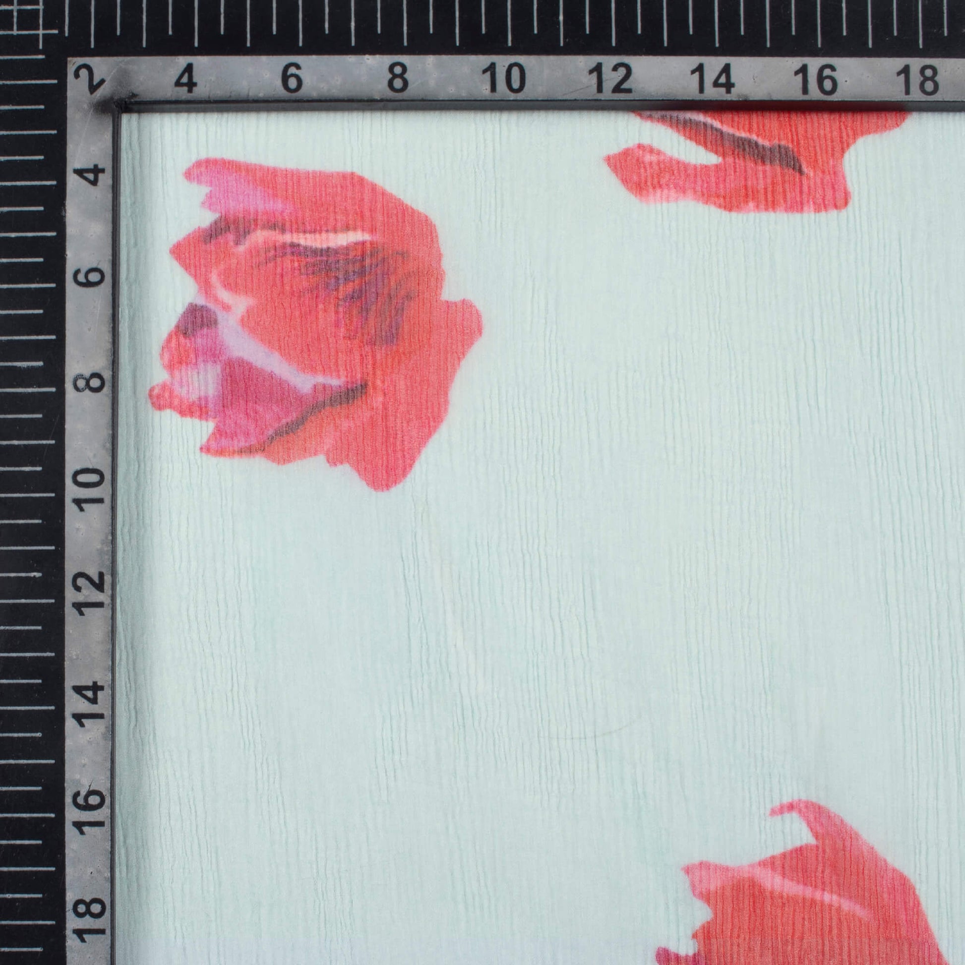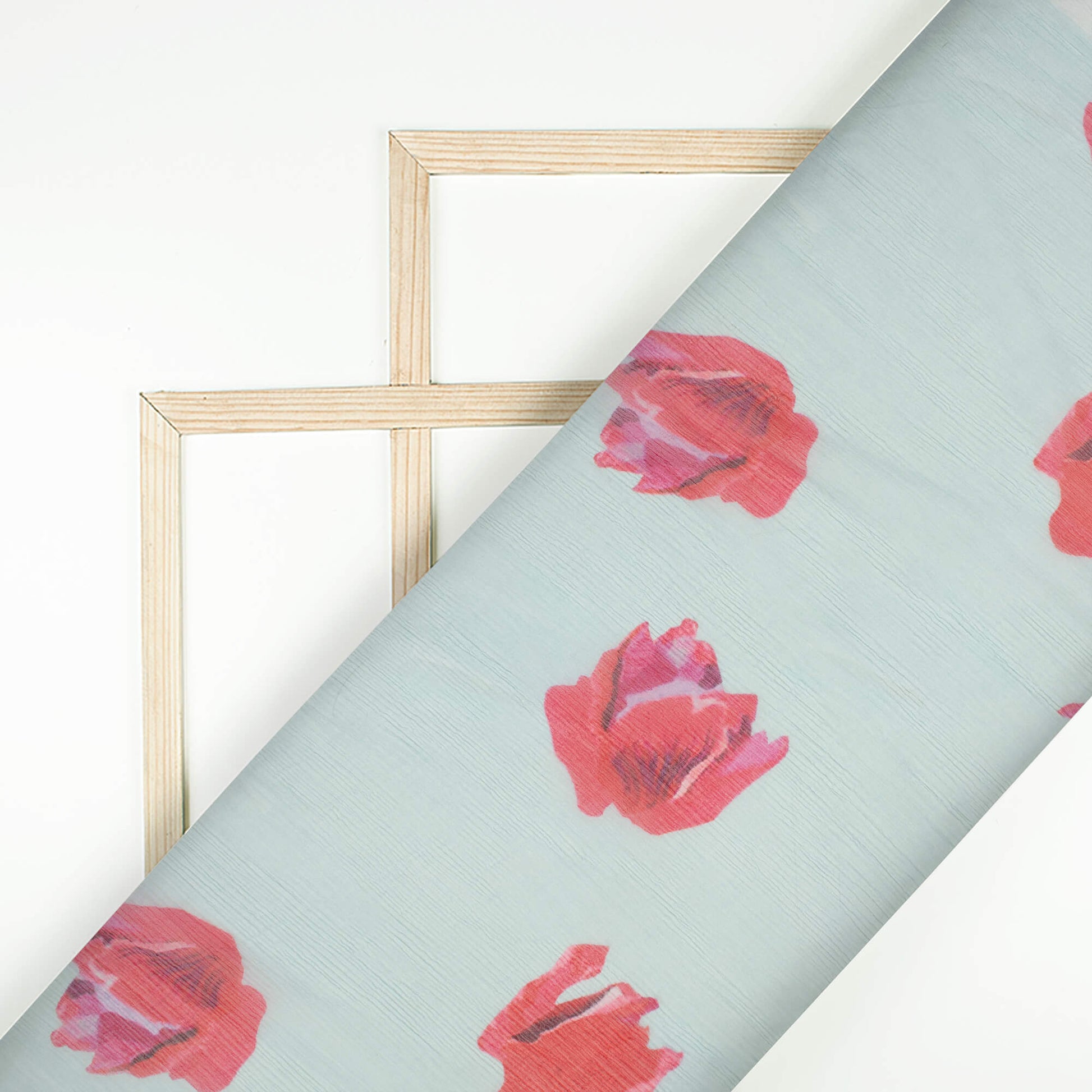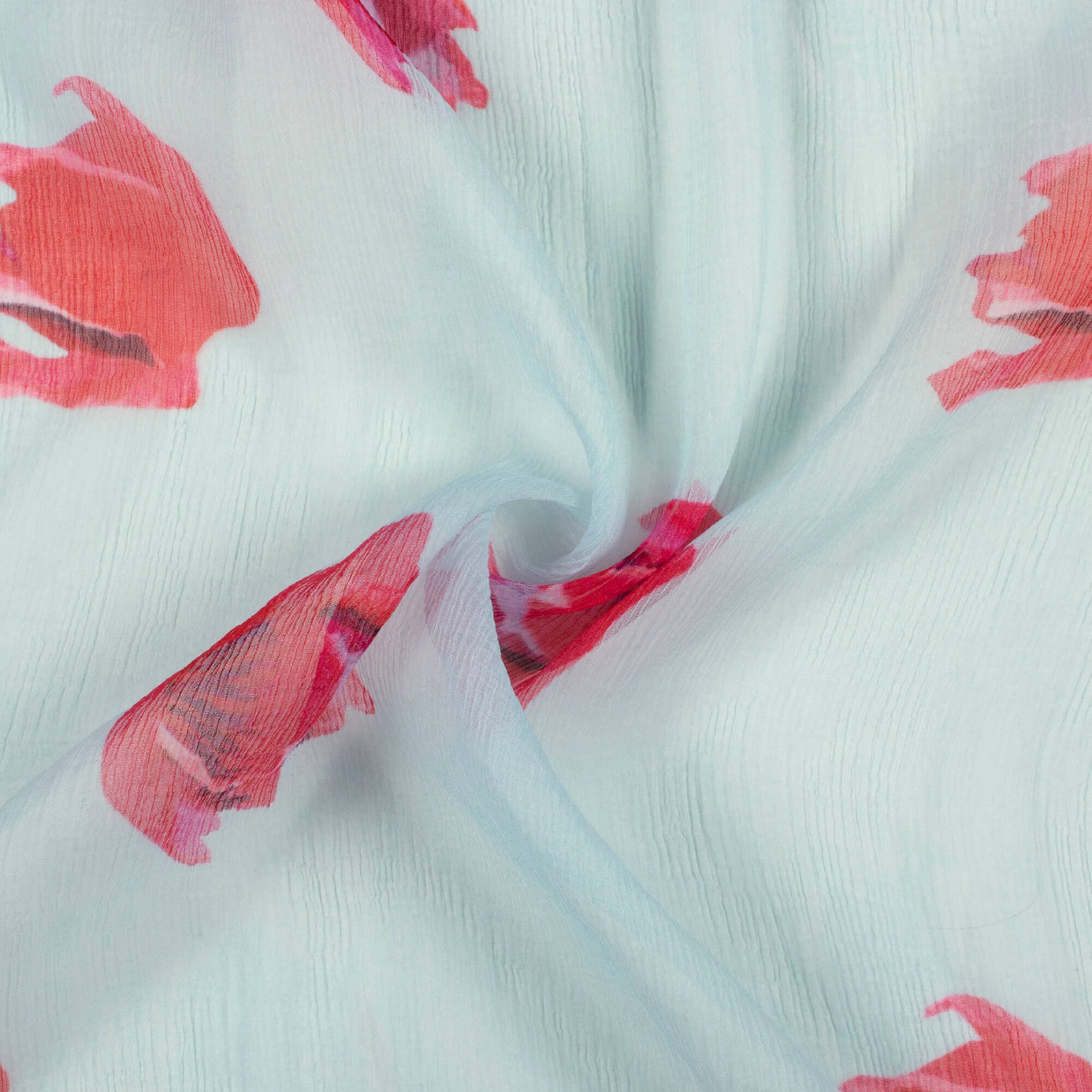 Baby Blue And Red Floral Pattern Digital Print Bemberg Chiffon Fabric