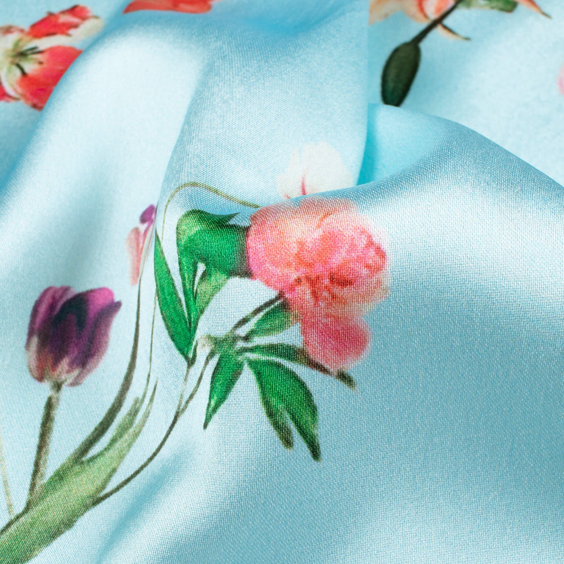 Baby Blue And Red Floral Pattern Digital Print Japan Satin Fabric