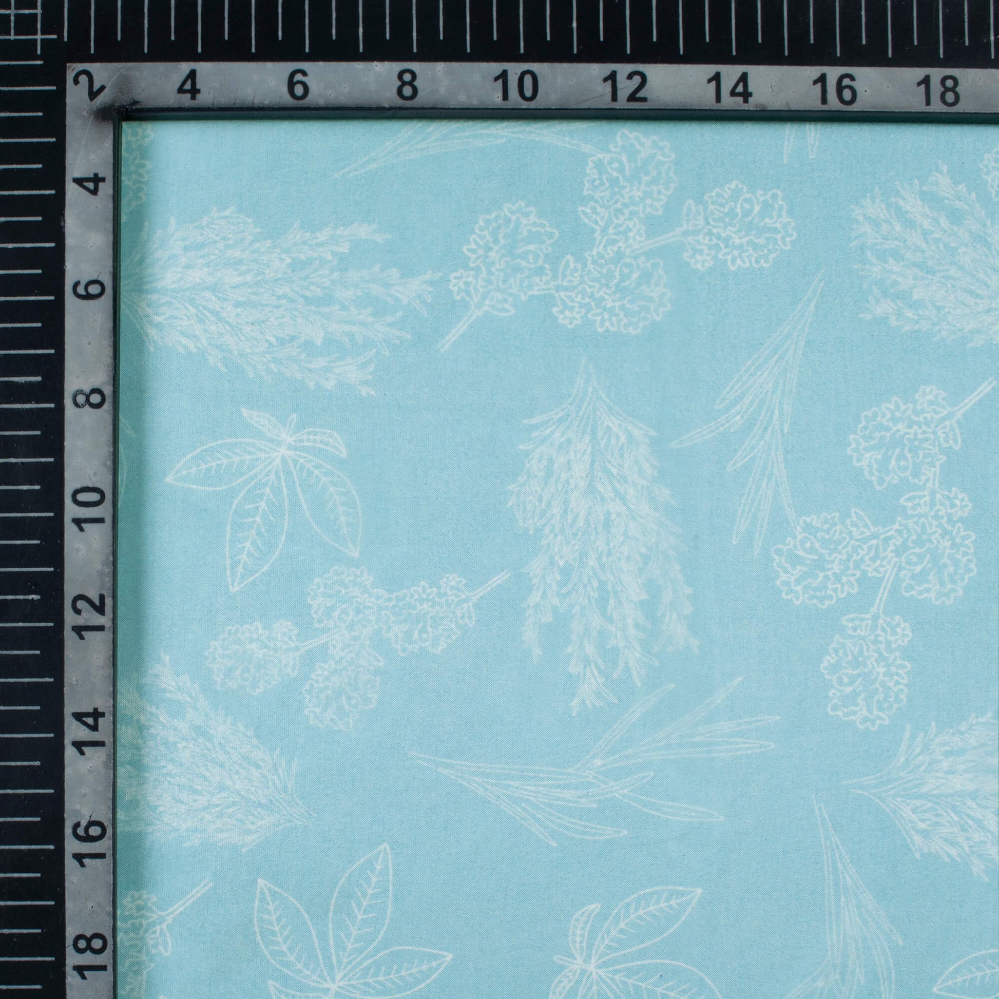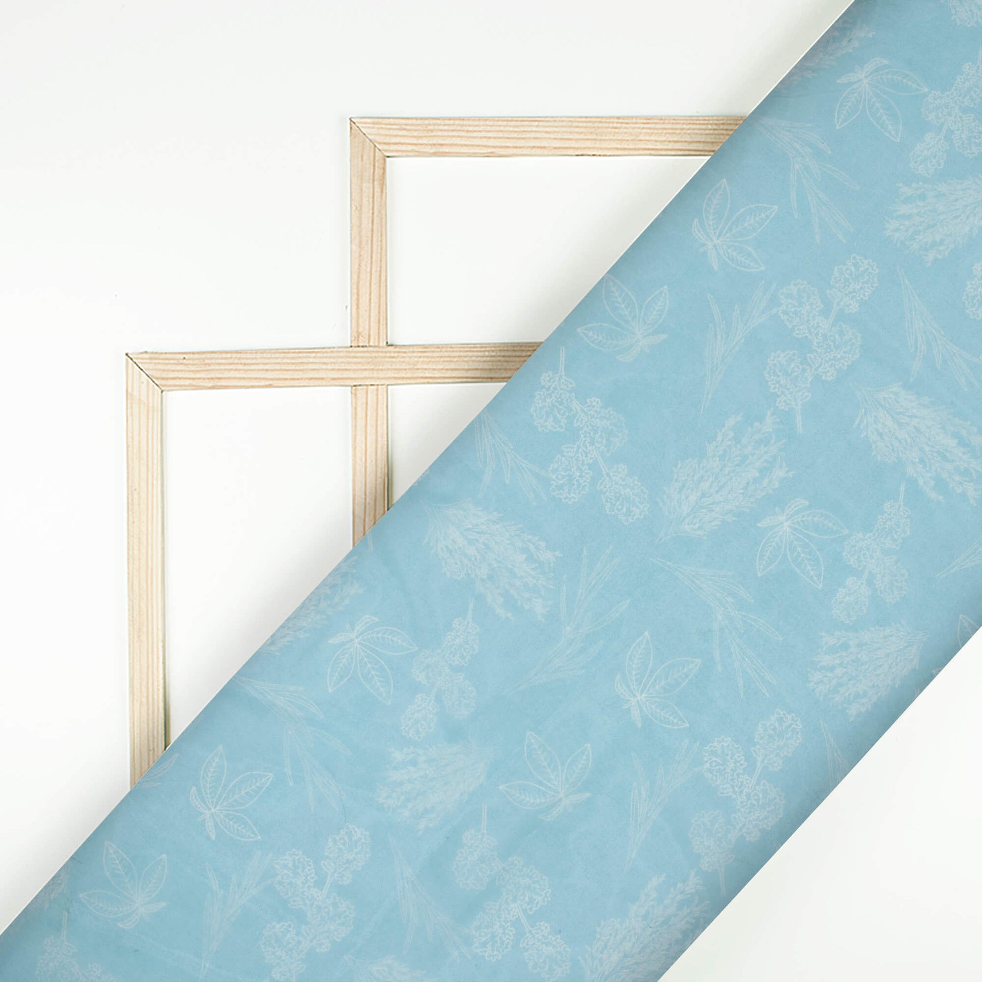 Baby Blue And White Floral Pattern Digital Print Organza Satin Fabric