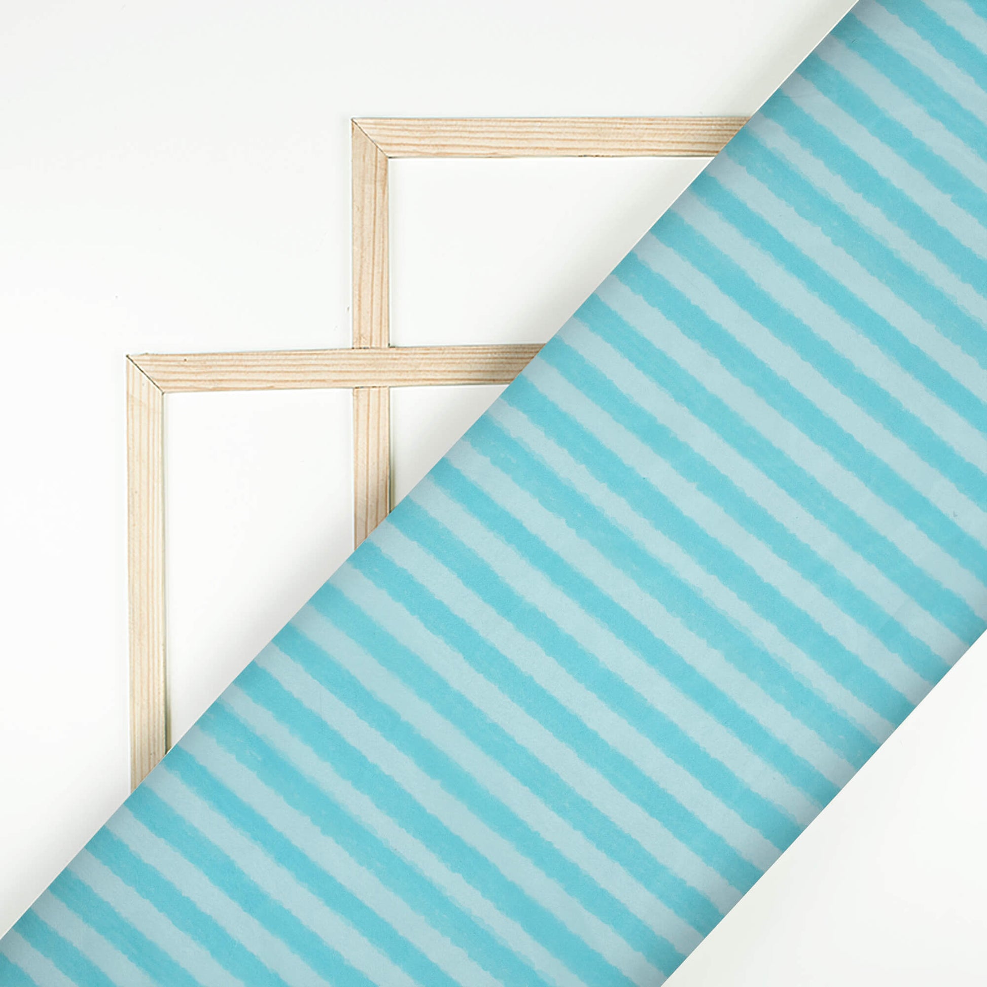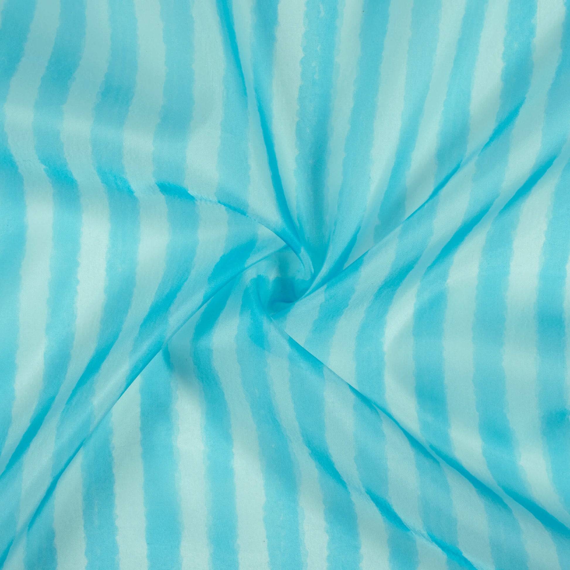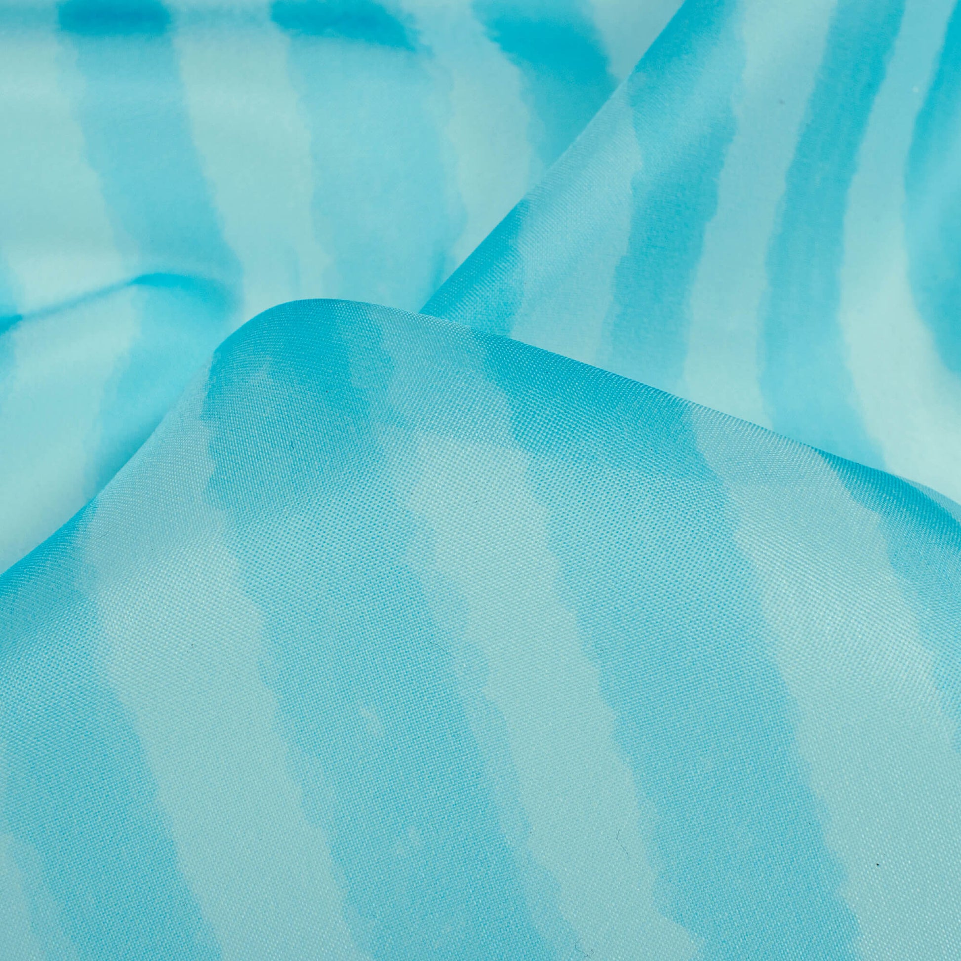 Baby Blue And White Stripes Pattern Digital Print Organza Satin Fabric