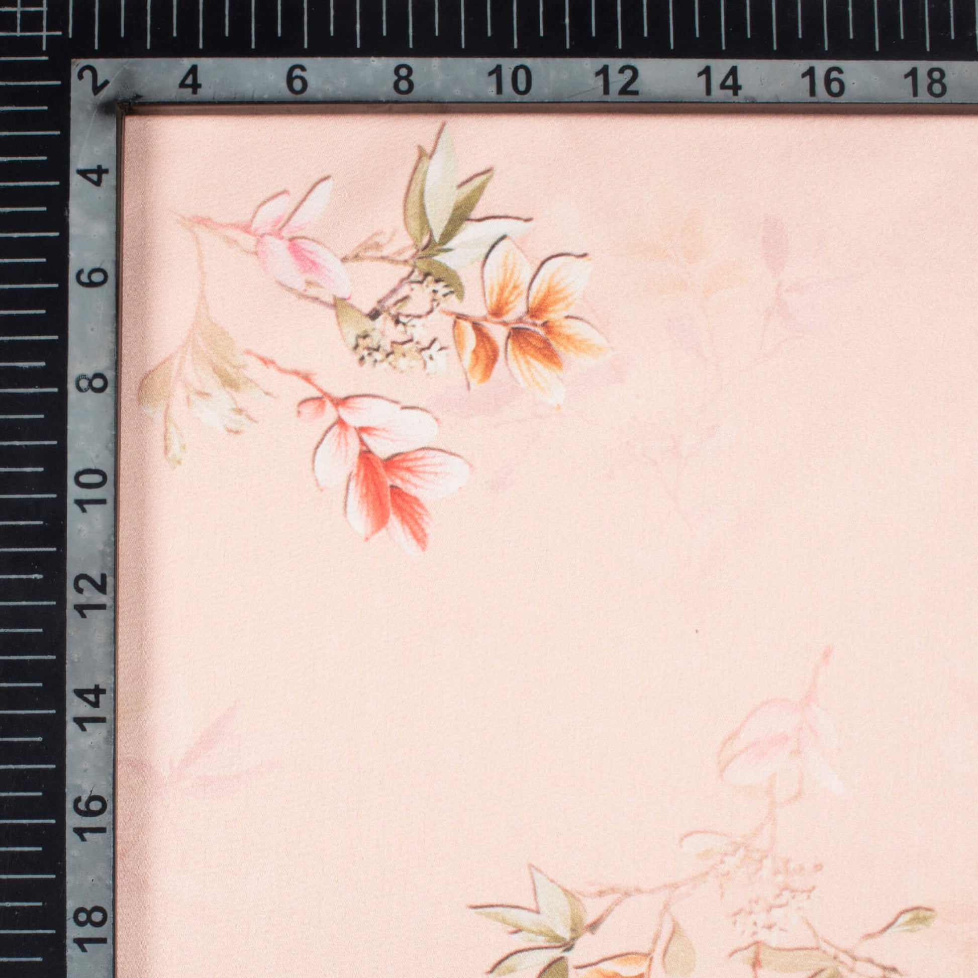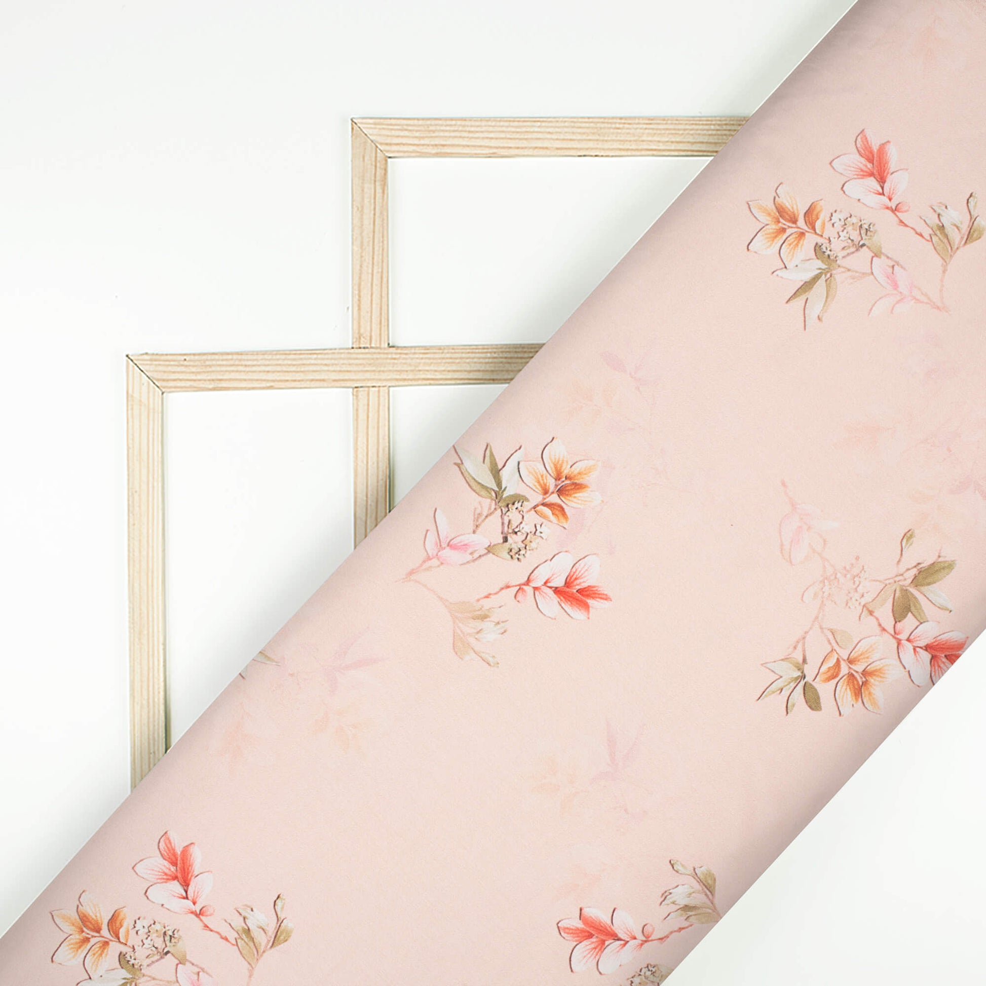 Baby Pink And Brown Floral Pattern Digital Print Japan Satin Fabric