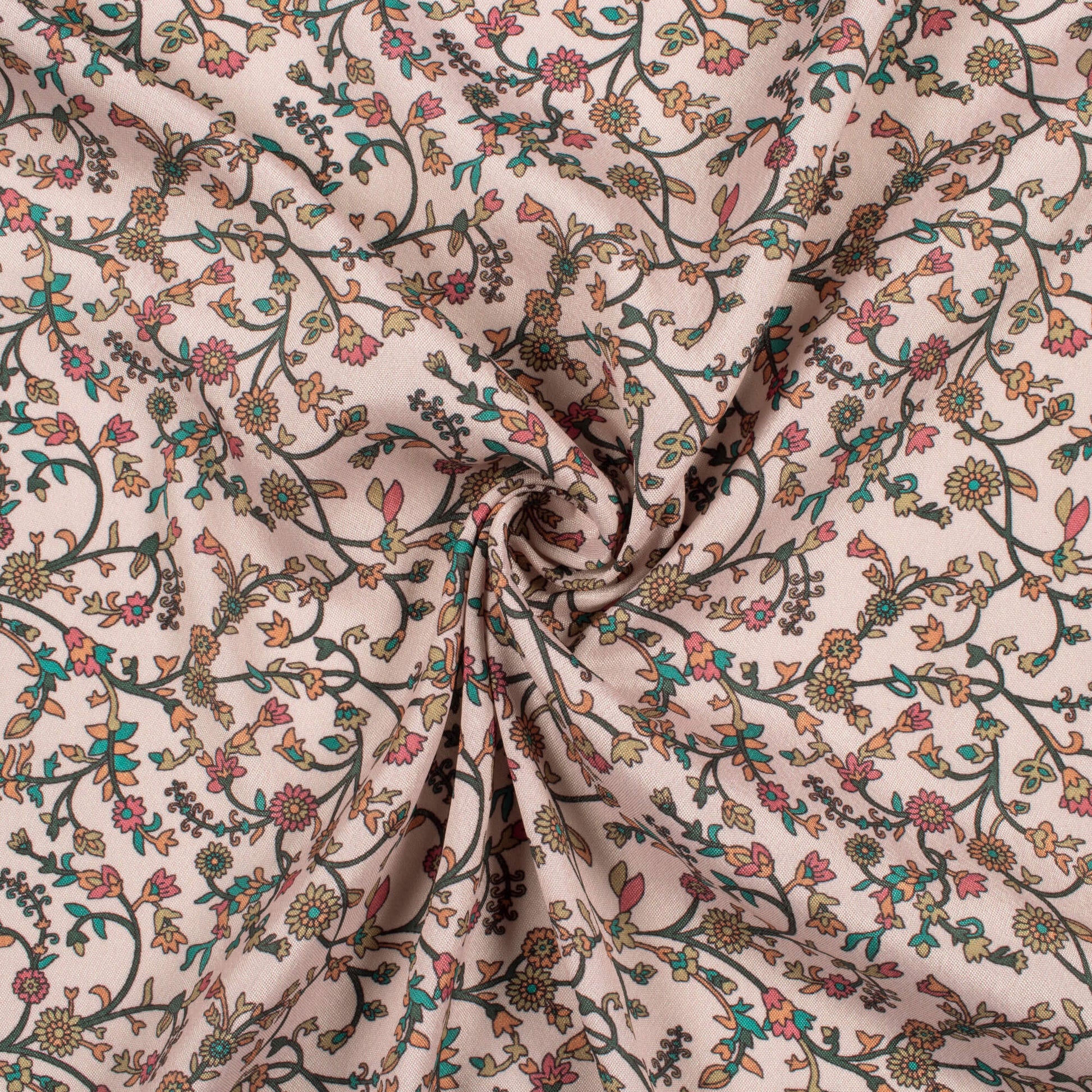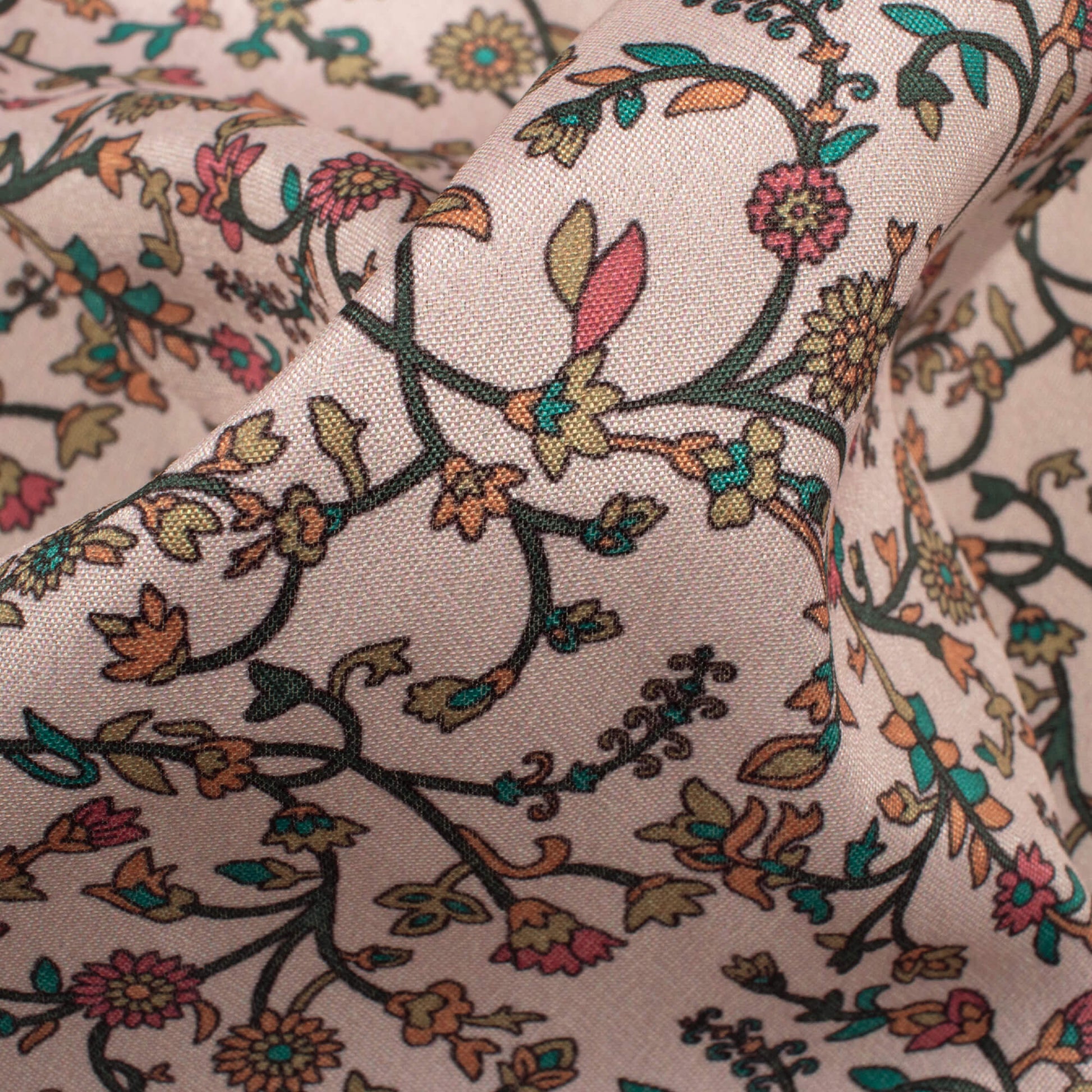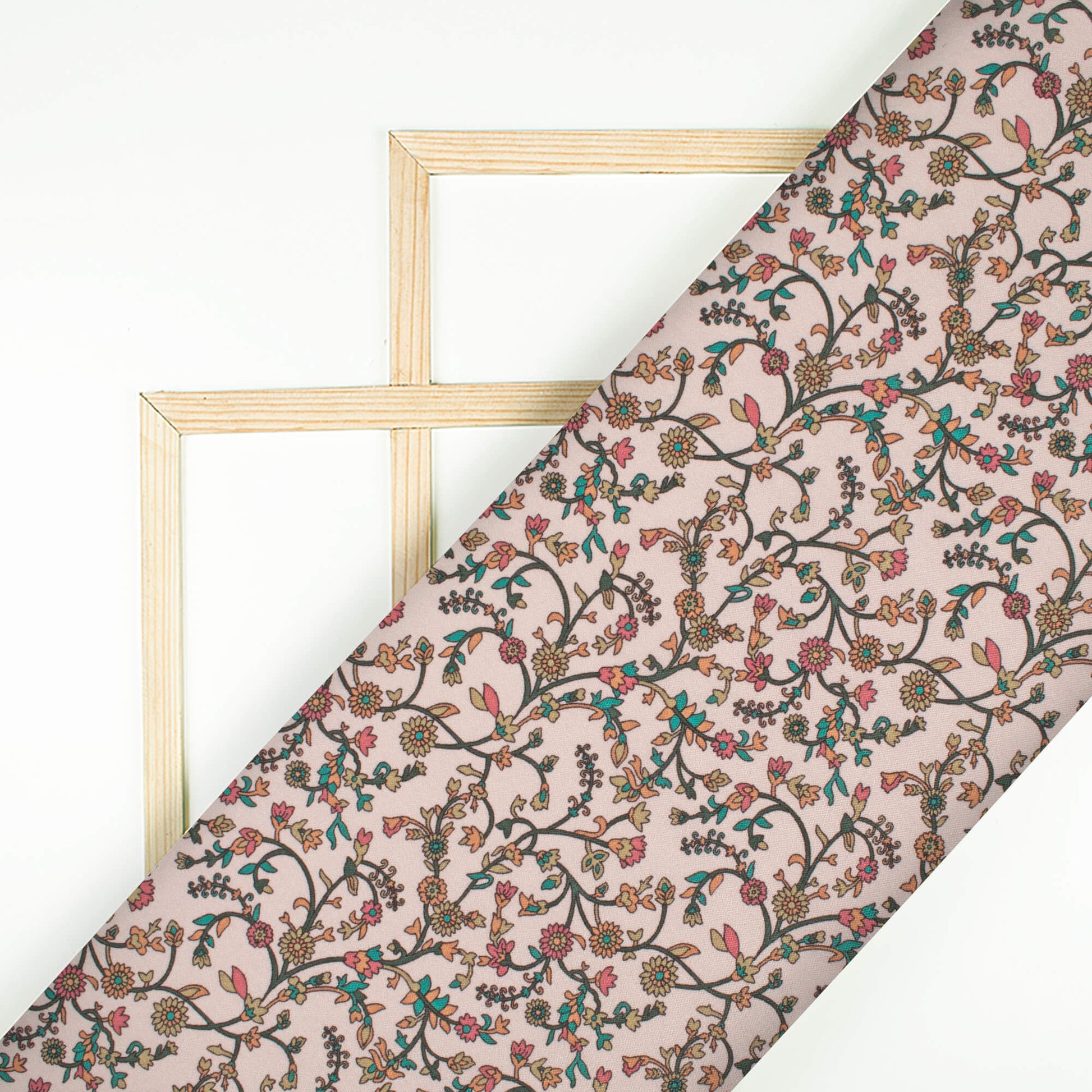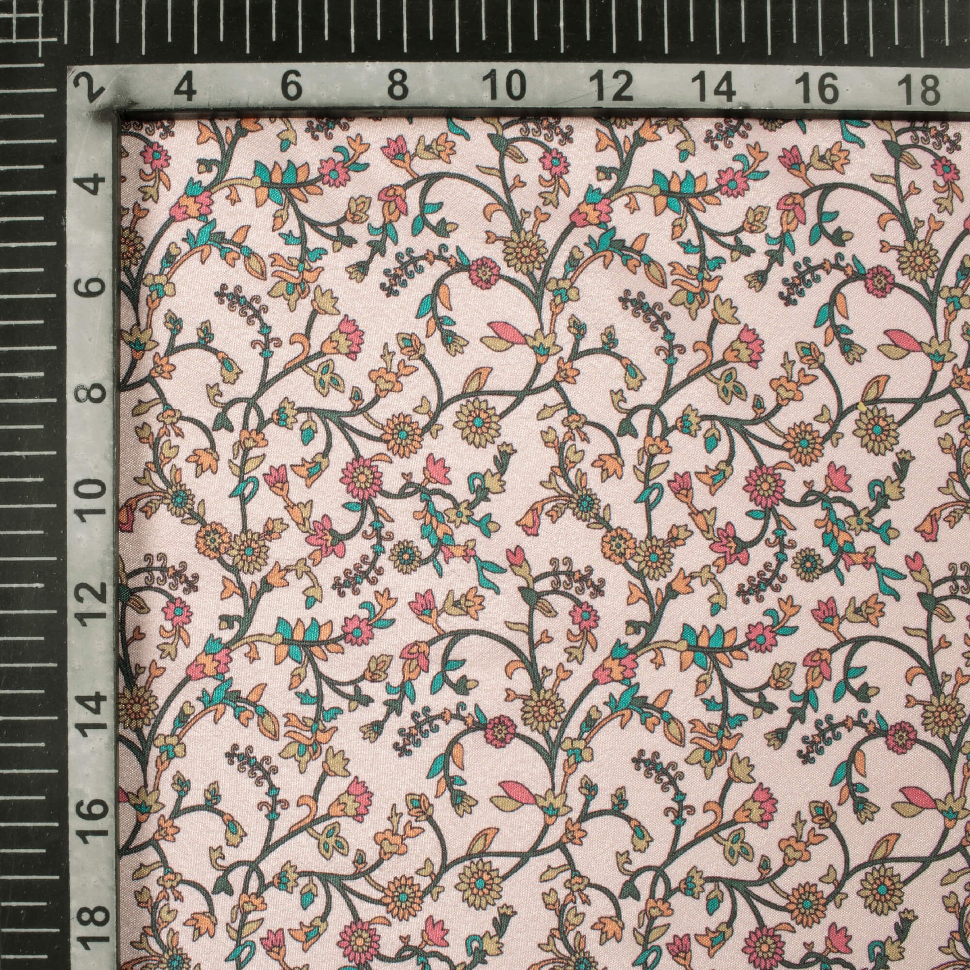 Baby Pink And Green Floral Pattern Digital Print Crepe Silk Fabric