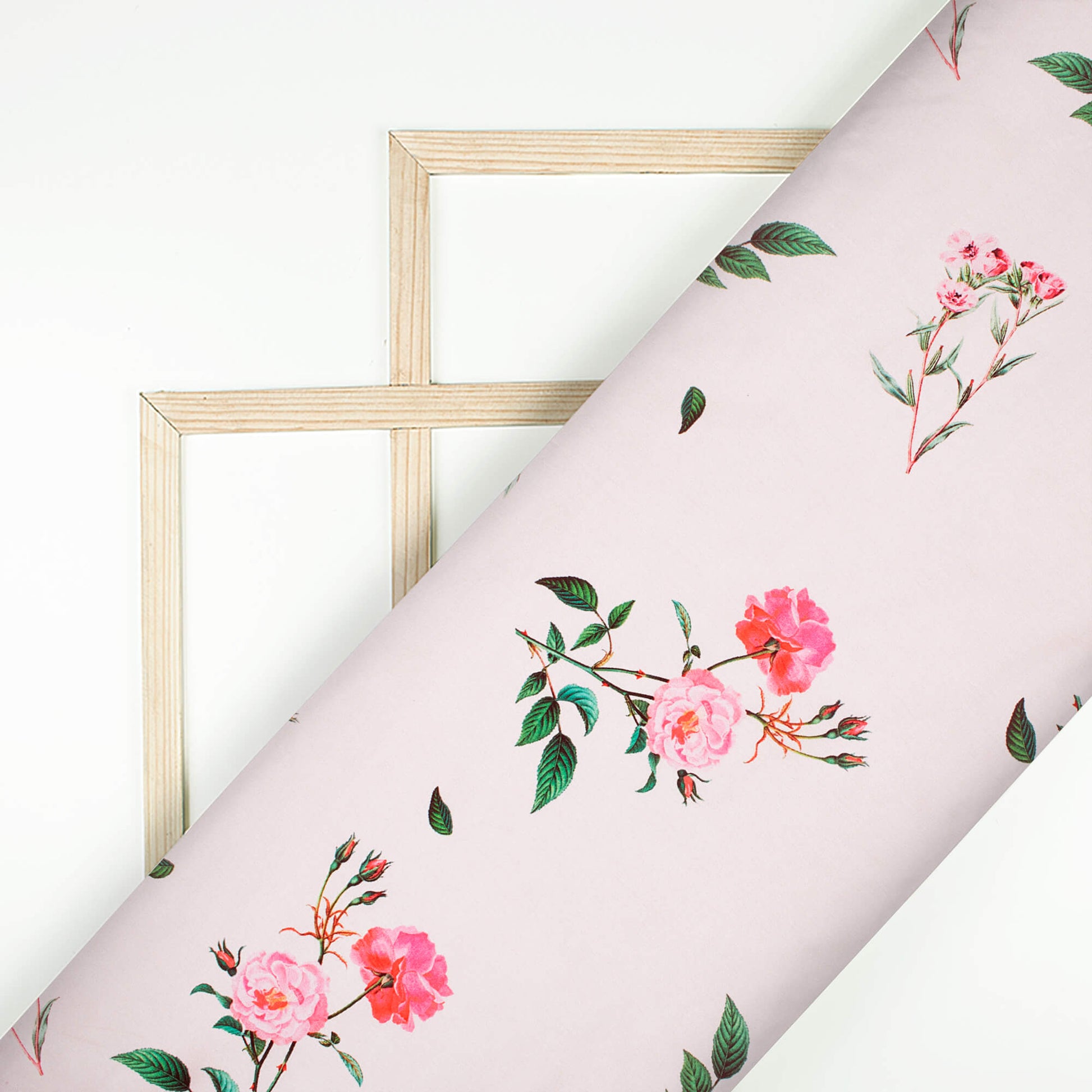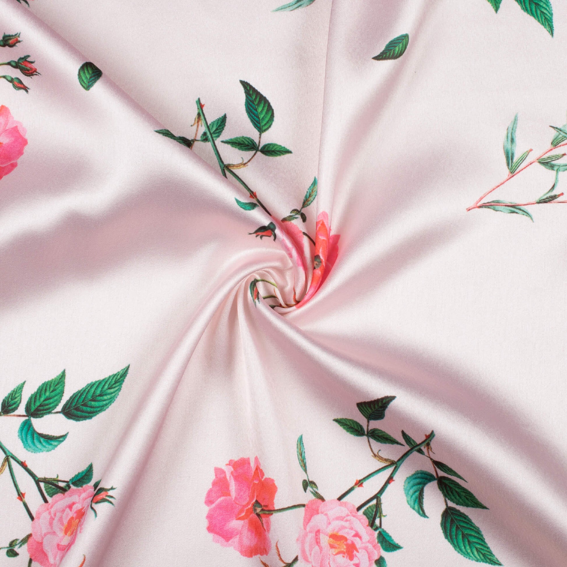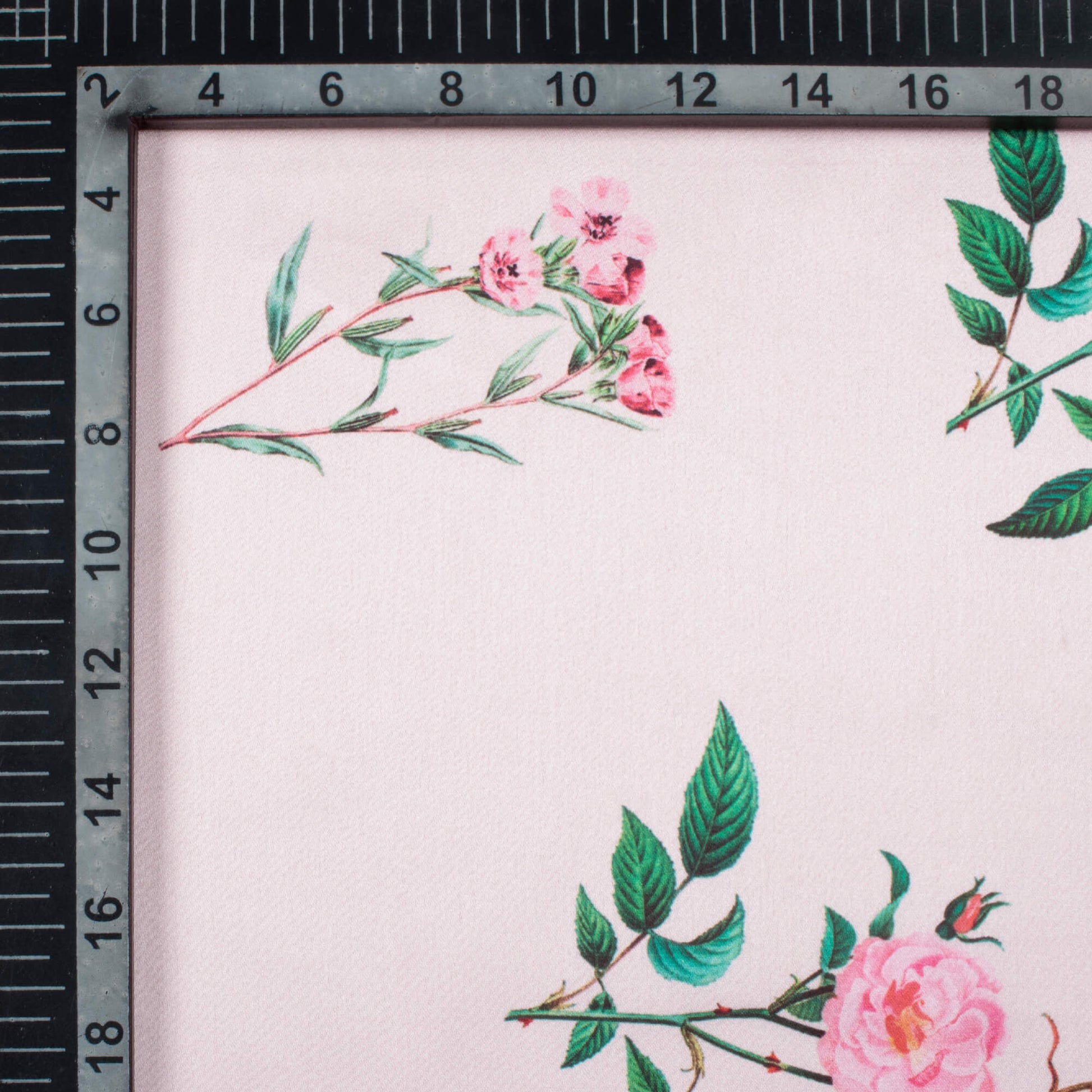 Baby Pink And Green Floral Pattern Digital Print Japan Satin Fabric