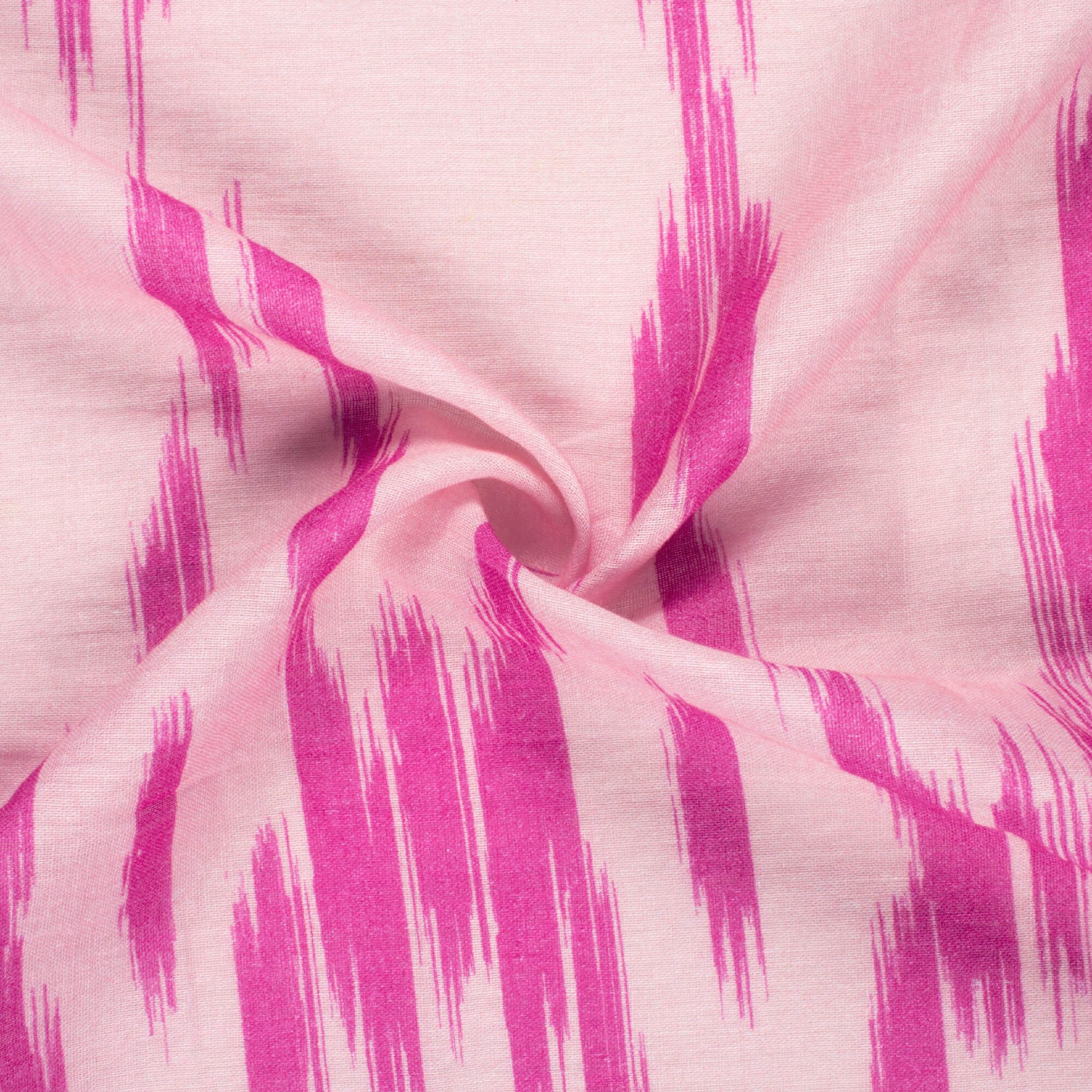 Baby Pink And Mulberry Purple Ikkat Pattern Digital Print Pure Cotton Mulmul Fabric