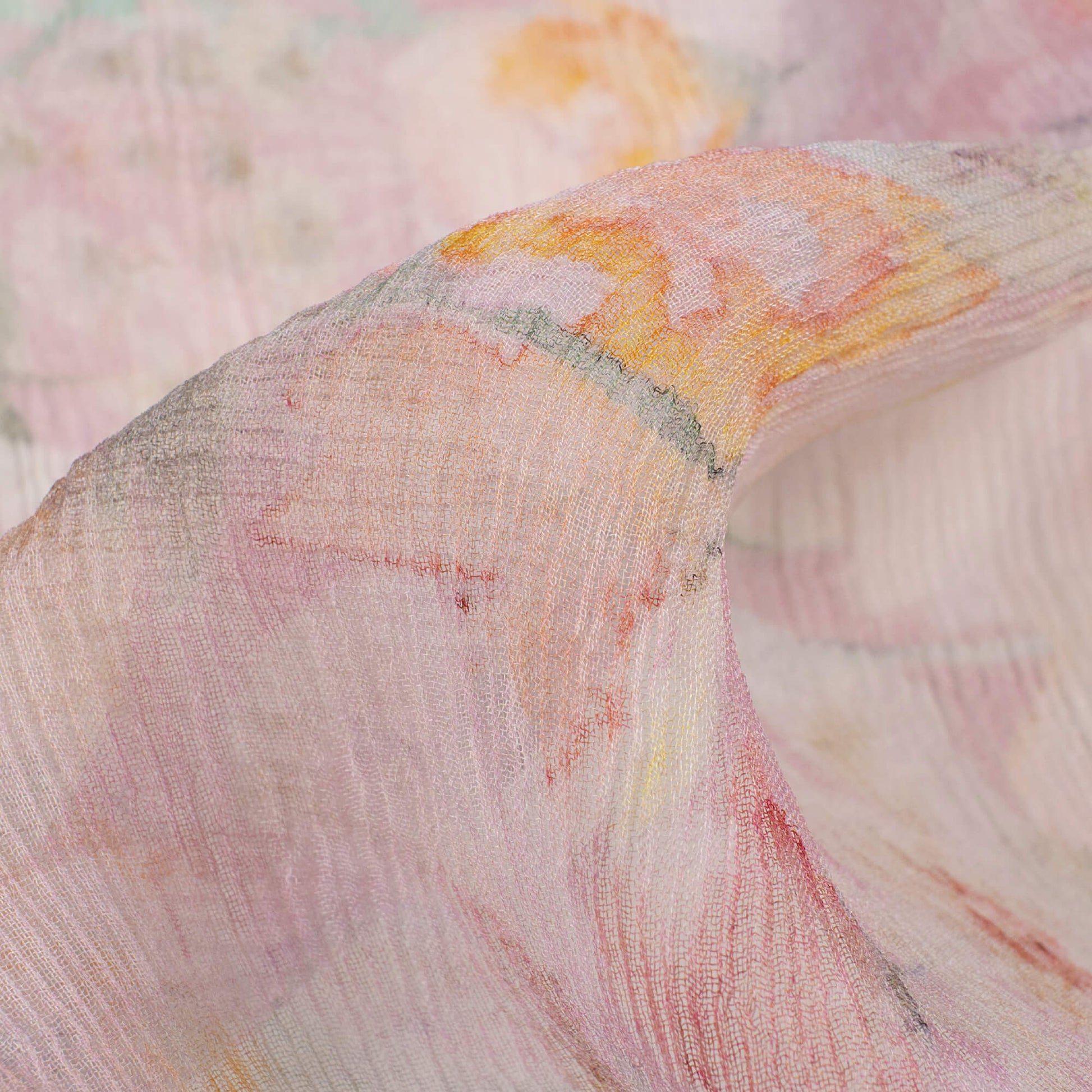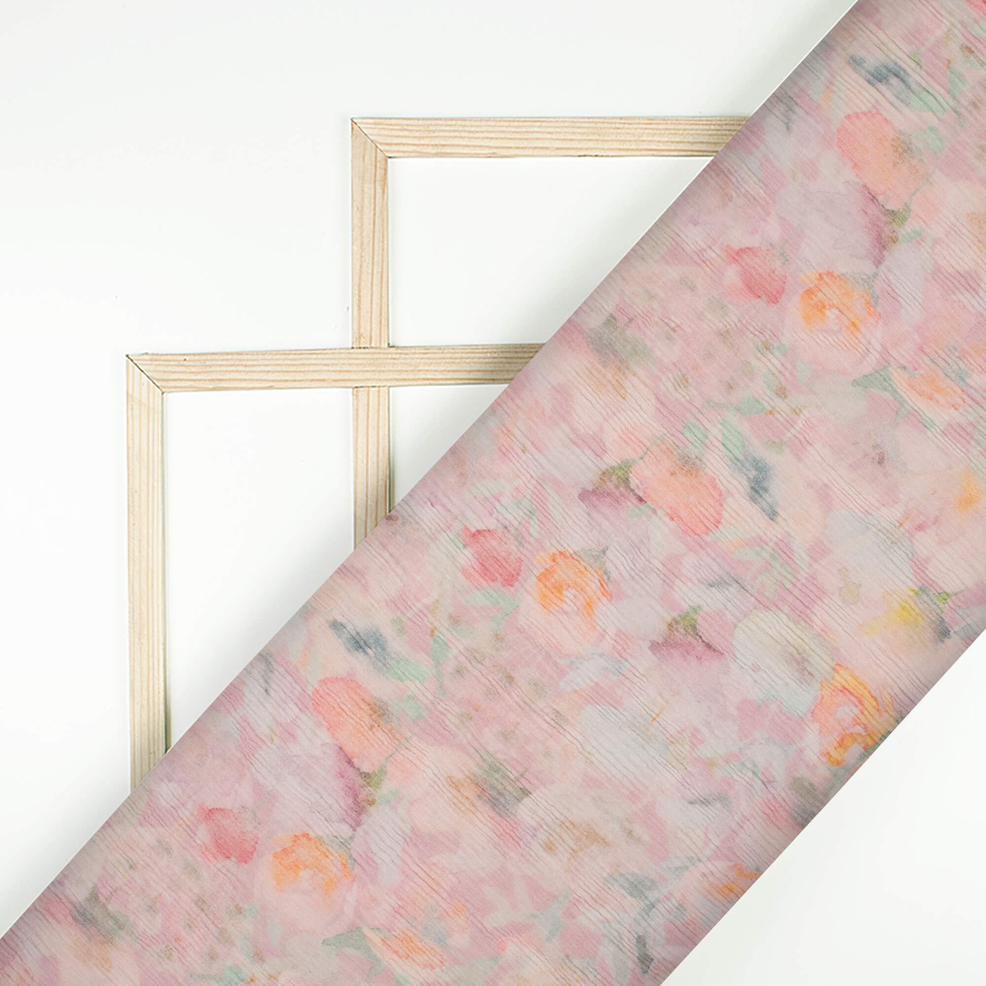 Baby Pink And Off White Floral Pattern Digital Print Bemberg Chiffon Fabric