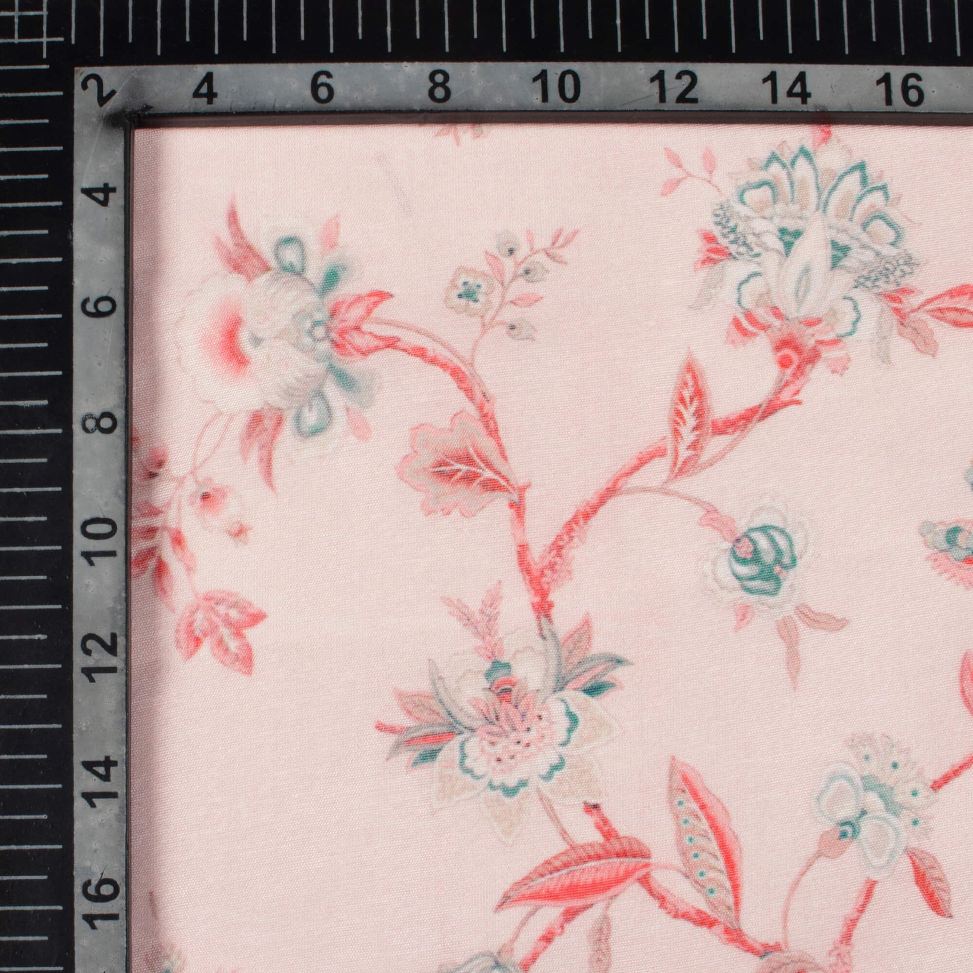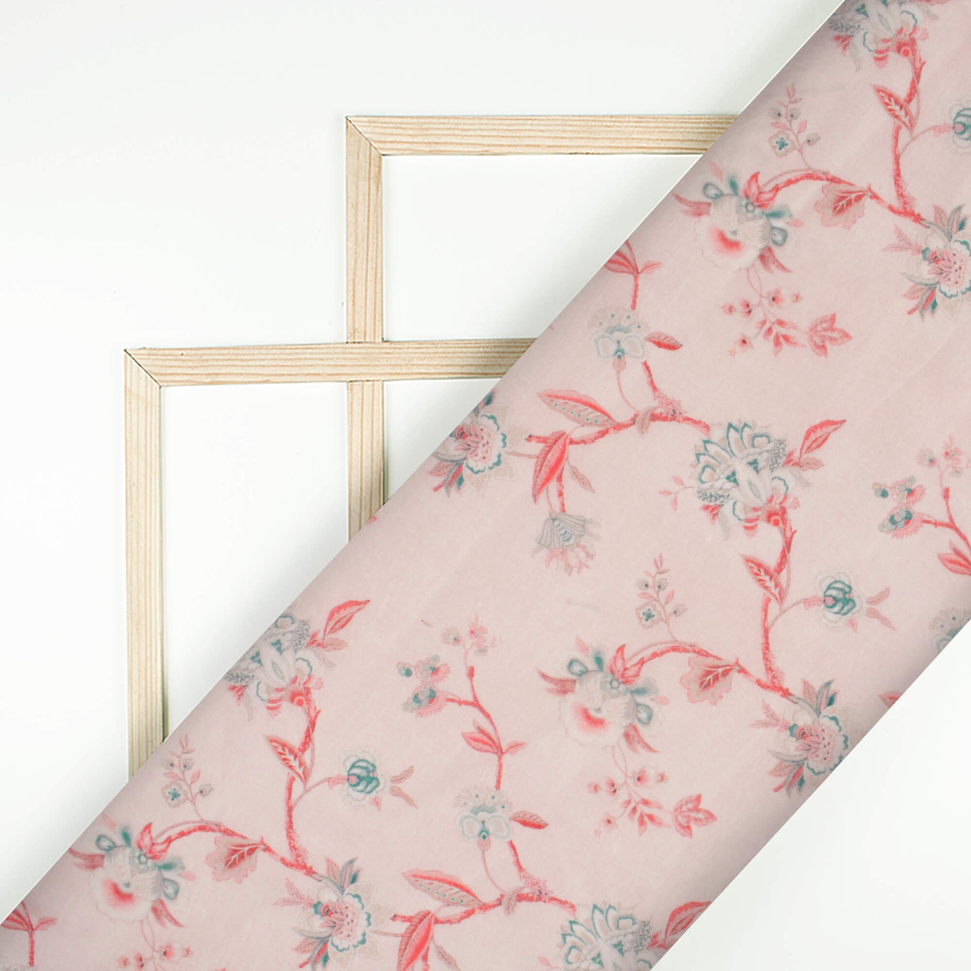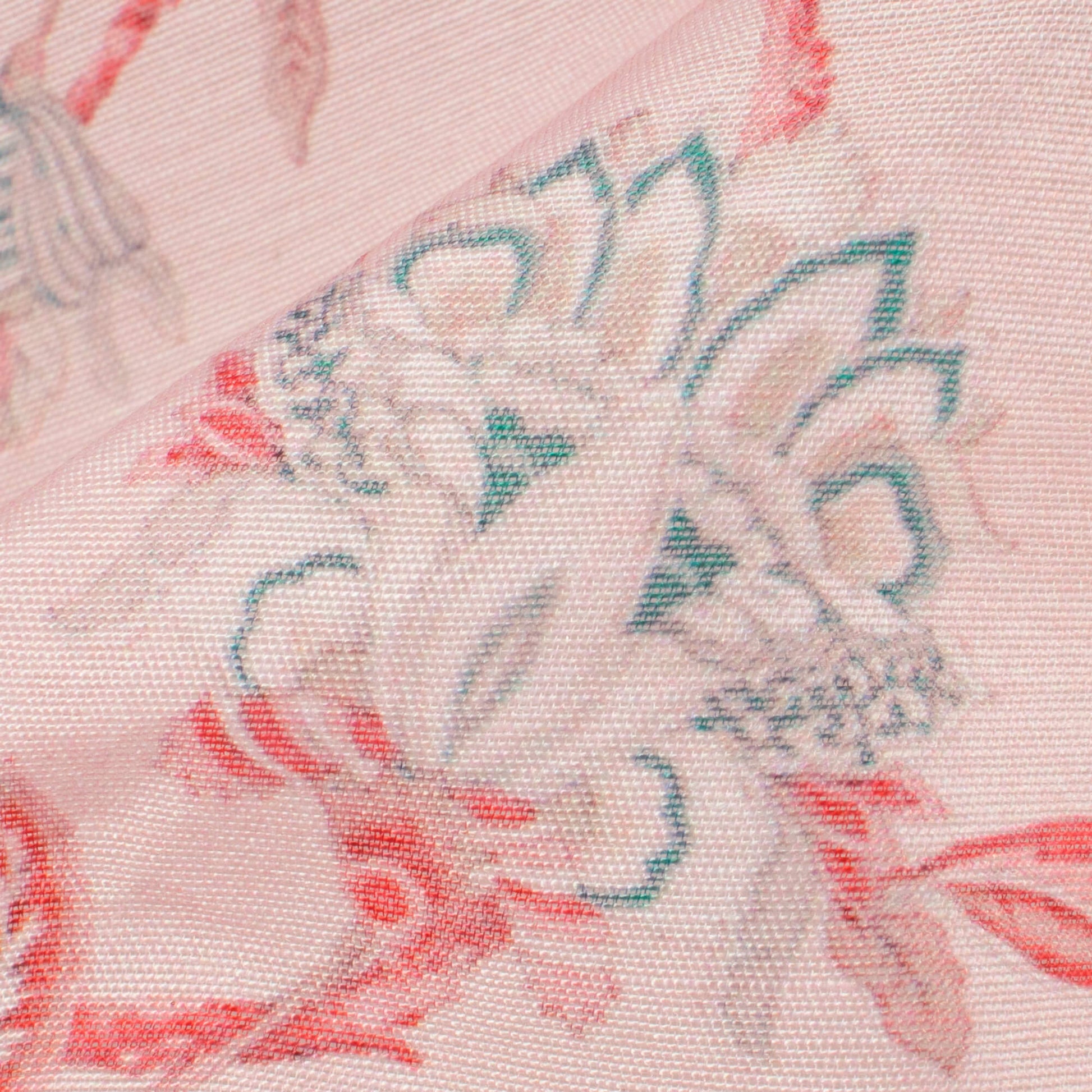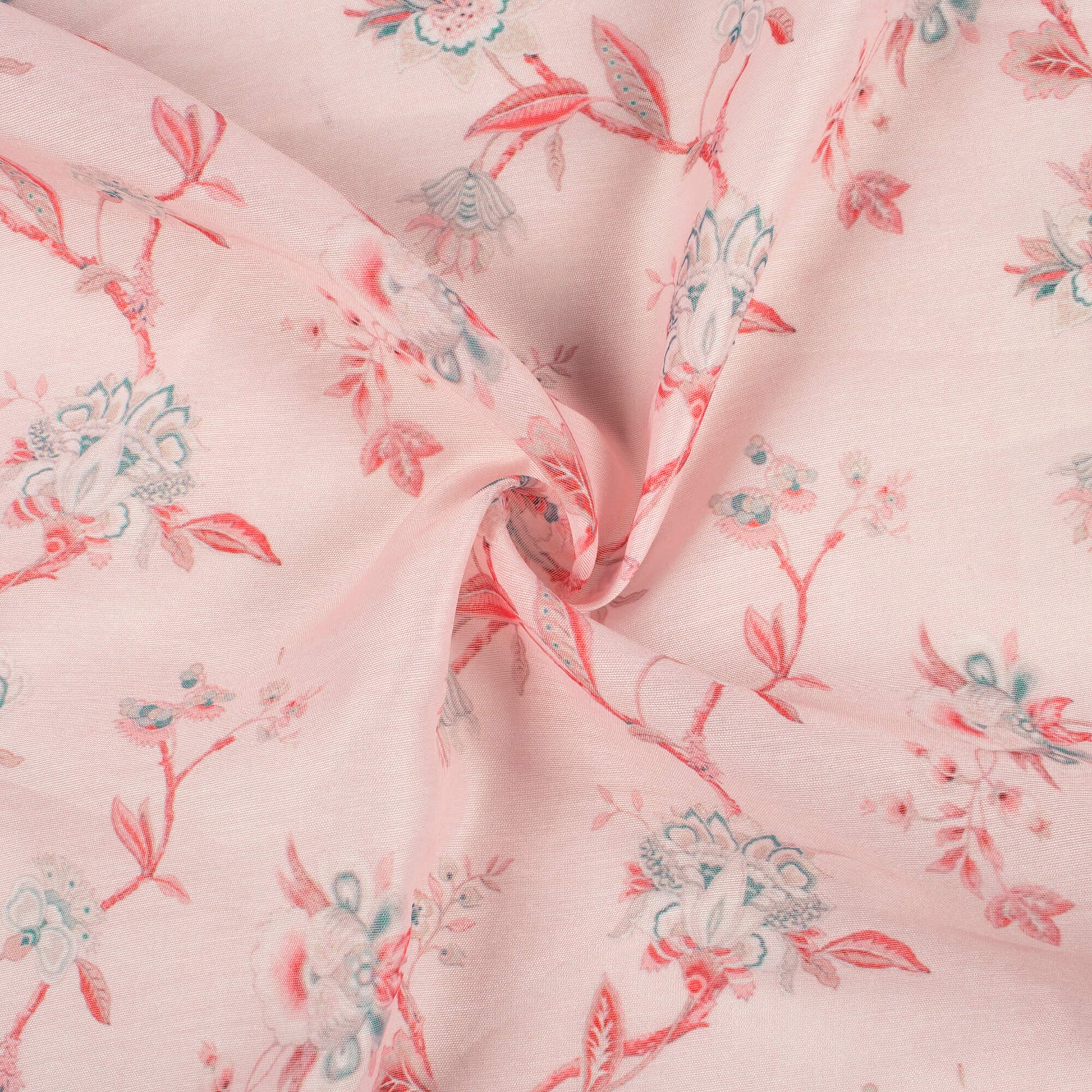 Baby Pink And Pine Green Floral Pattern Digital Print Chanderi Fabric