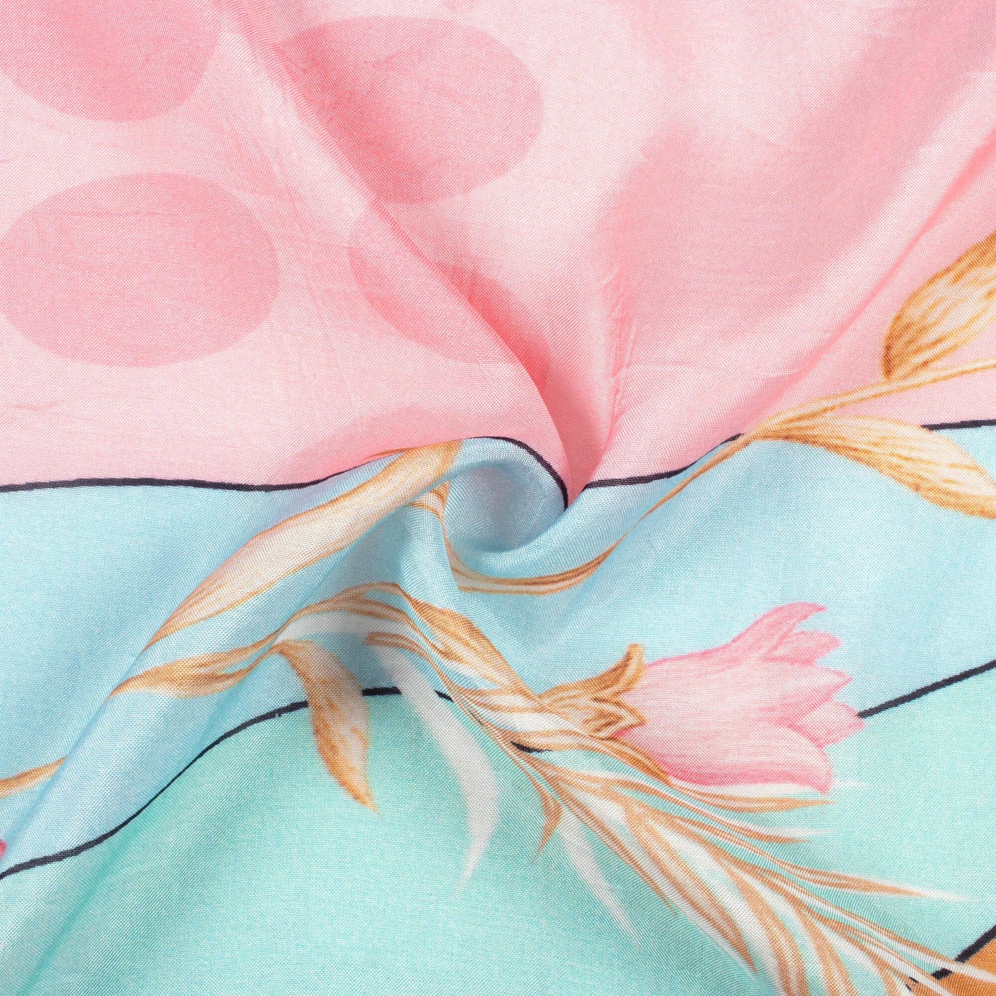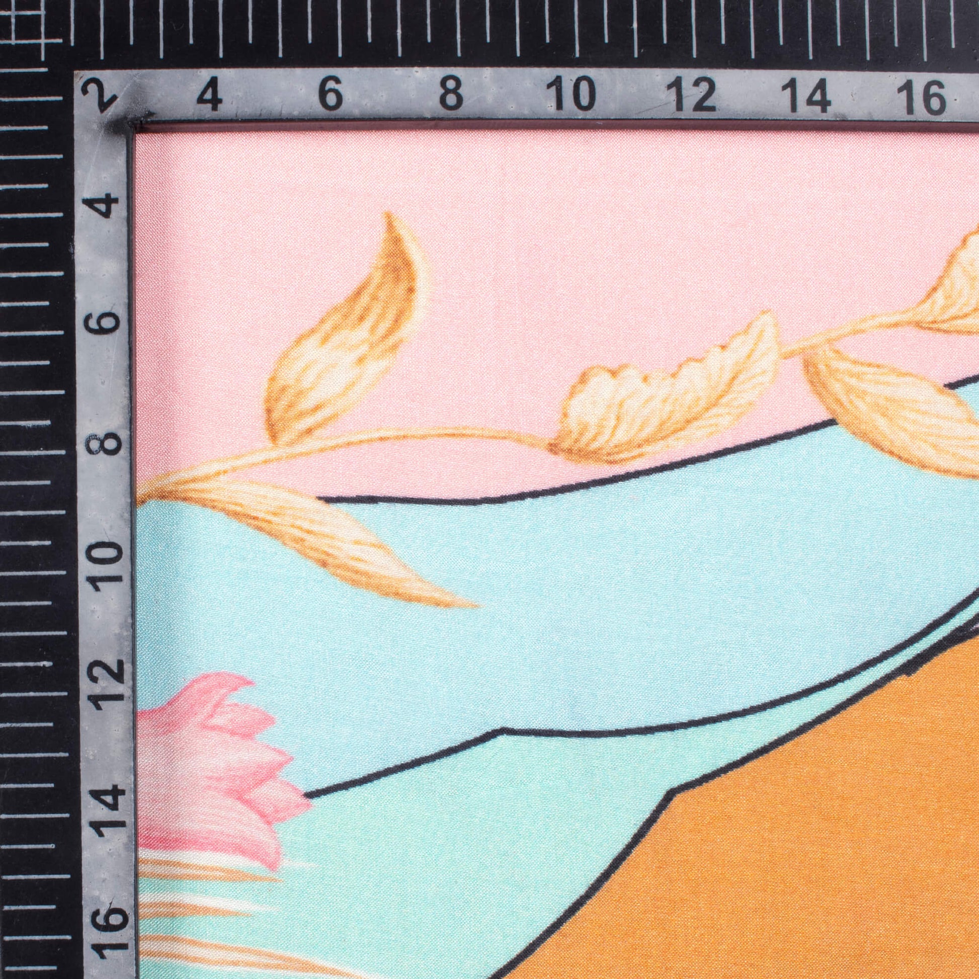 Baby Pink And Sky Blue Leaf Pattern Digital Print Viscose Muslin Fabric