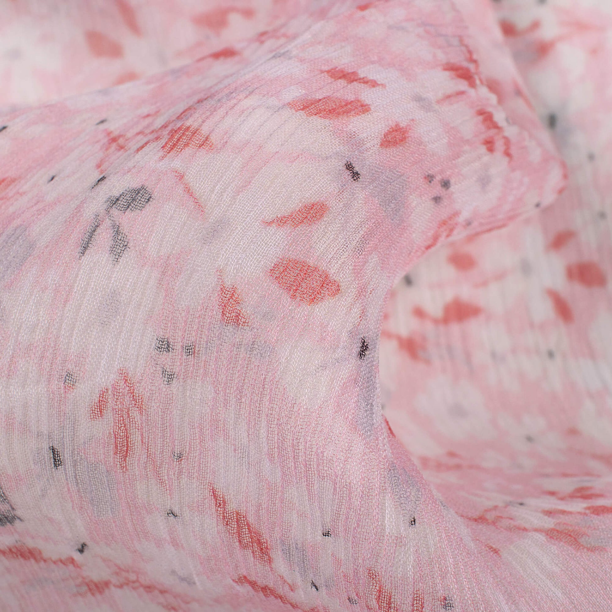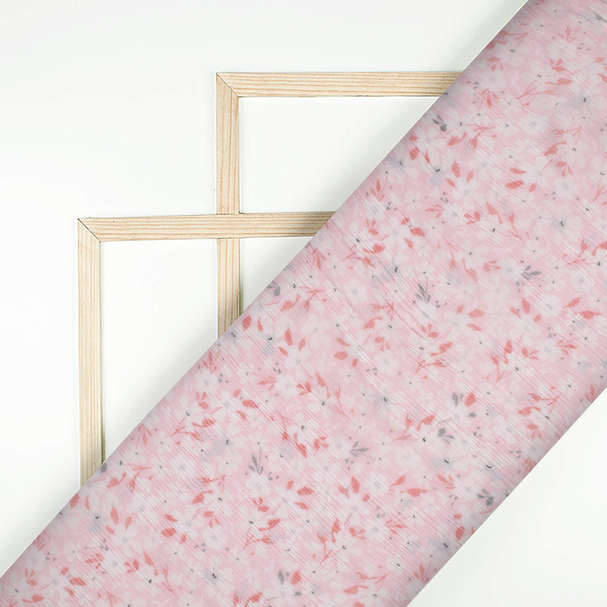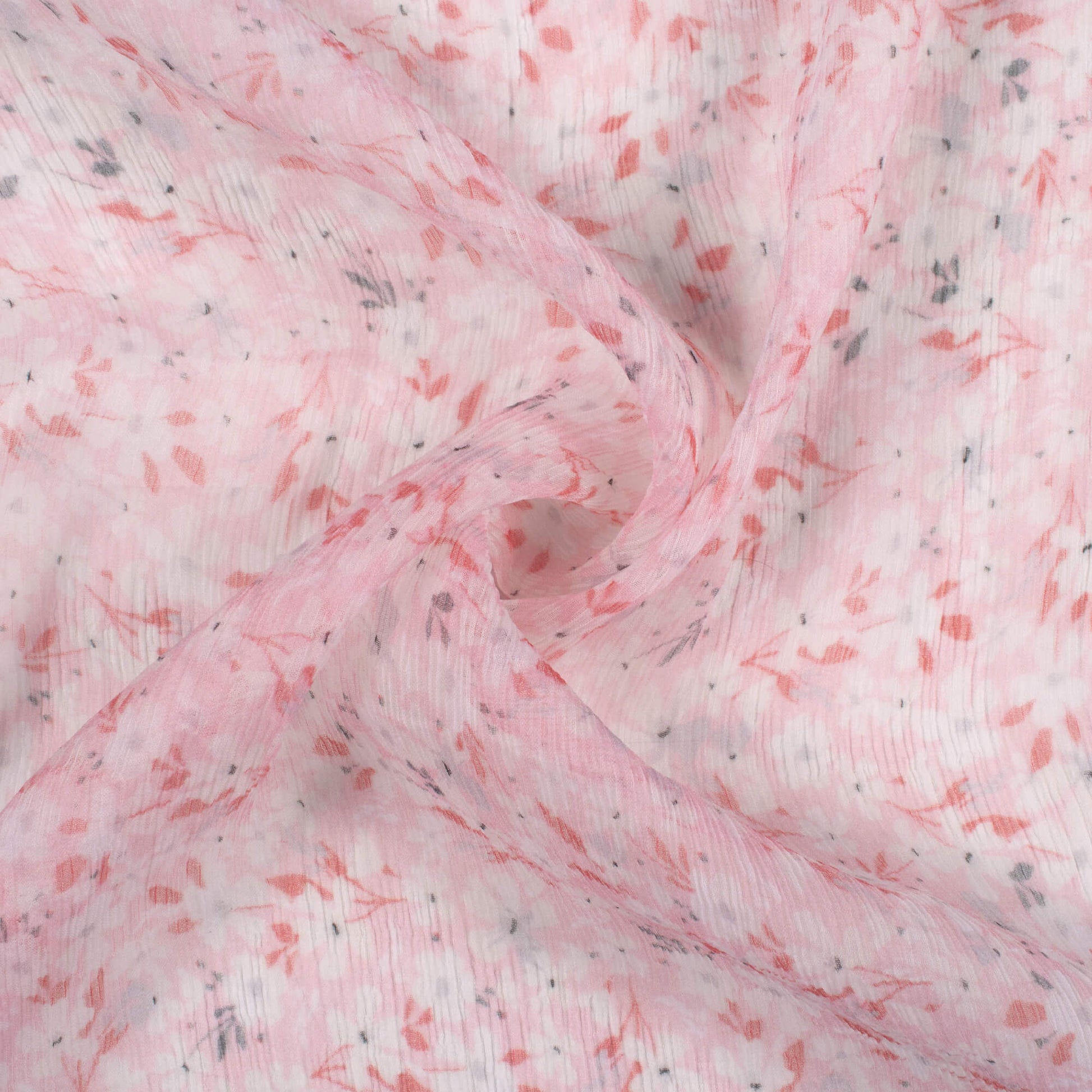 Baby Pink And White Floral Pattern Digital Print Bemberg Chiffon Fabric