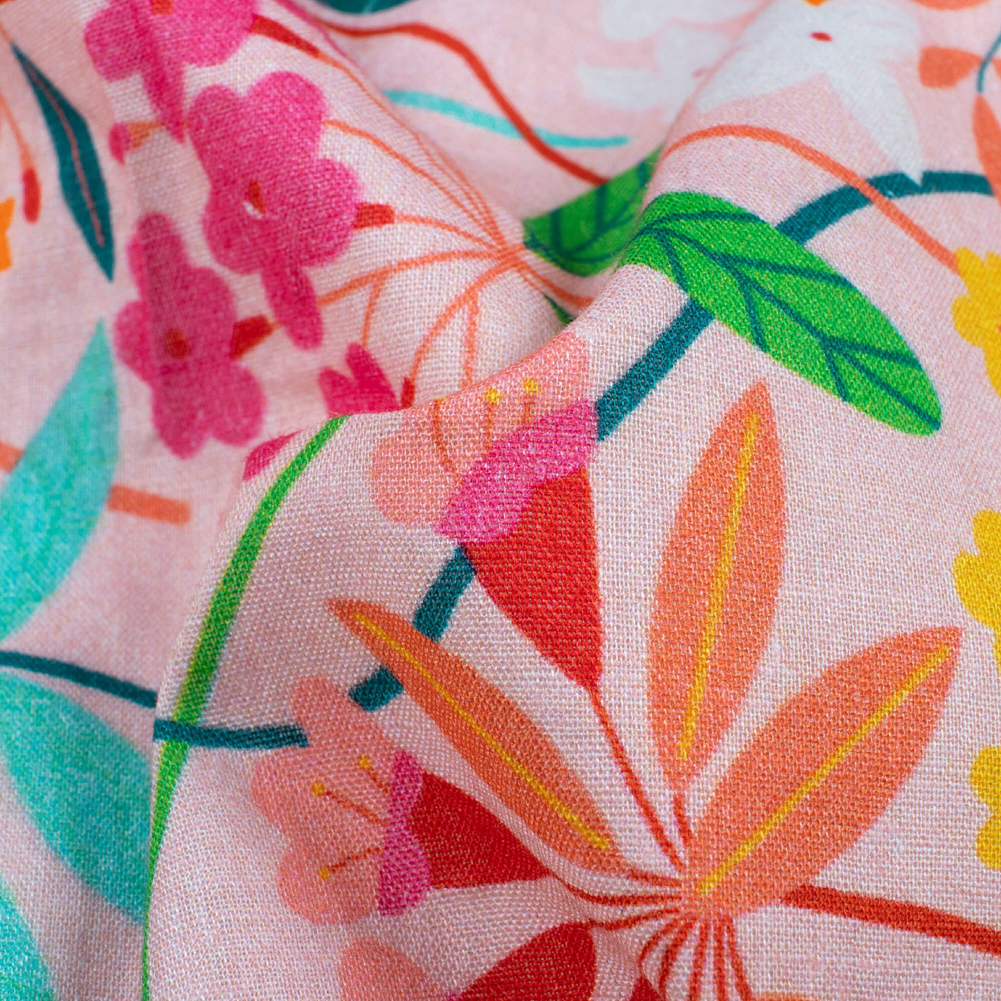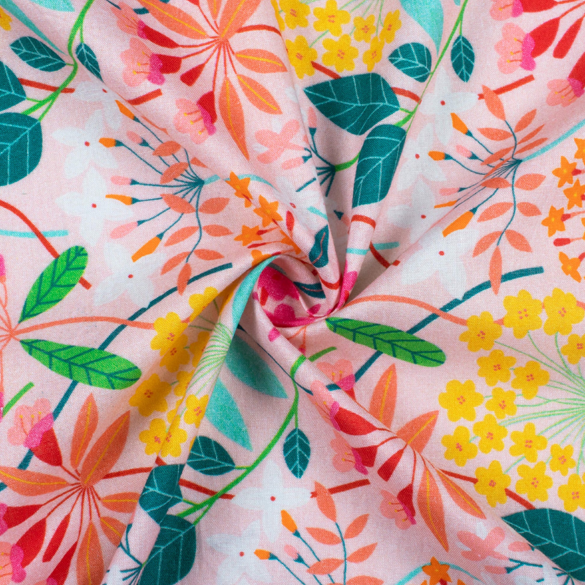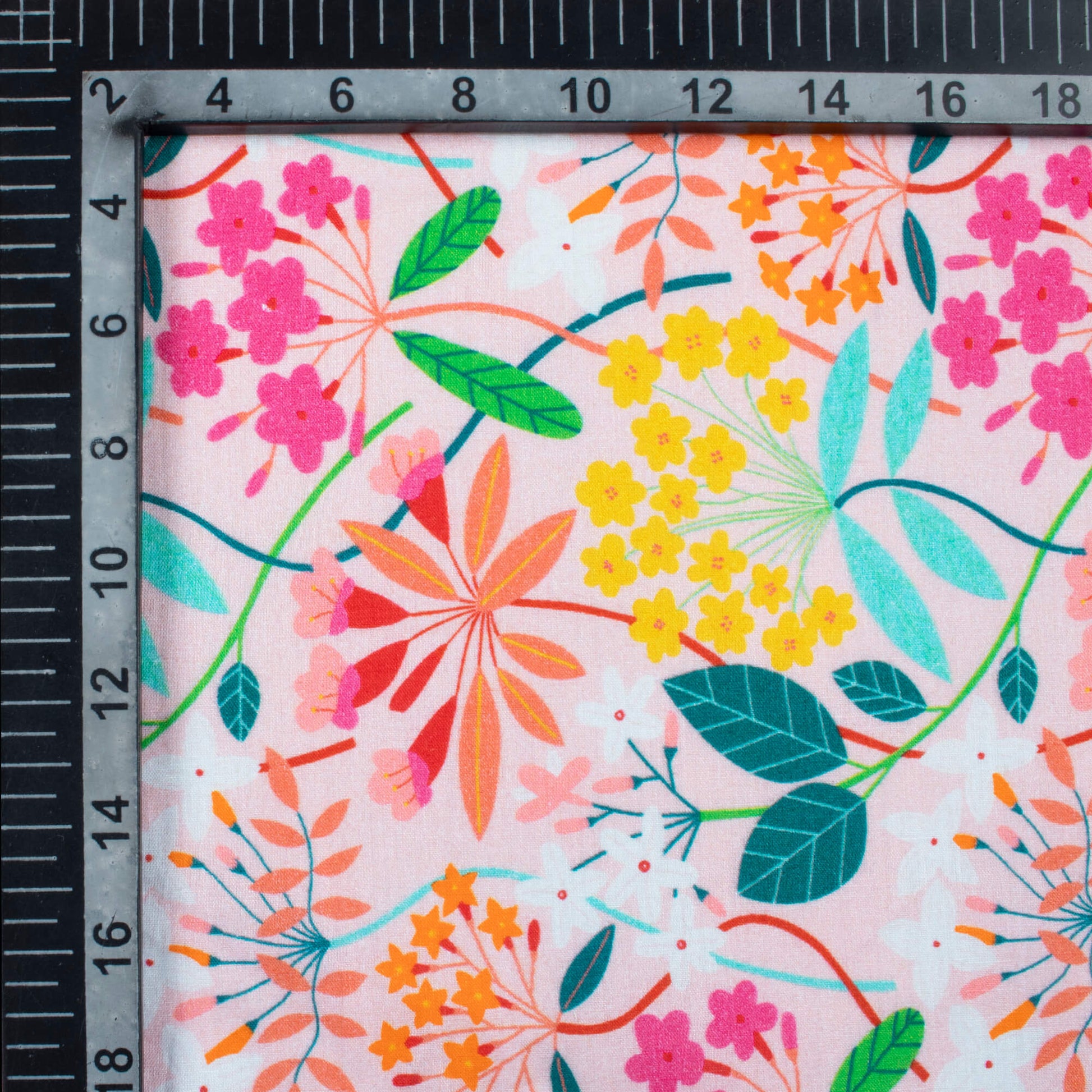 Baby Pink And Yellow Floral Pattern Digital Print Cotton Cambric Fabric