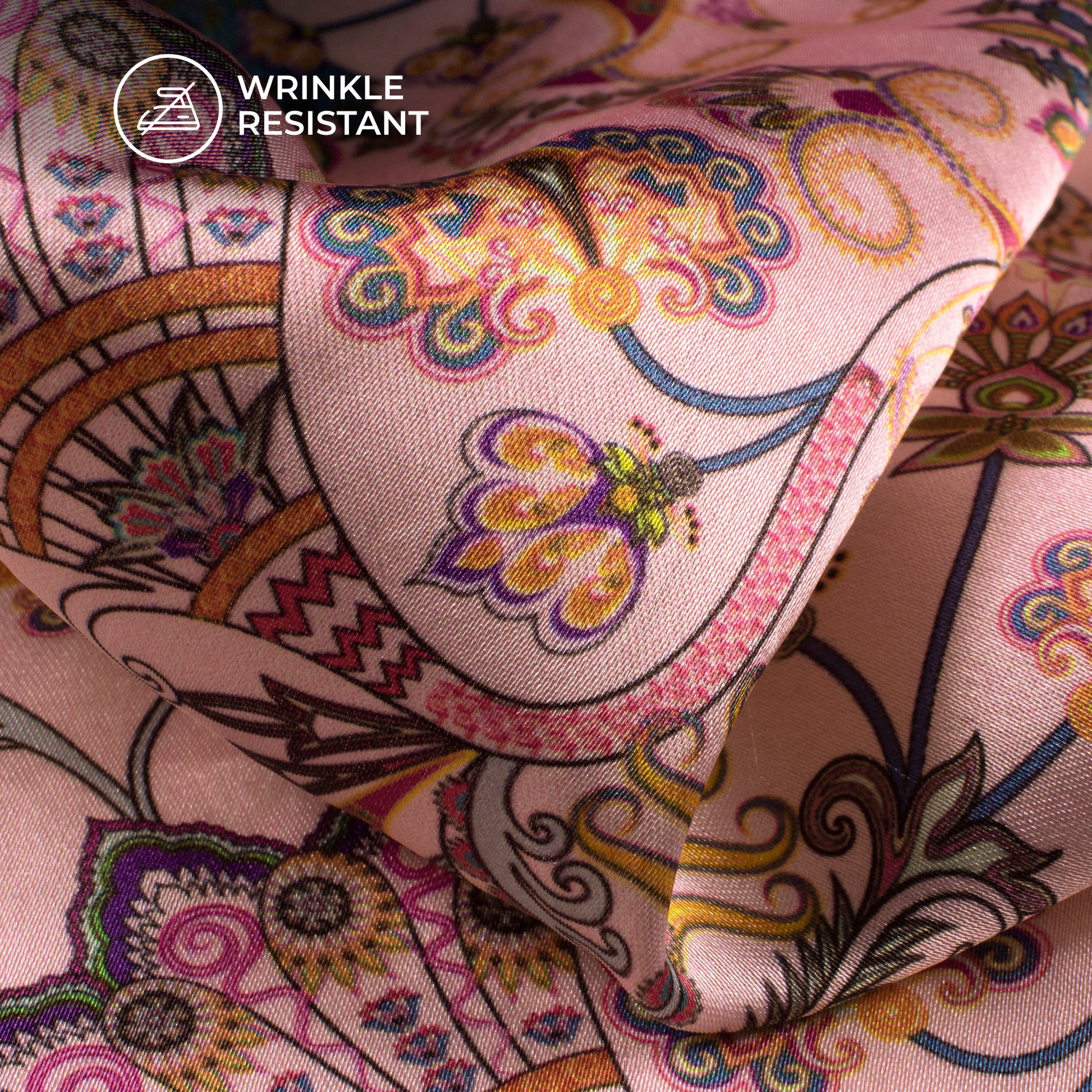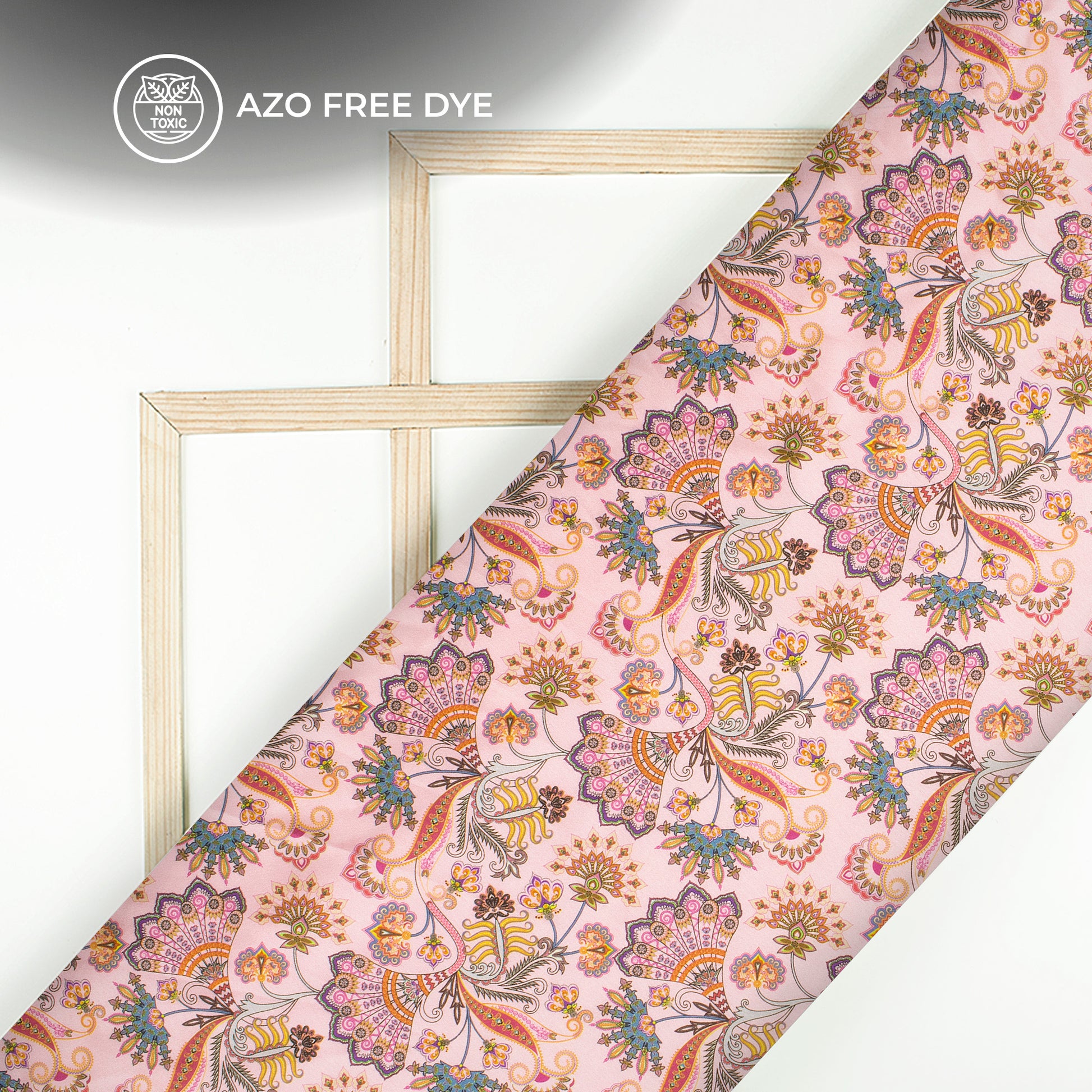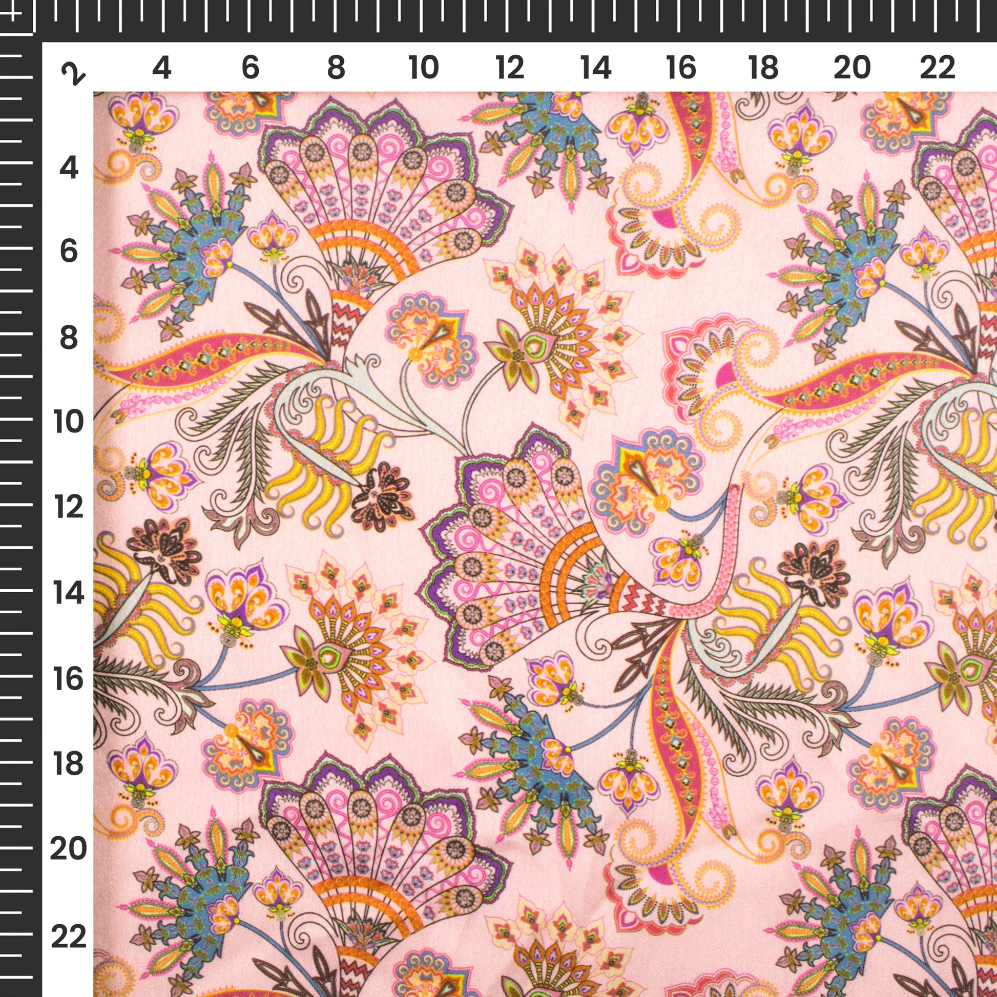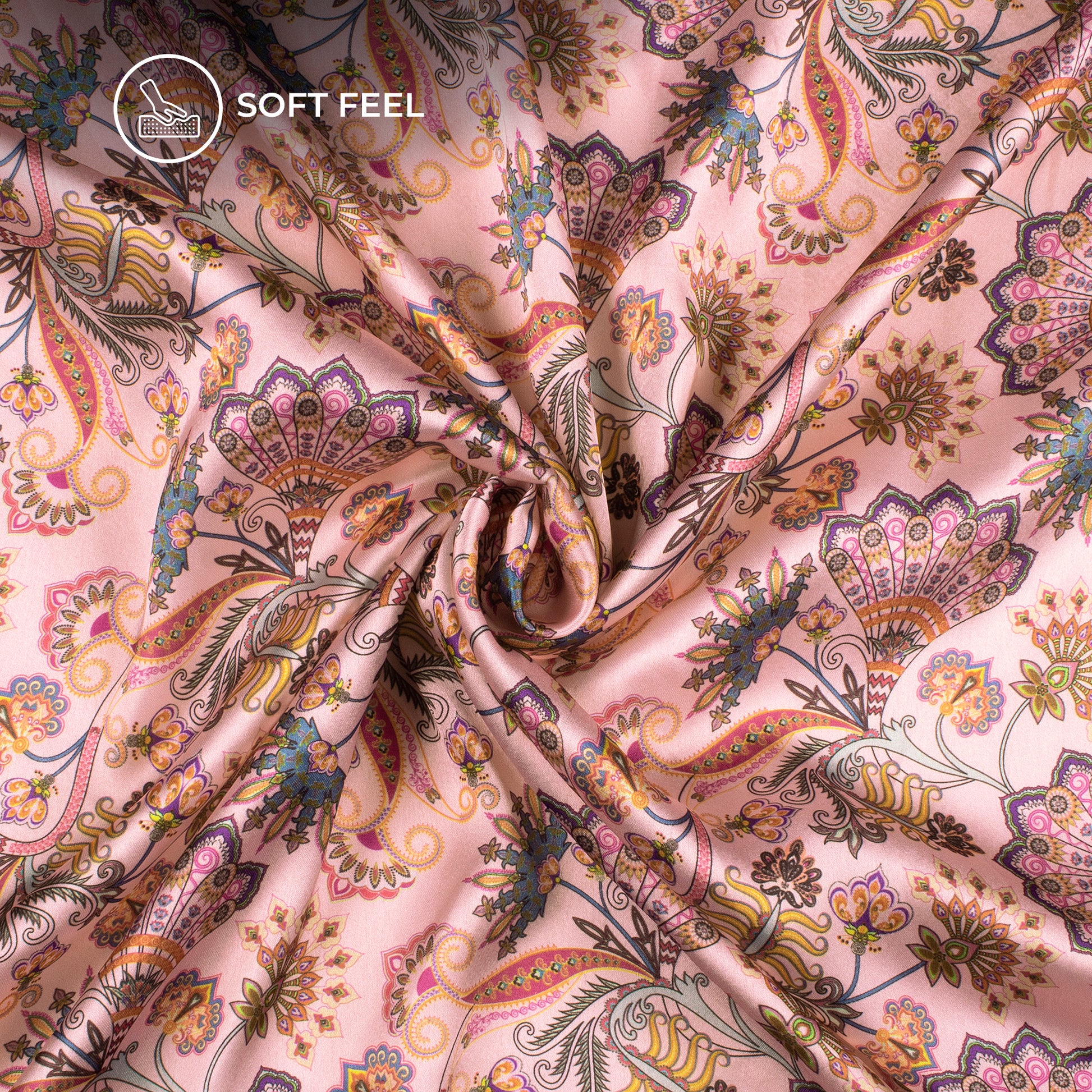 Baby Pink Floral Digital Print Japan Satin Fabric