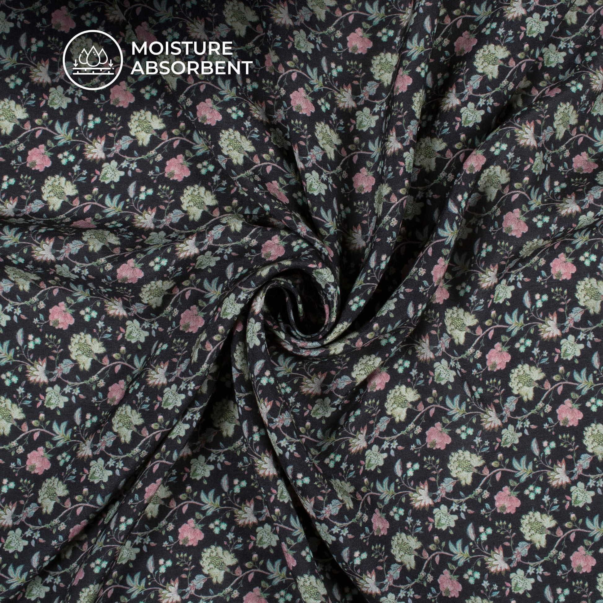 Baby Pink Floral Digital Print Viscose Muslin Fabric
